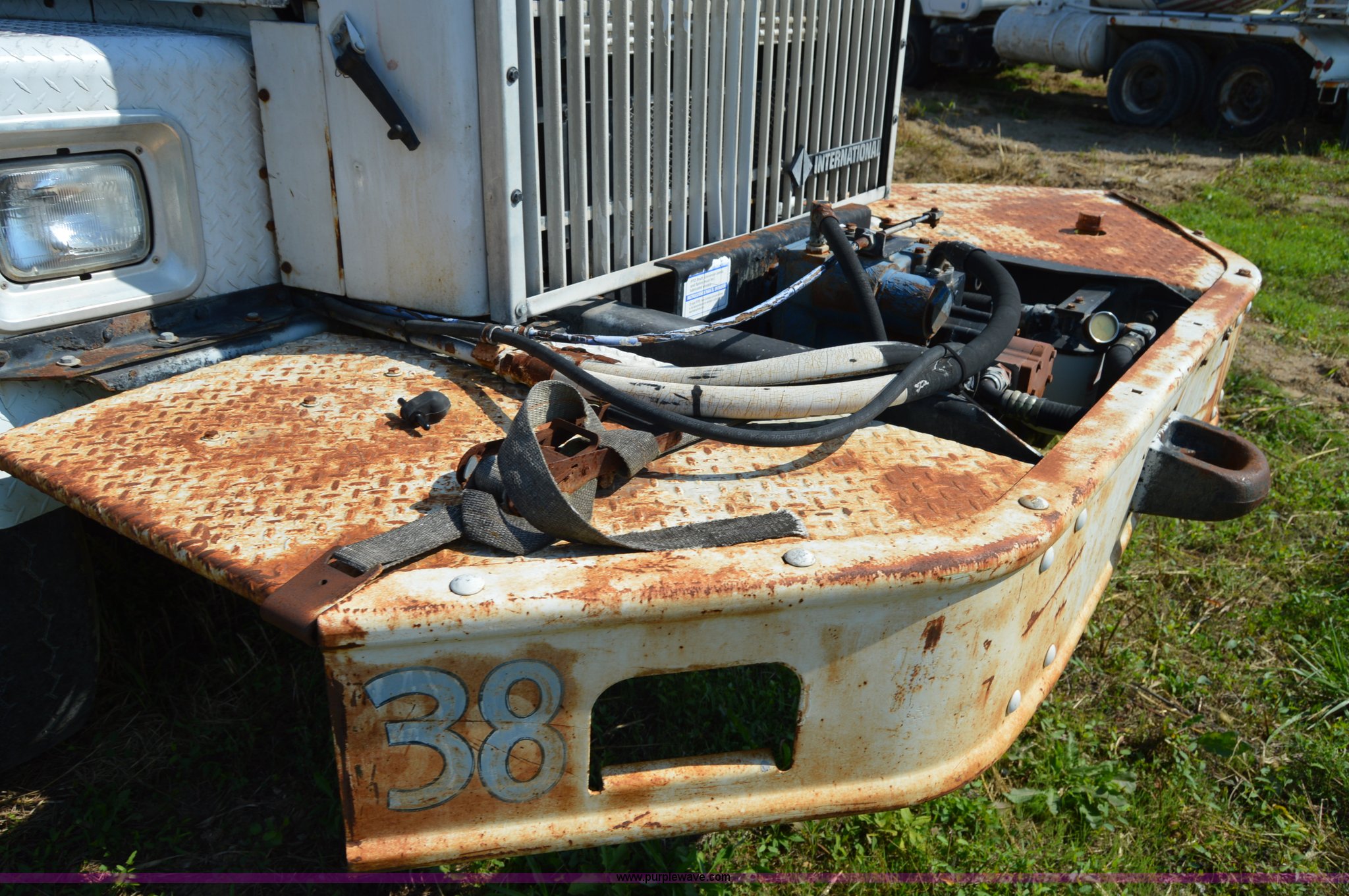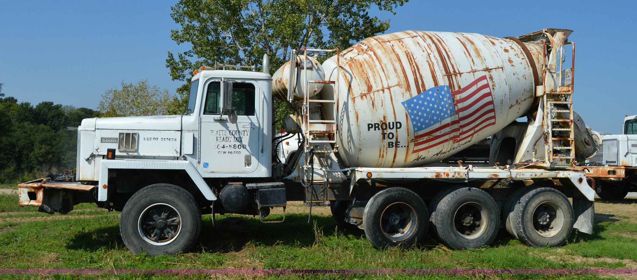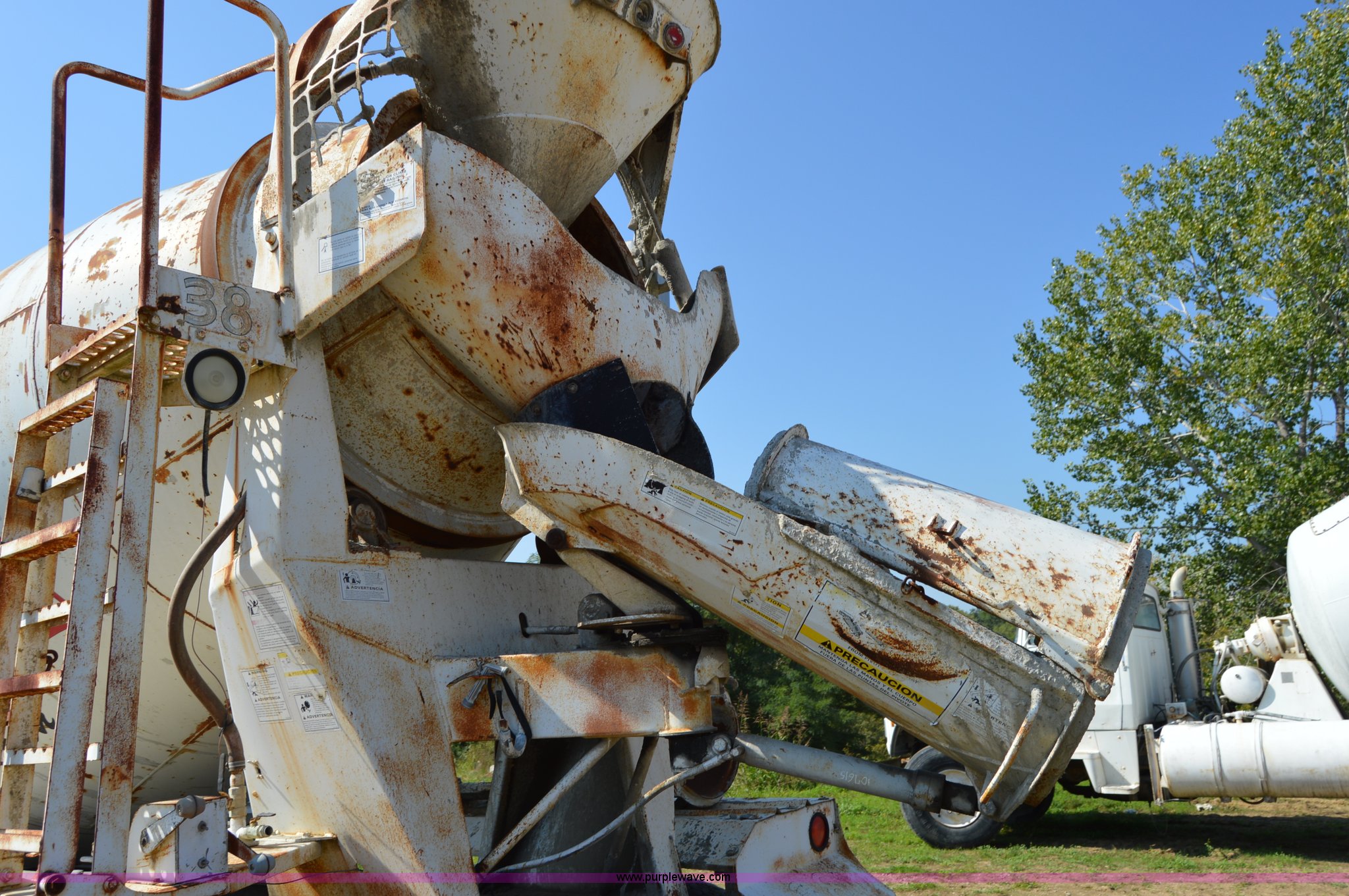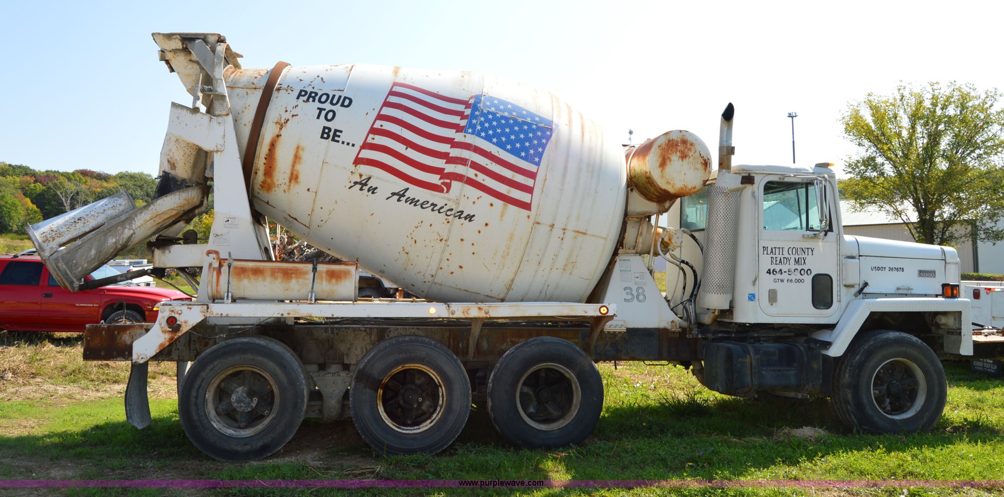 Purple Wave is selling a used Ready Mix or Pump Truck in Missouri. This item is a 1994 International 1840 mixer truck with the following: 203,867 miles on odometer, Cummins L10 10.0L L6 diesel engine, Eaton Fuller seven speed manual transmission, Heat, Air suspension seat, 10 cubic yard capacity mixer, Front mounted PTO, Single fuel tank, Air brakes, 425/65R22.5 front tires, 11R22.5 rear tires, Interior/exterior cosmetic damage, Battery dead, Unit# 38