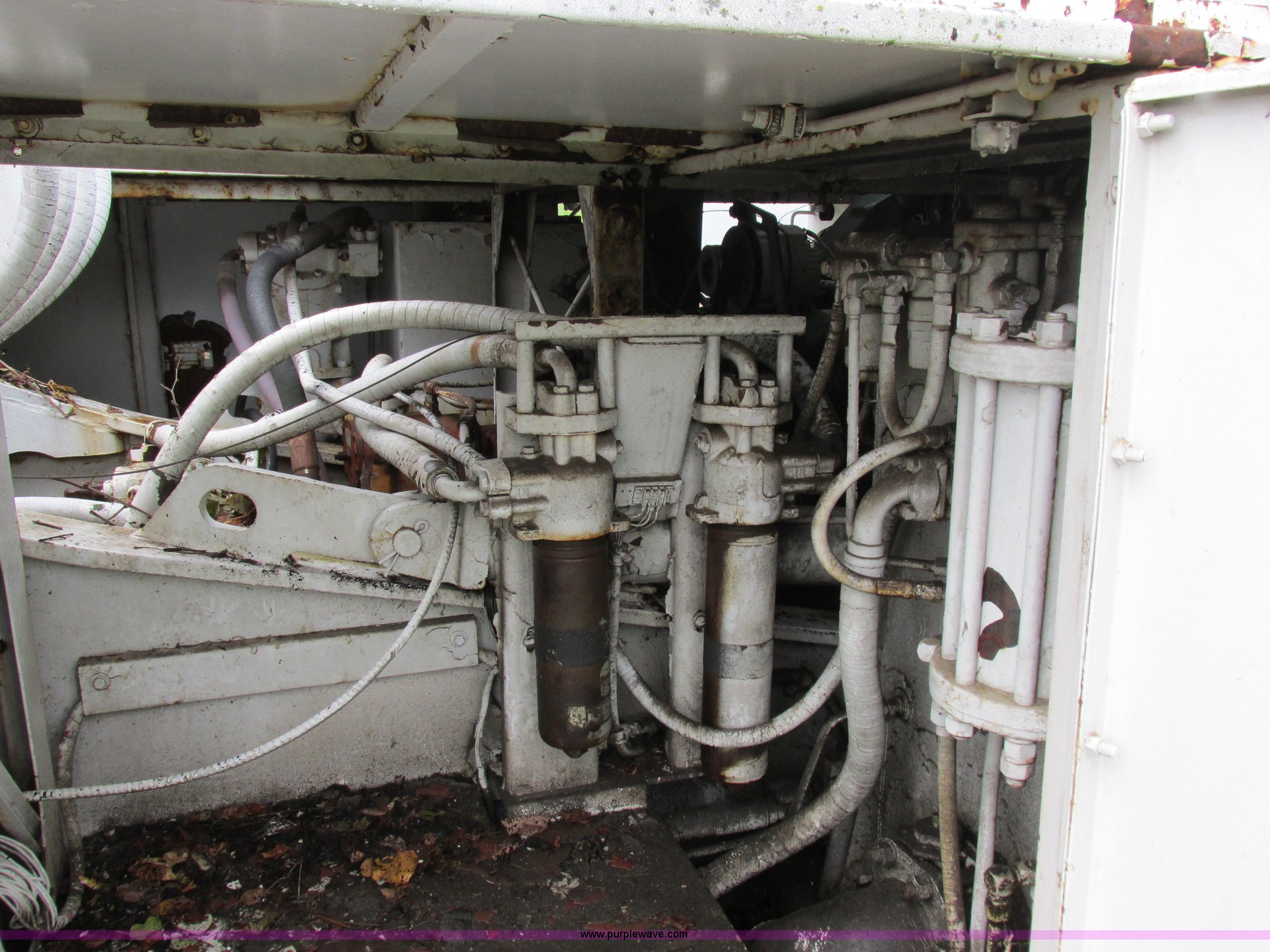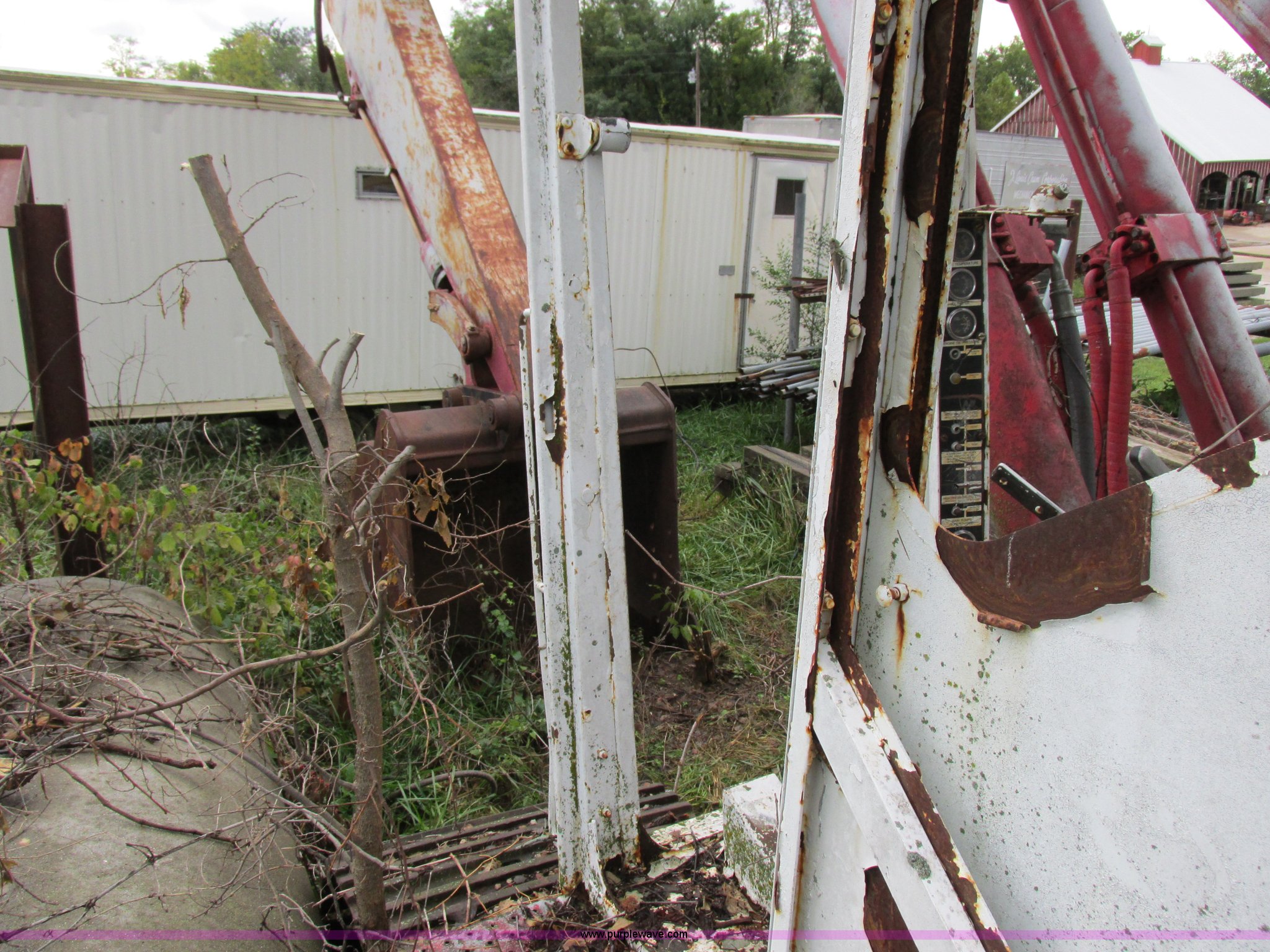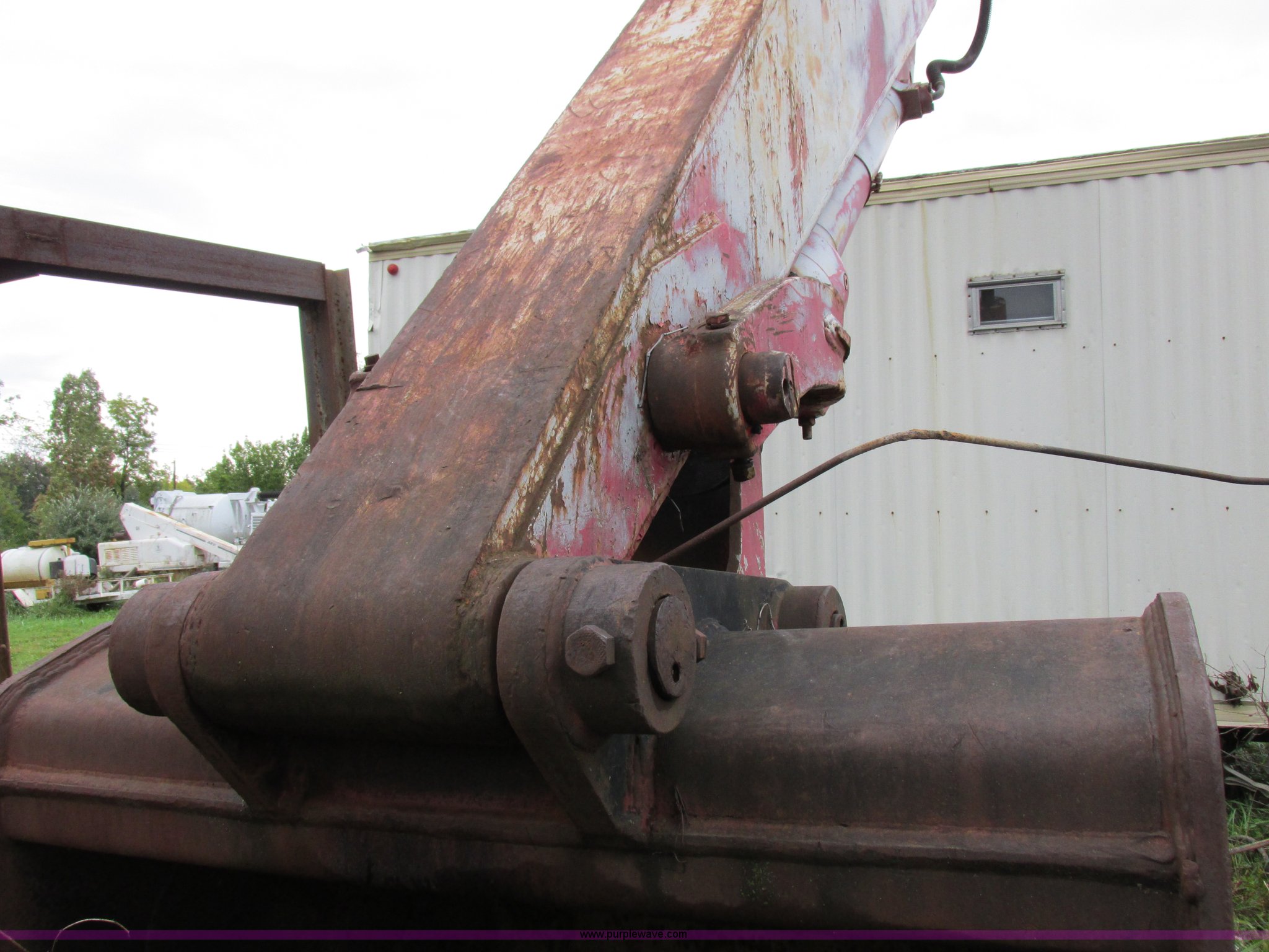 Link Belt LS-5800 excavator. Detroit Diesel eight cylinder diesel engine Non-operational engine, Hydrostatic transmission, ROPS, Spring suspension seat, Joystick controls, Standard boom, MPM 54"W bucket 2.75 cubic yard capacity, 36"W steel track pads, 11'11"W, Approximately 99,000 lbs operating weight, Interior/exterior cosmetic damage, Unknown operating condition, Serial 1280. J. Louis Crum Corporation. 1010 Highway UU North. Columbia, MO 65202