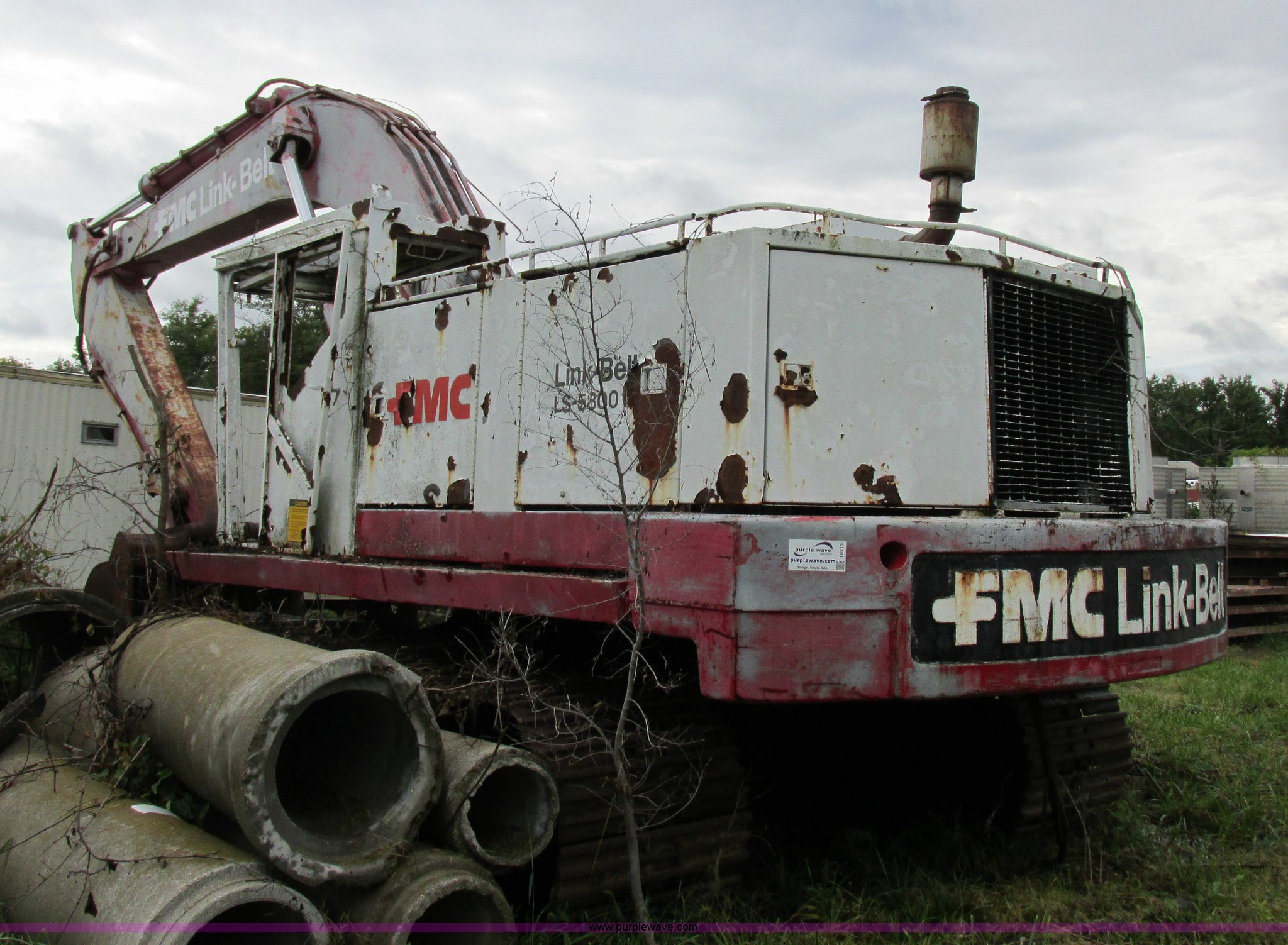 Purple Wave is selling a used Hydraulic Excavator in Missouri. This item is a Link Belt LS-5800 excavator with the following: Detroit Diesel eight cylinder diesel engine, Non-operational engine, Hydrostatic transmission, ROPS, Spring suspension seat, Joystick controls, Standard boom, MPM 54"W bucket, 2.75 cubic yard capacity, 36"W steel track pads, 11'11"W, Approximately 99,000 lbs operating weight, Interior/exterior cosmetic damage, Unknown operating condition, Serial 1280
