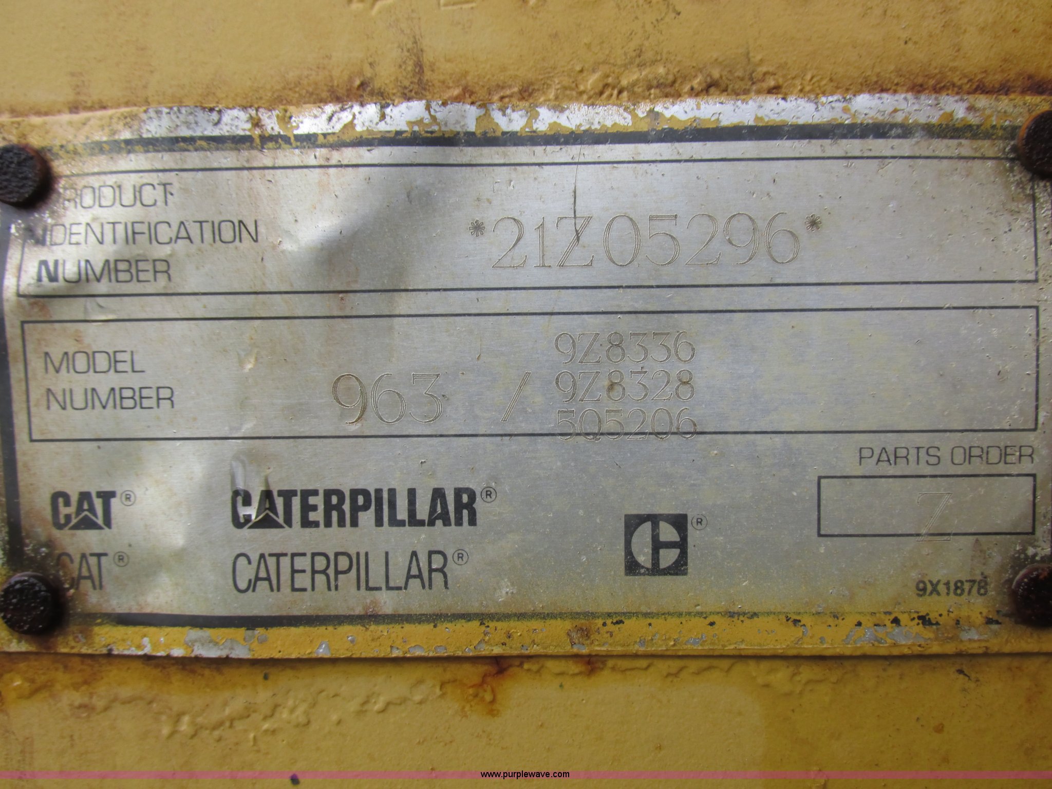 Purple Wave is selling a used Crawler Loader in Missouri. This item is a 1994 Caterpillar 963 track loader with the following: 5,810 hours on meter, Caterpillar 3304 427 cu. in. diesel engine, 150 HP, Hydrostatic transmission, 2F-2R gears, Cab, Suspension seat, Front and rear work lights, Rear screen guard, 2.2 cubic yard bucket, Hydraulic dump, 68 gallon fuel tank, 41,000 lbs. base operating weight, Broken glass, Hydrostatic seal leaking, Serial 21Z05296