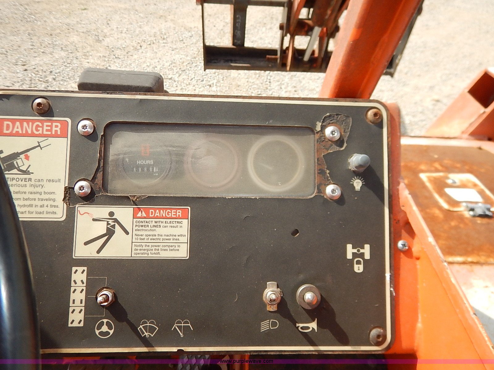 Purple Wave is selling a used Telehandler in Kansas. This item is a 2000 Sky Trak 6036 telehandler with the following: Four cylinder diesel engine, Ten degree cab tilt, Omni Quip 6040600, 36' maximum reach, 10,000 lbs maximum lift capacity, 4'L x 4"W x 2" thick forks, Side to side tilt, Manual fork adjustment, Block heater, Hydraulic reservoir, 14.00R24 tires, PIN 070BP195-1, Serial 163S14