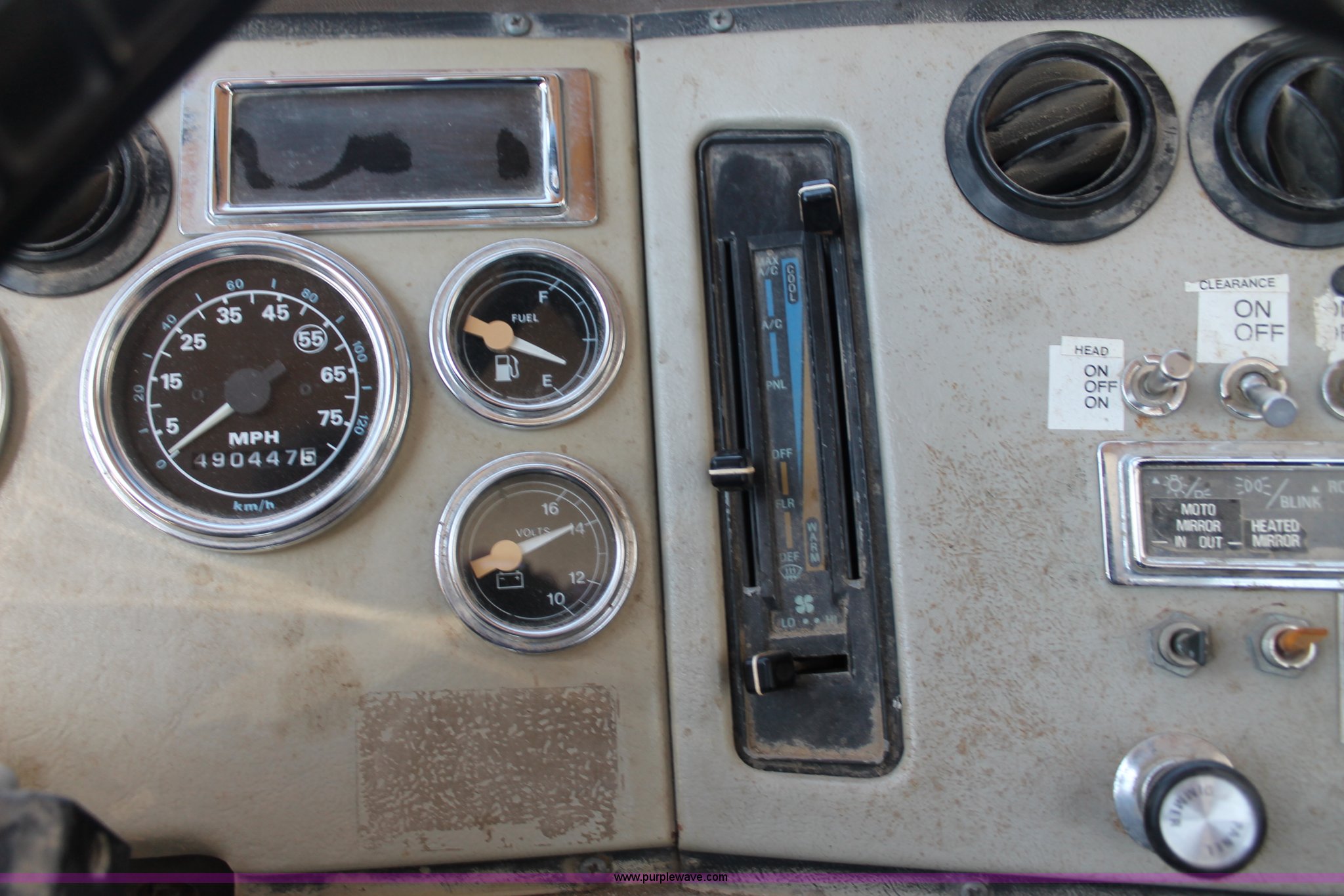 Purple Wave is selling a used Flat Bed Truck in Kansas. This item is a 1994 Ford LN9000 flatbed truck with the following: 490,447 miles on odometer, Cummins L10 10.0L L6 diesel engine, 10 speed manual transmission, Air suspension seat, Manual windows and locks, 18' x 8' flatbed, Hoist, Pintle hitch, Dual fuel tank, PTO, Spring suspension, 11R22.5 tires, GVWR 32,700 lbs, Interior/exterior cosmetic damage, Recently replaced injectors and clutch, Cam shaft worn
