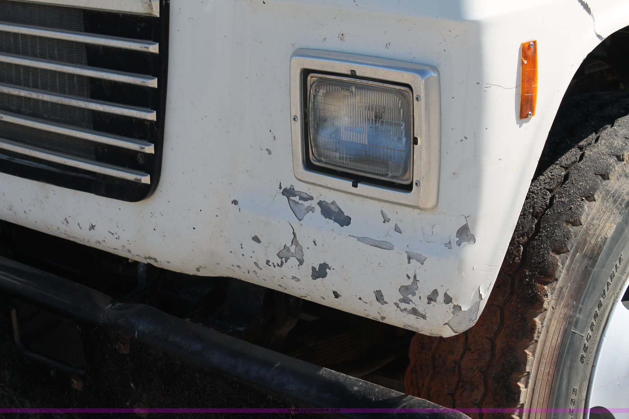 1994 Ford LN9000 flatbed truck. 490,447 miles on odometer, Cummins L10 10.0L L6 diesel engine, 10 speed manual transmission, Air suspension seat, Manual windows and locks, 18' x 8' flatbed Hoist, Pintle hitch, Dual fuel tank, PTO, Spring suspension, 11R22.5 tires, GVWR 32,700 lbs, Interior/exterior cosmetic damage, Recently replaced injectors and clutch, Cam shaft worn. 1FDXR90L4RVA49233. Lyon County Highway Department. Emporia, KS 66801