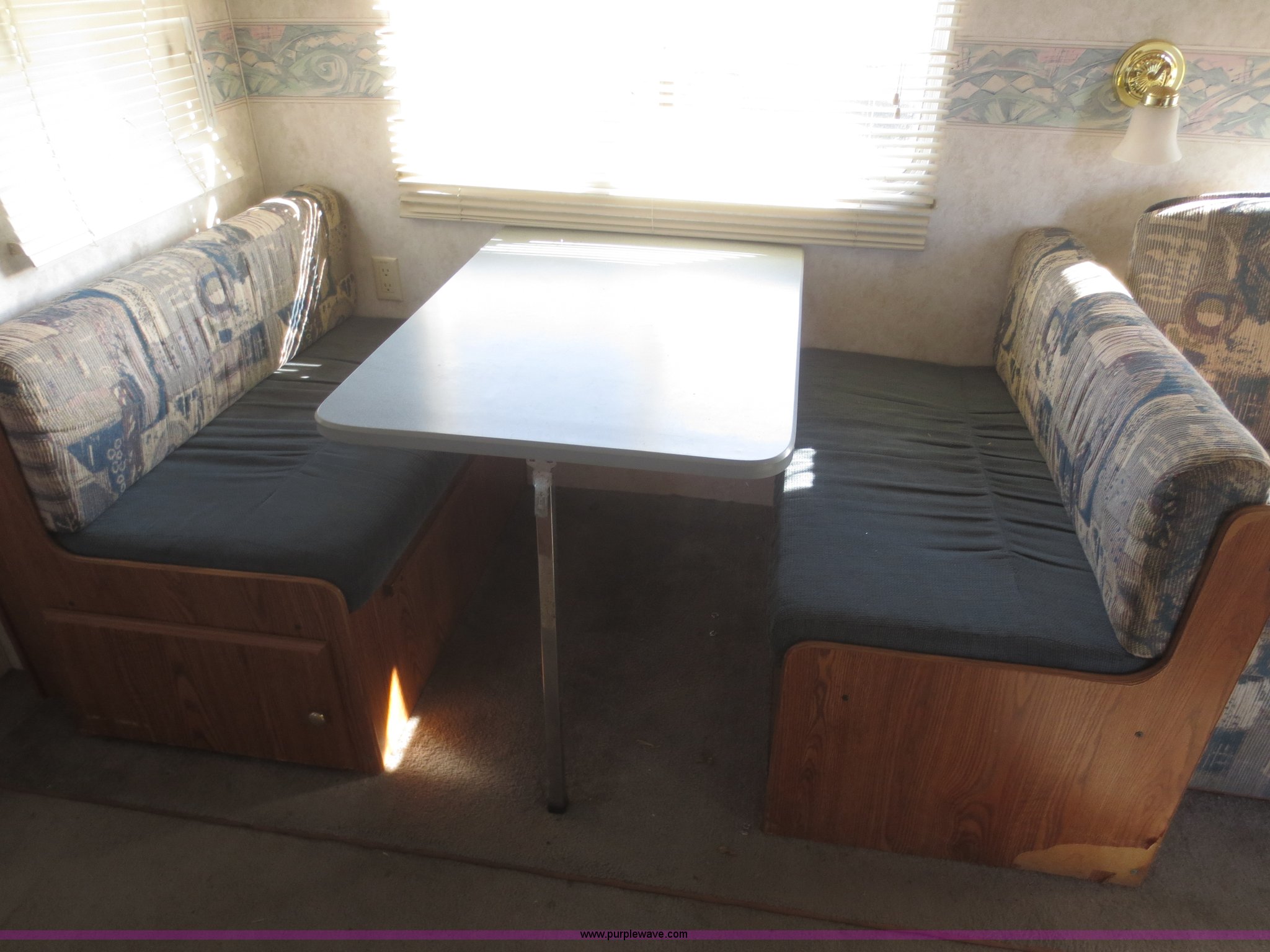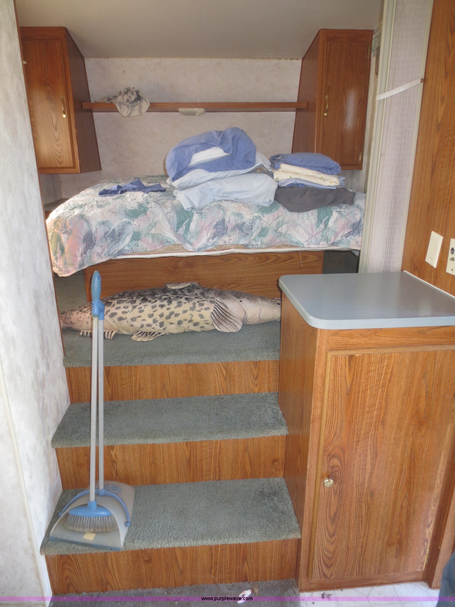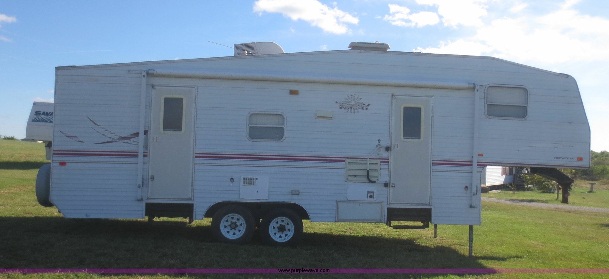 Purple Wave is selling a used RV in Oklahoma. This item is a 2000 Fleetwood 2855 Terry RV with the following: 28'L, 30 amp, AC, Central heat, AM/FM/cassette, (2) 30 lbs propane tanks, Dura Glide 13' slide-out, Dual entry doors, 18' awning, Sofa sleeper, Booth turns into bed, Seven passenger sleeping capacity, Three burner stove, Samsung microwave, Rear bunk beds