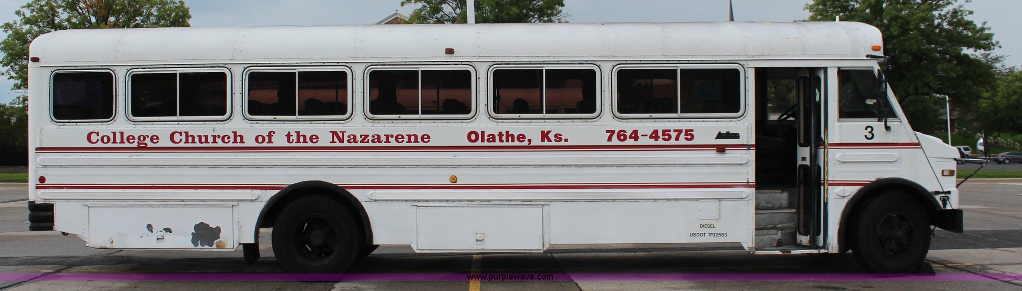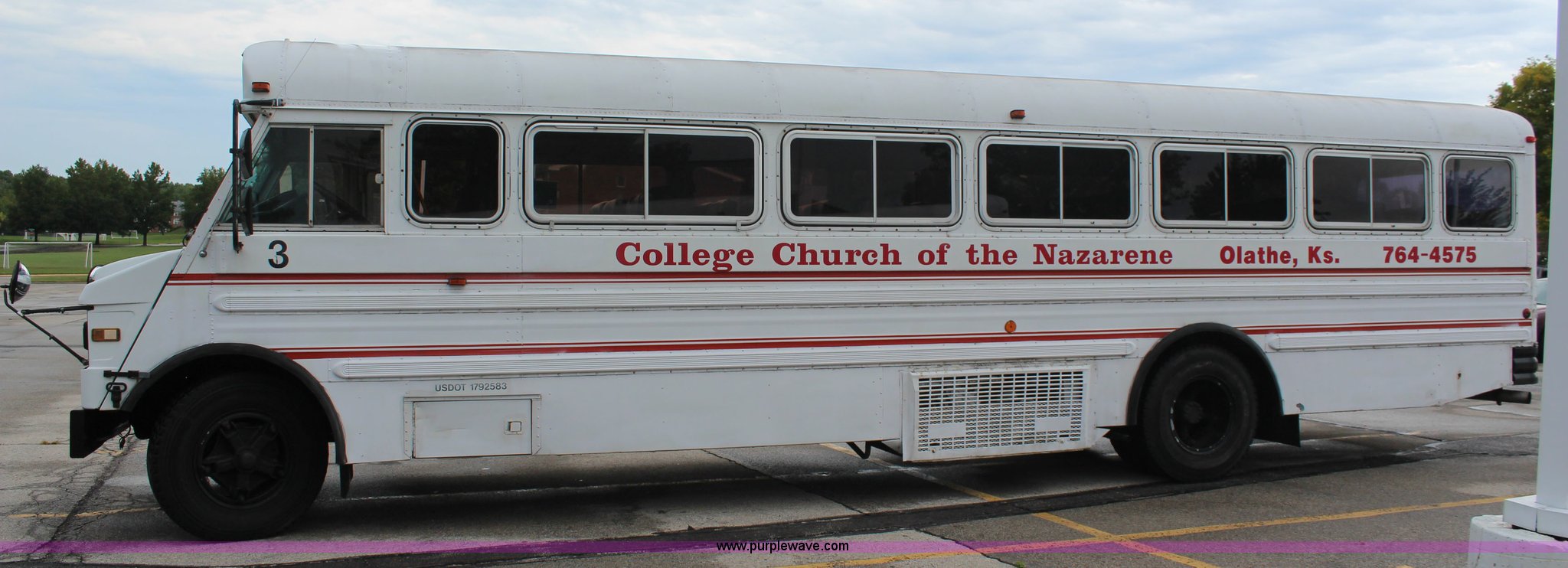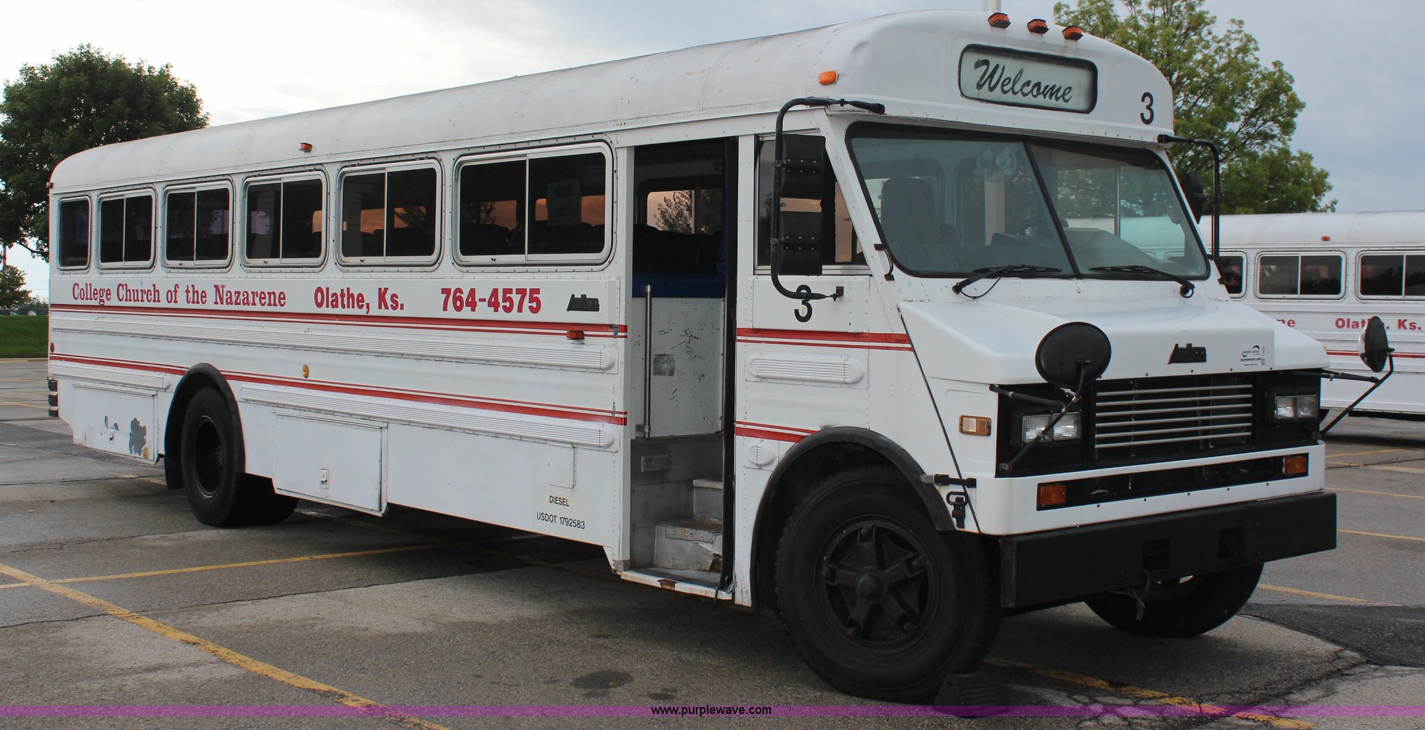 1985 GMC P6 Amtran bus. 64,698 miles on odometer Odometer has rolled over, 8.2L V8 diesel engine, Five speed manual transmission, 41 passenger capacity, 10 rows of seats, 9.00-20 tires, AC inoperable, Unit# 19007. 1GDL6S1G1FV615229. College Church of Nazarene. 2020 E Sheridan. Olathe, KS 66062
