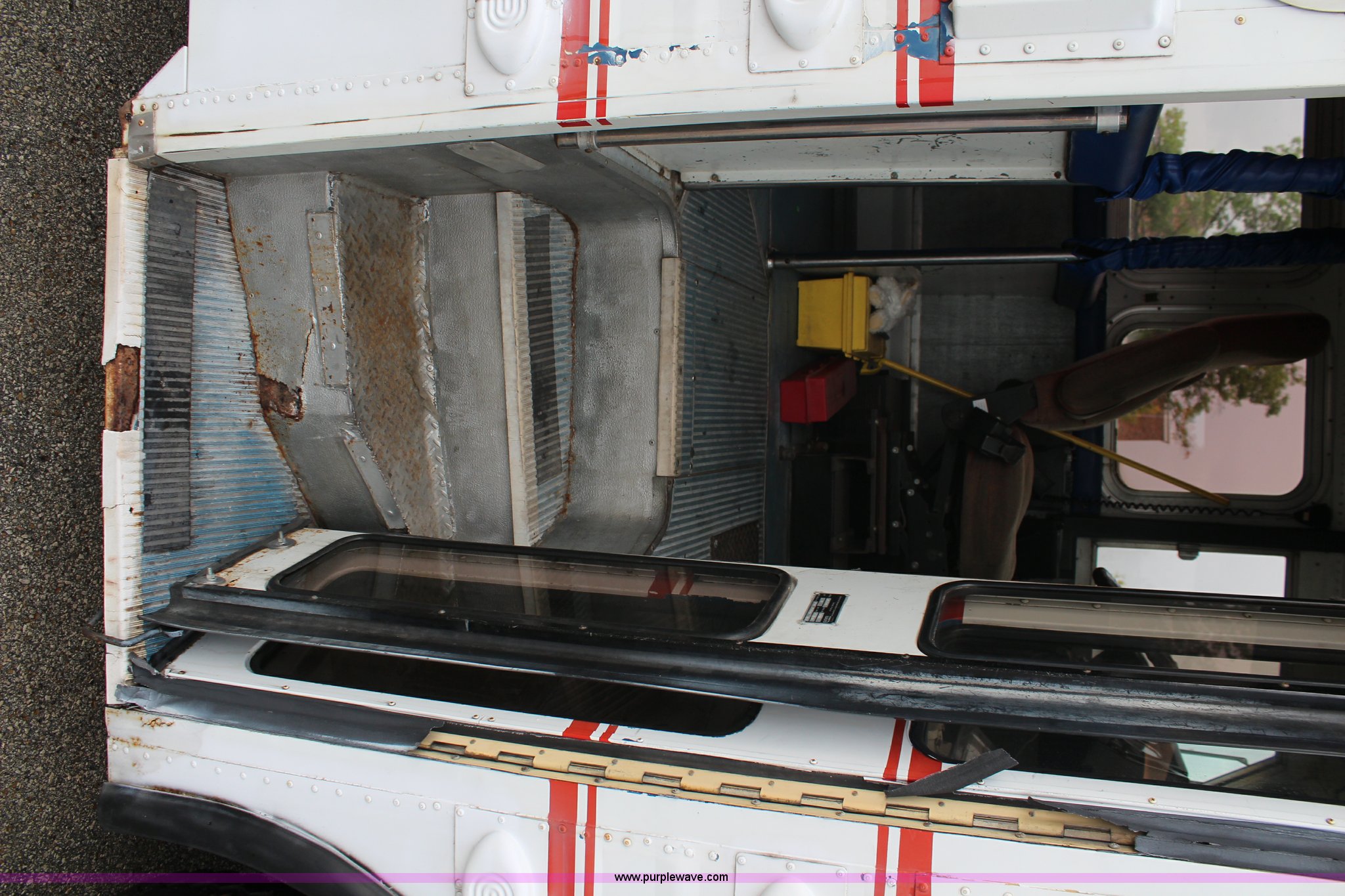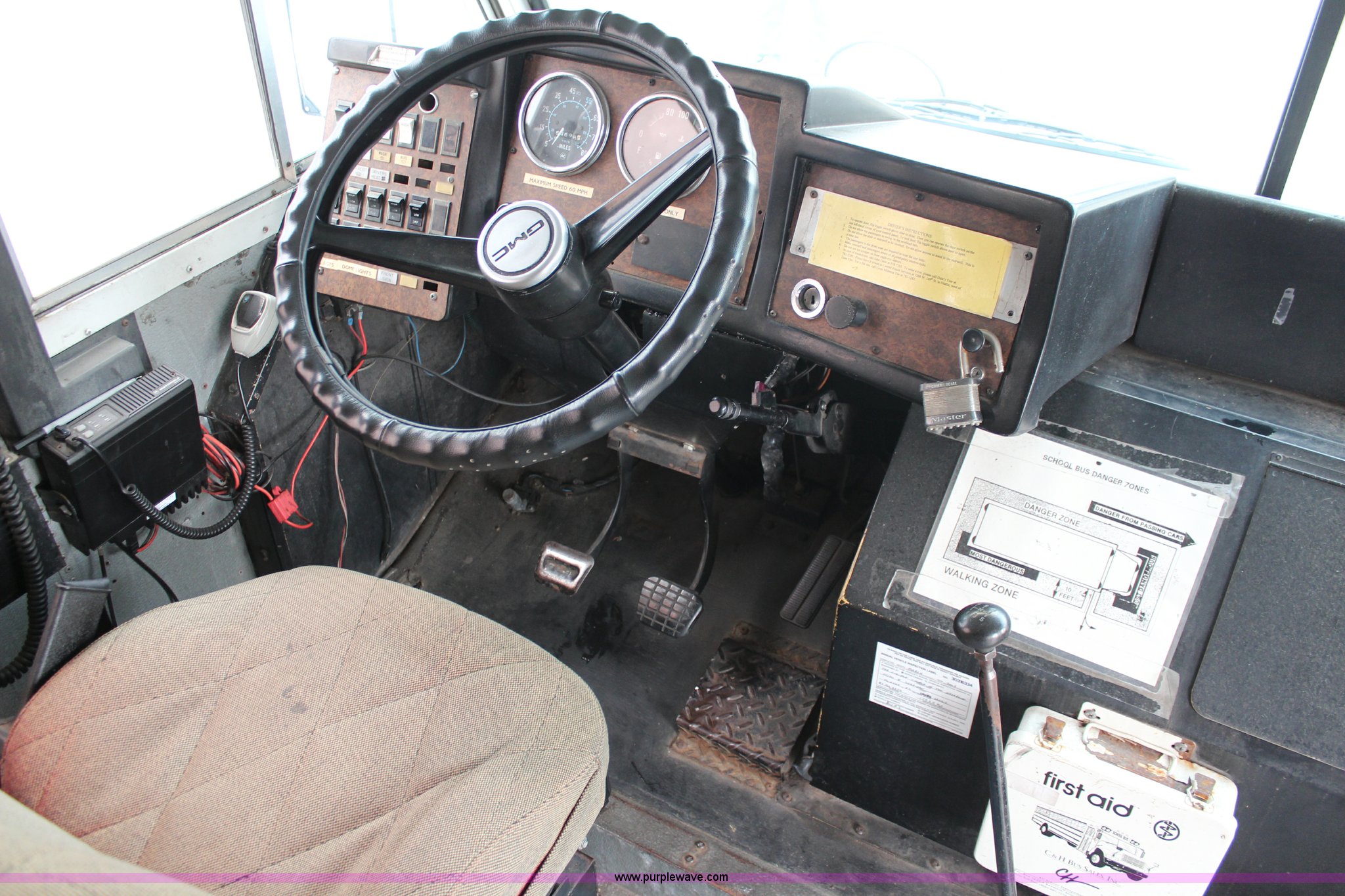 Purple Wave is selling a used Bus in Kansas. This item is a 1985 GMC P6 Amtran bus with the following: 64,698 miles on odometer, Odometer has rolled over, 8.2L V8 diesel engine, Five speed manual transmission, 41 passenger capacity, 10 rows of seats, 9.00-20 tires, AC inoperable, Unit# 19007