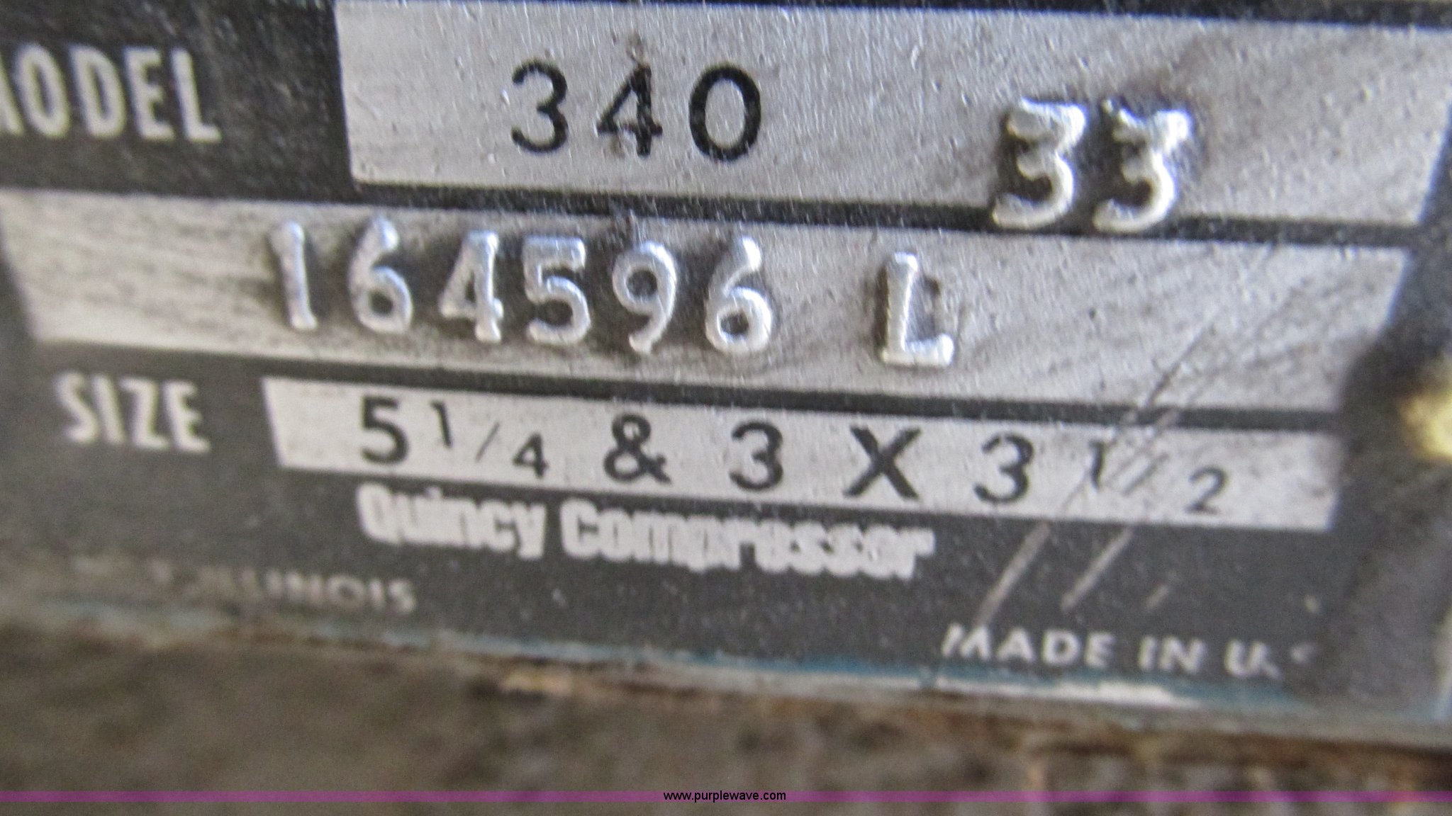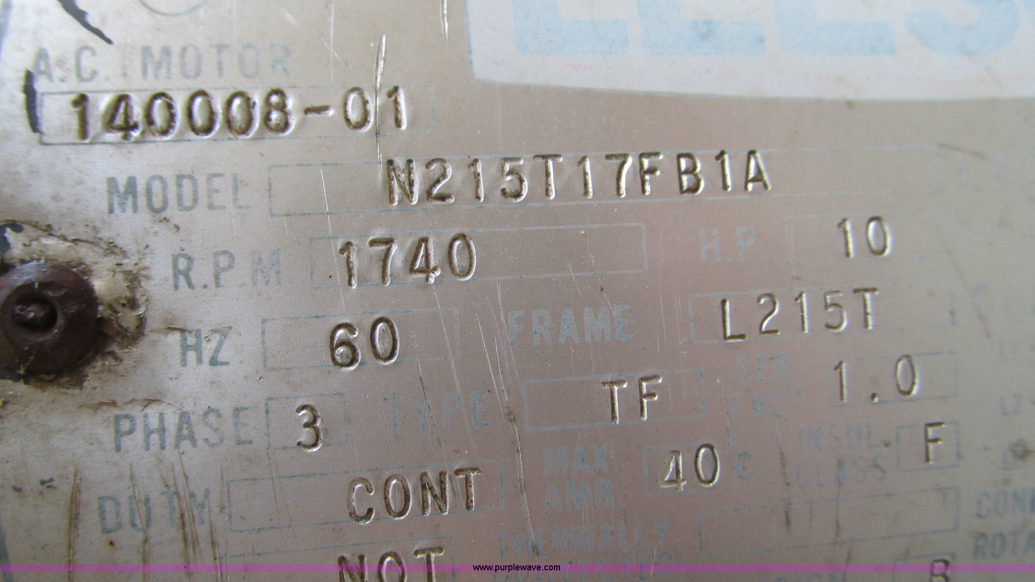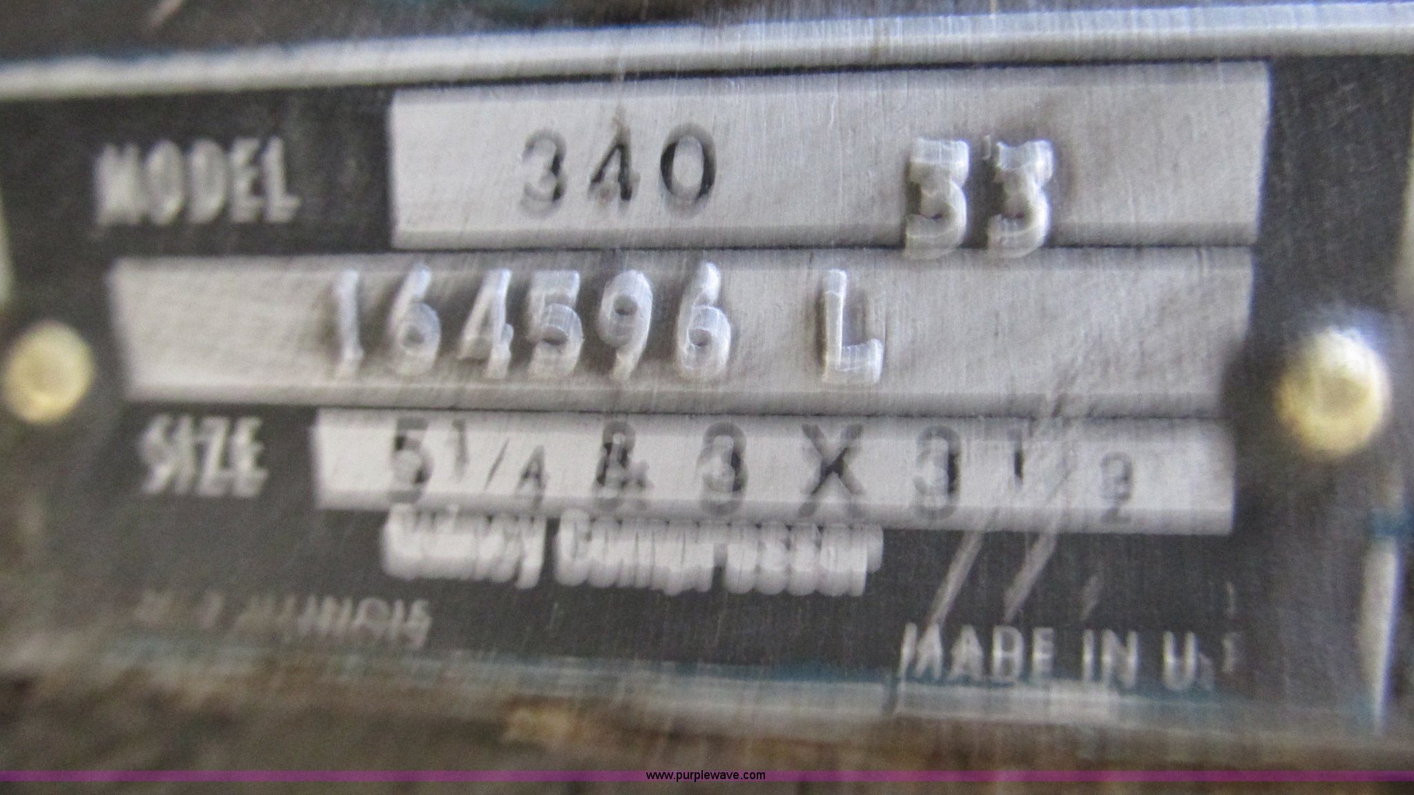 Purple Wave is selling a used Air Compressor in Missouri. This item is a John Deere Dickson 340-33 air compressor with the following: Model N215T17FB1A, 10 HP, Three phase, 1,740 RPM, 230-460V, Junction box, Tank, Serial 164596L