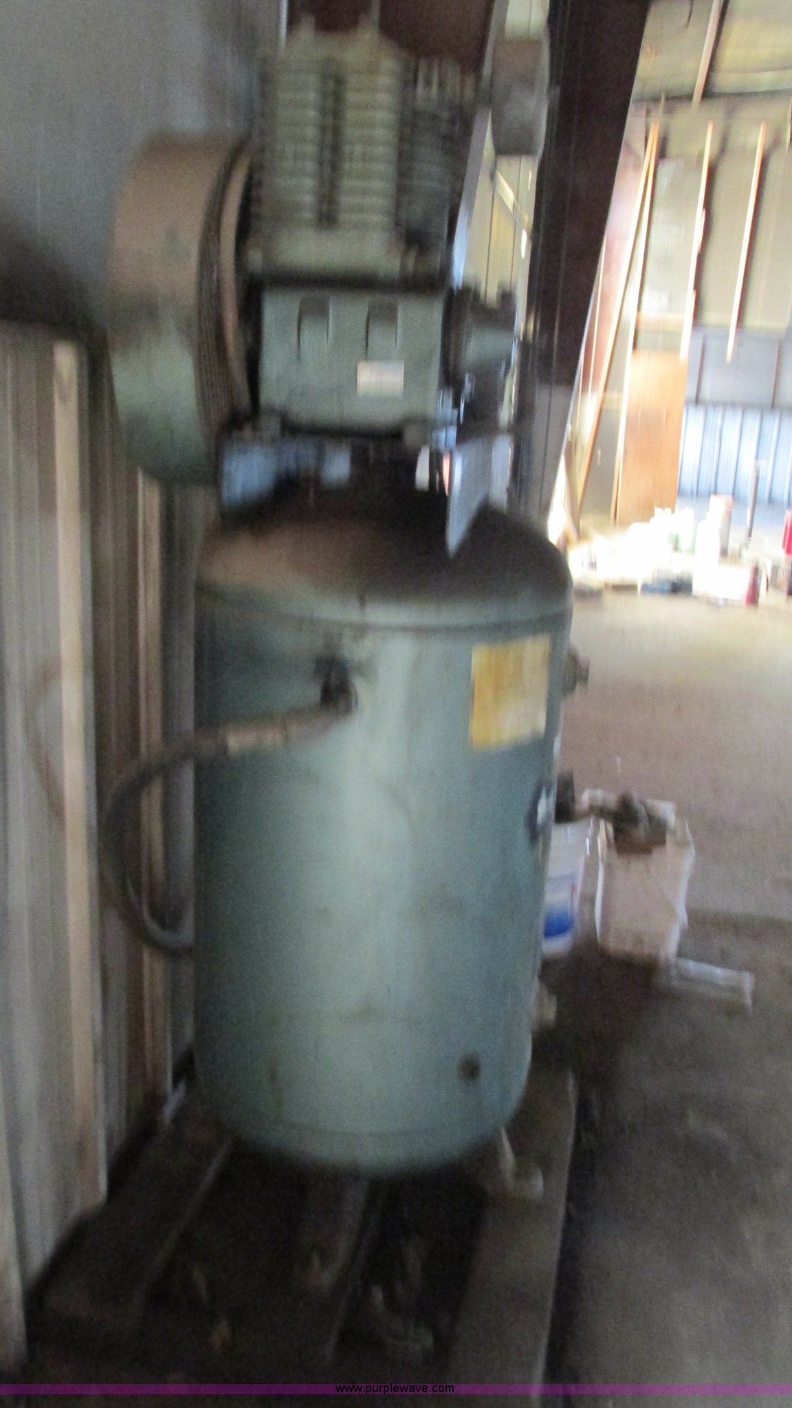 Purple Wave is selling a used Air Compressor in Missouri. This item is a Saylor-Brall air compressor with the following: Model VT-7350-80, Baldor 5 HP electric motor, Three phase, 208-230/460V, Tank, Serial 5-26-JM