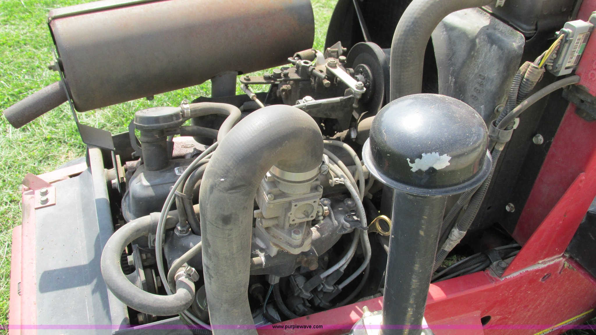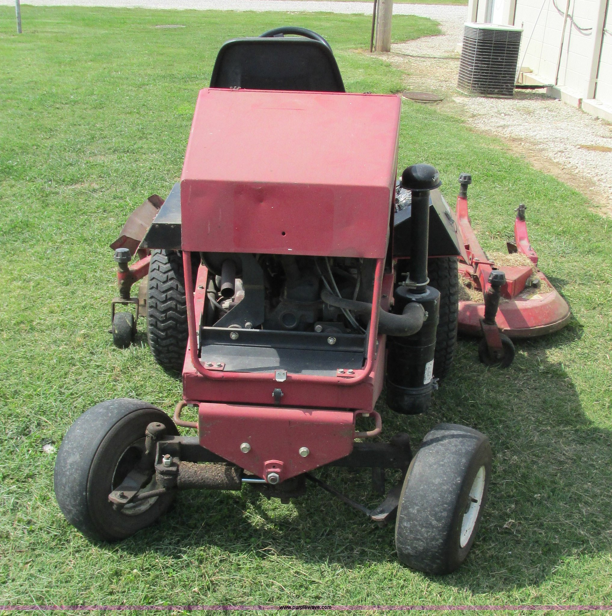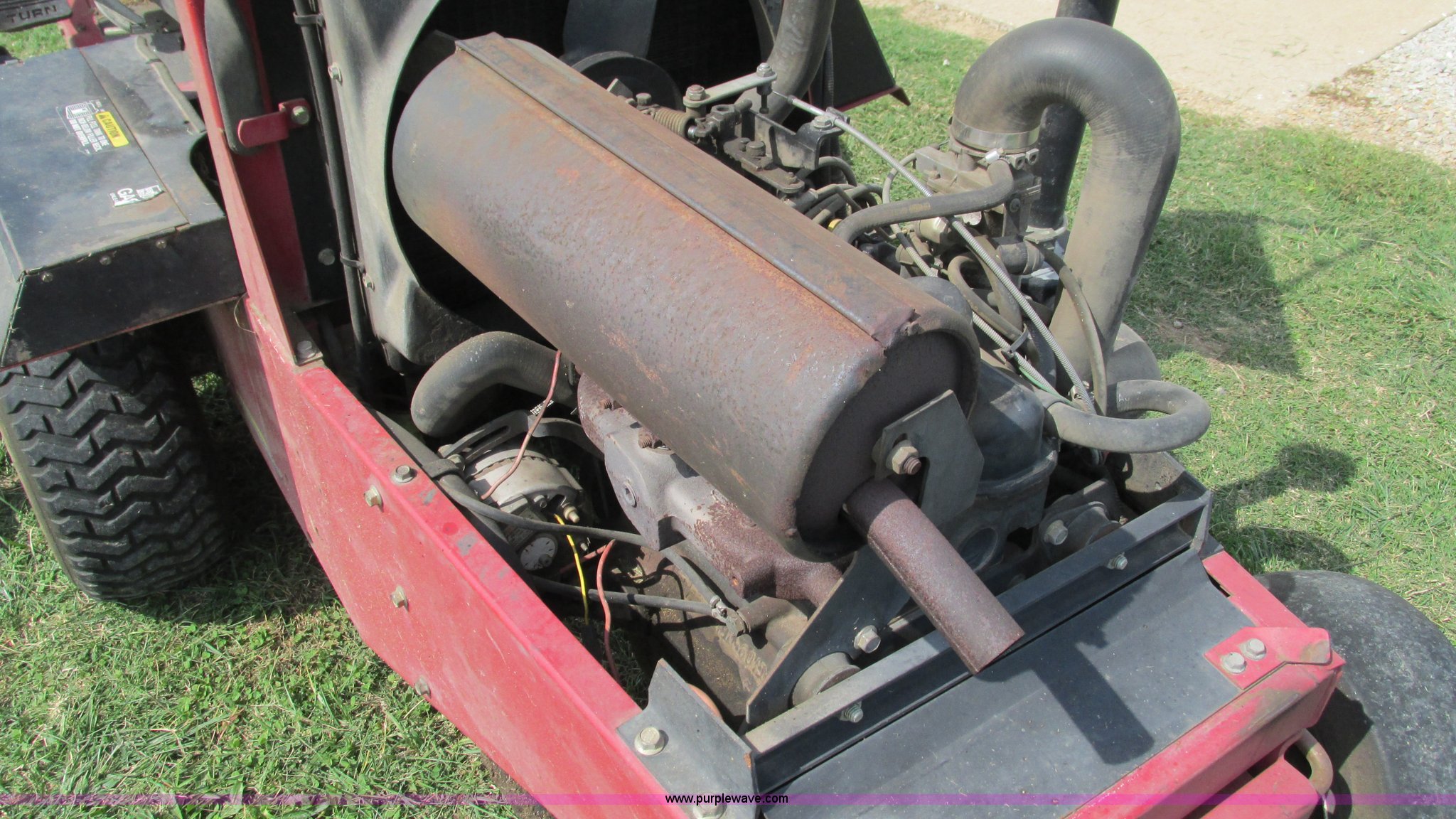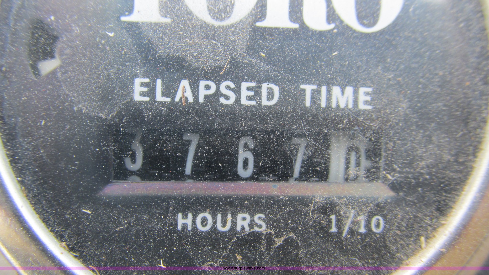 Purple Wave is selling a used Commercial Turf Mower in Missouri. This item is a Toro Groundmaster 345 riding lawn mower with the following: 3,767 hours on meter, Hours may vary, still in use, 72" cut, Ford three cylinder water cooled diesel engine, Model VSG4111-6003-A, 16x6.50 front tires, 23-8.5 rear tires, Seat torn, Serial 3078-70187