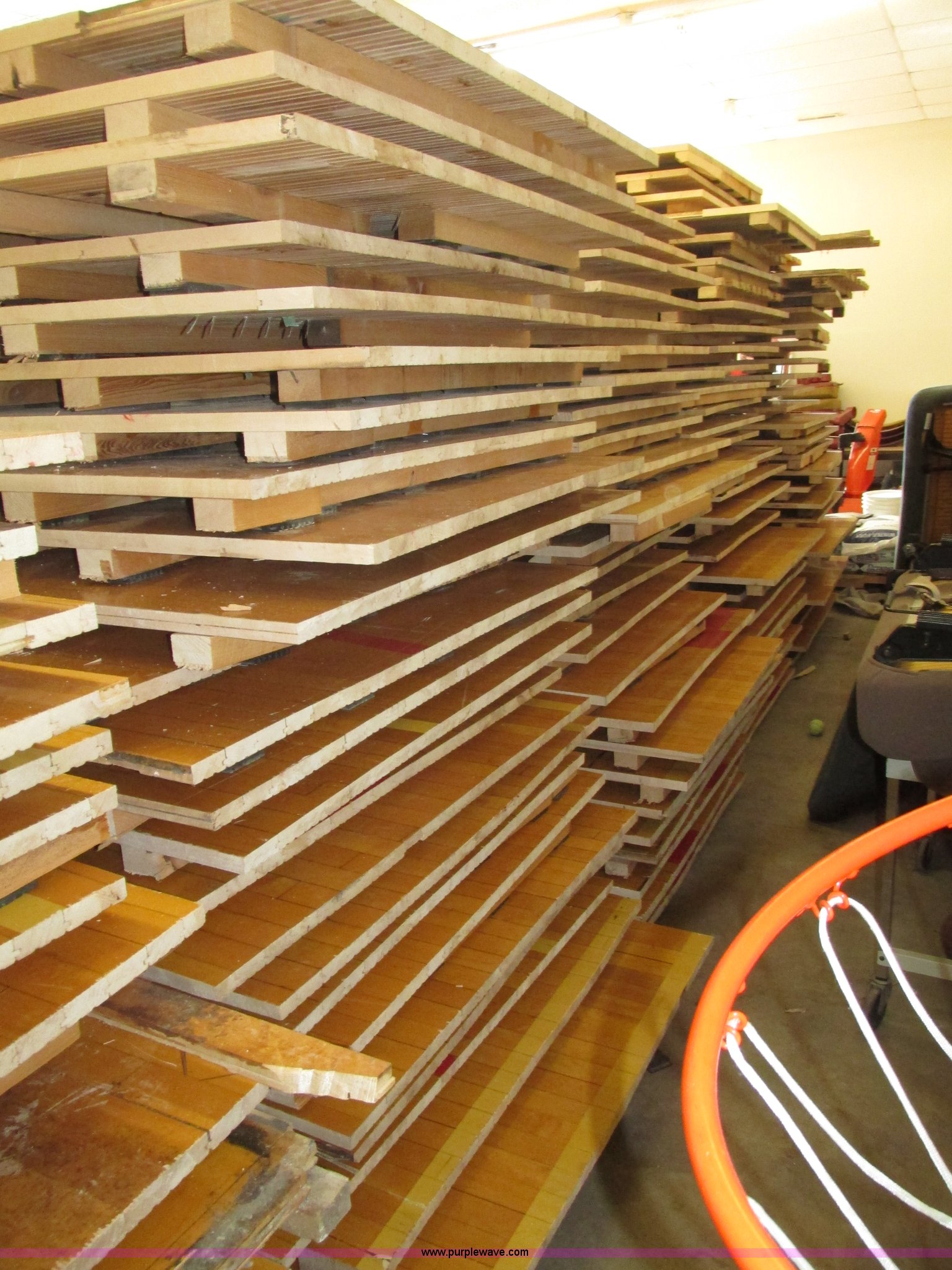 Purple Wave is selling a used Sporting Goods in Nebraska. This item is a (25) gym floor sections with the following: Approx. 4 x 8, Size may vary, 1 5/8" x 2 5/8" reinforcement, 2.5" x 2" rubber pads