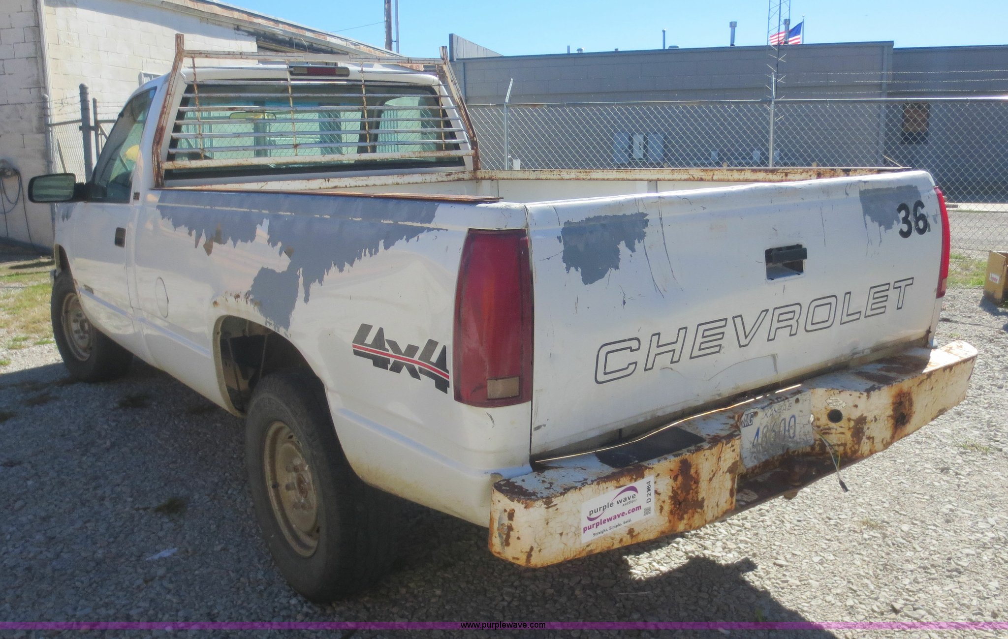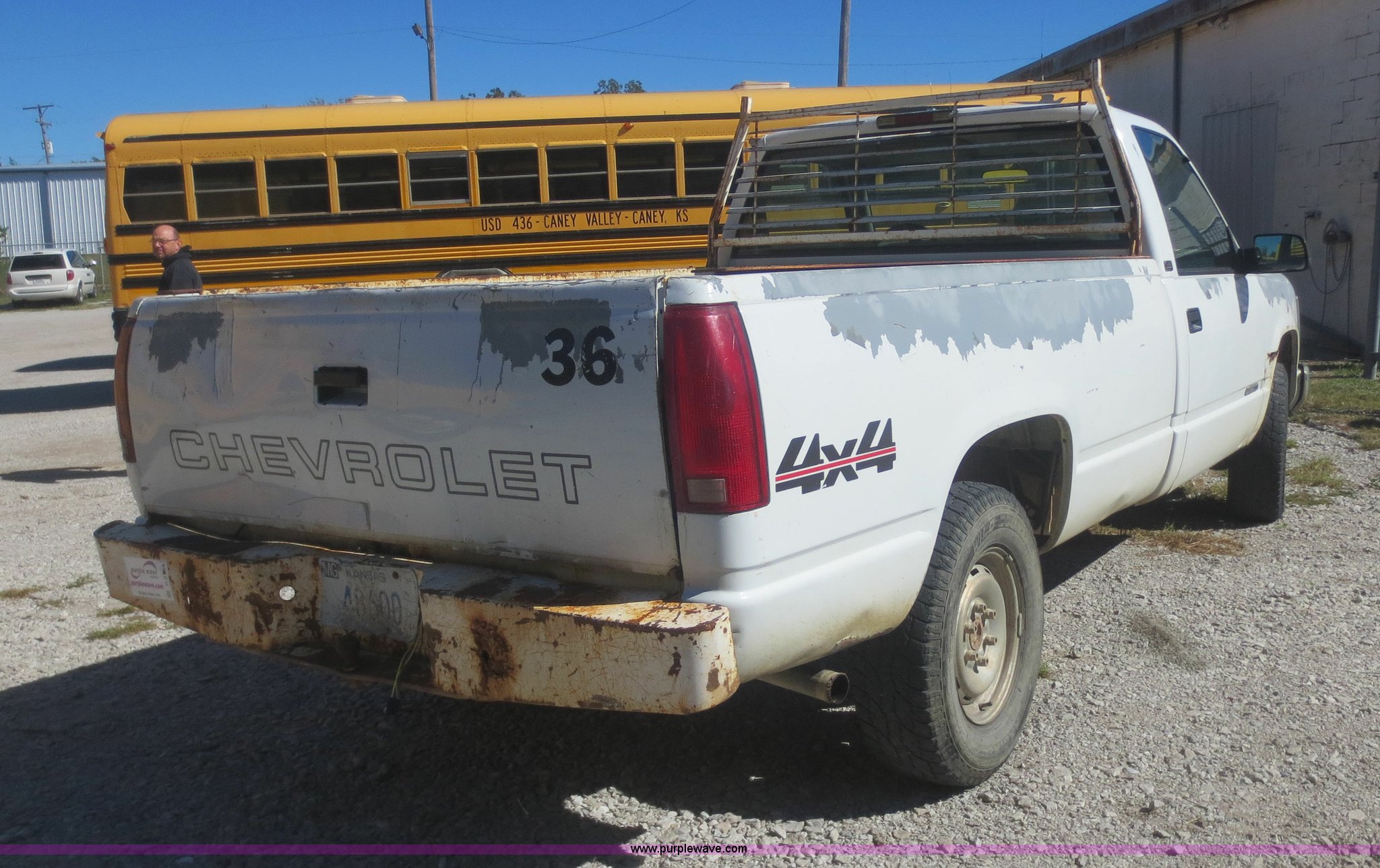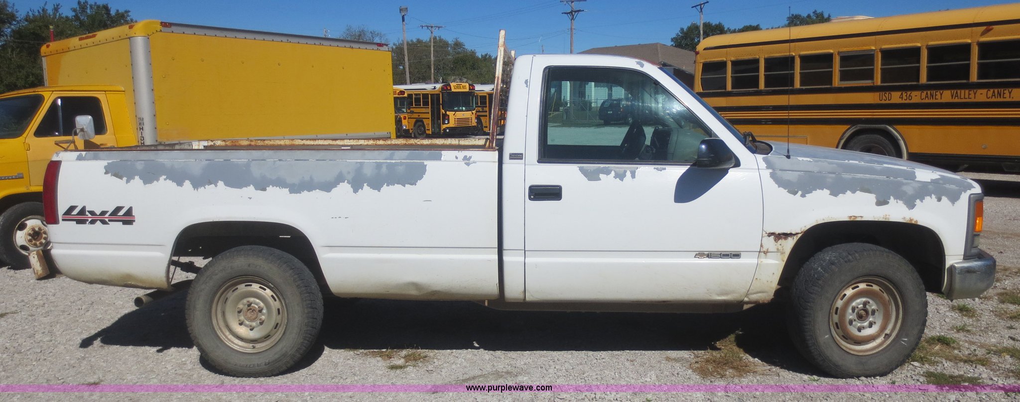 Purple Wave is selling a used 1/2 Ton Pickup or Van in Kansas. This item is a 1995 Chevrolet 1500 pickup truck with the following: 261,259 miles on odometer, 5.0L V8 VIH 16V gas engine, Automatic transmission, Four wheel drive, AC and heat, AC inoperable, Cruise, AM/FM/cassette, Manual windows and locks, Cloth interior, Long bed, Trailer wiring, LT245/75R16 tires, Interior/exterior cosmetic damage
