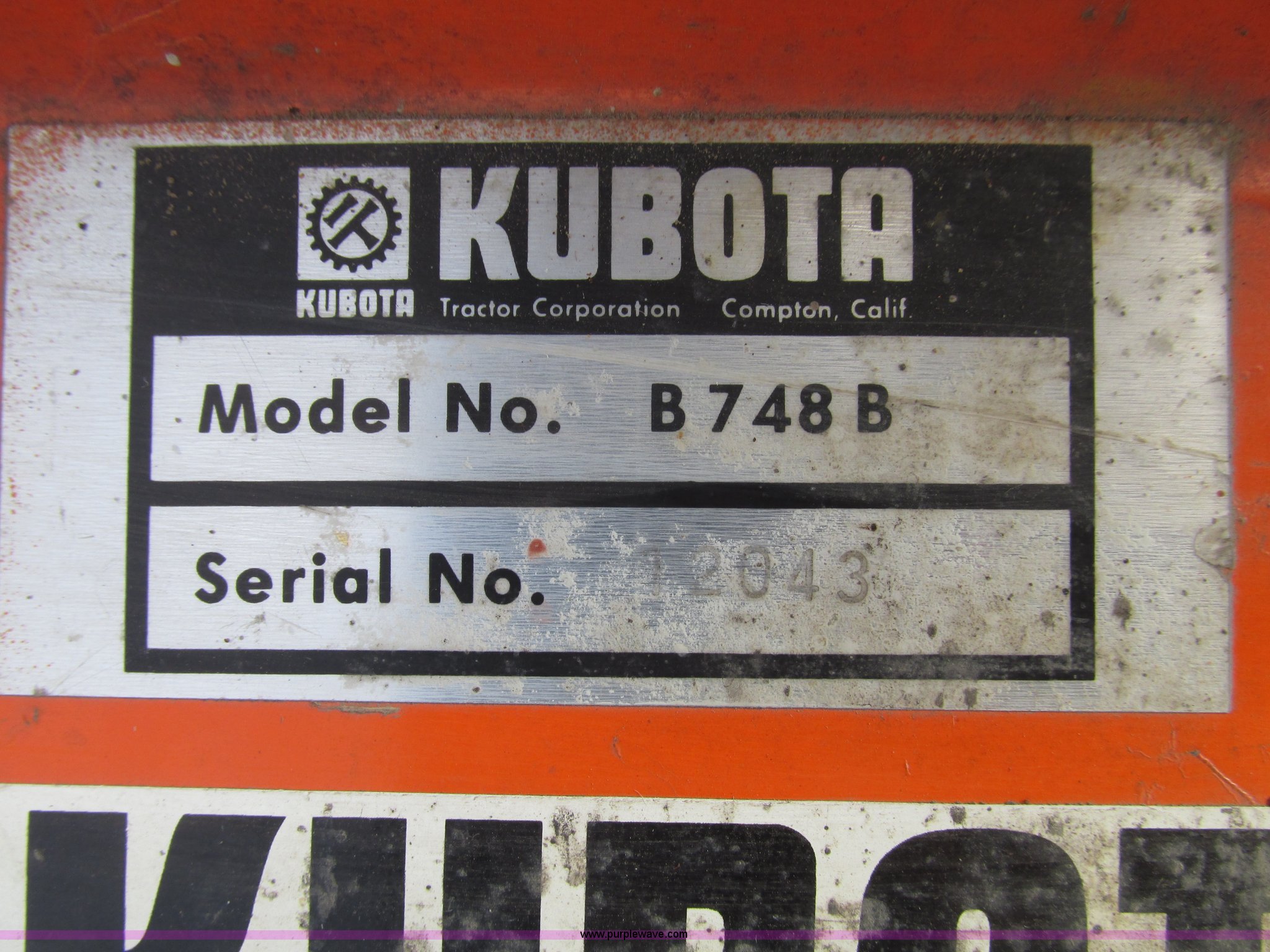 • Last used on Kubota B7100 tractor