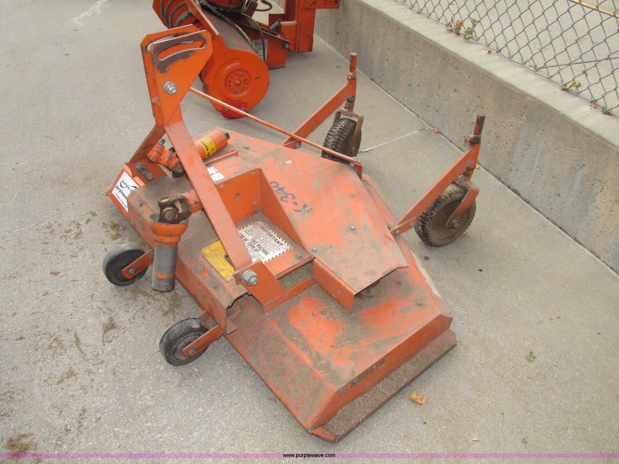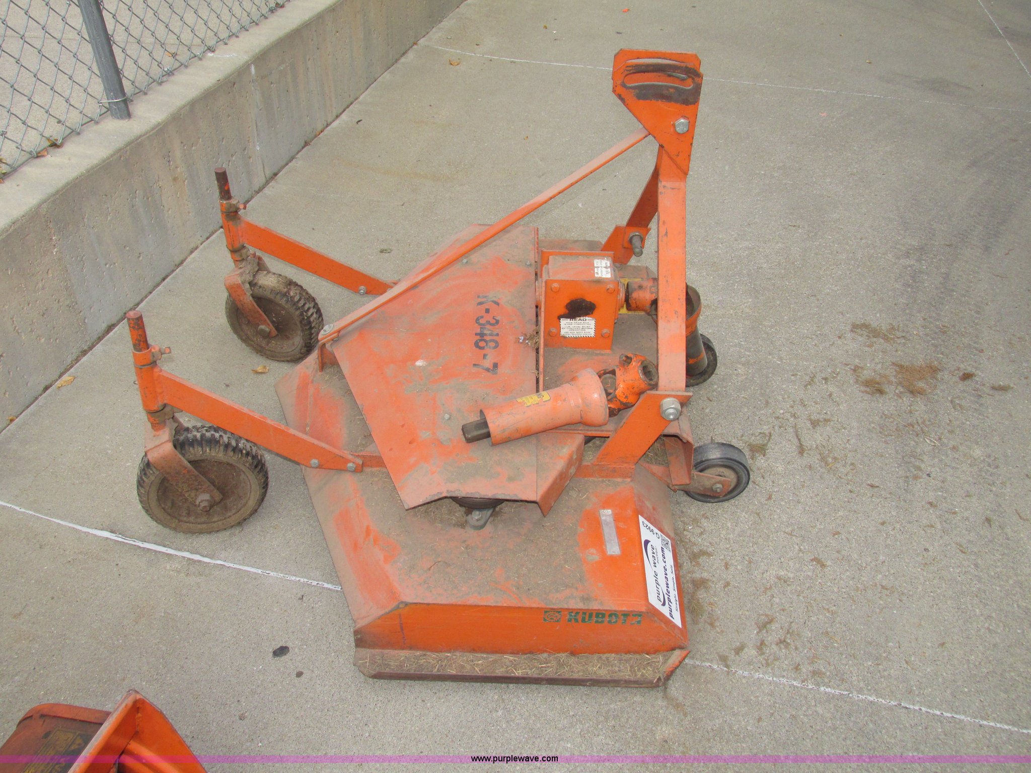 Purple Wave is selling a used Mower, Cutter, Shredder in Nebraska. This item is a Kubota 48" rotary mower with the following: Model K-348-7, Three point, 540 PTO, Rear discharge, 7" rear swivel tires, 5.5" front deck tires, Last used on Kubota B7100 tractor, Last used in 2002, Serial GI4067