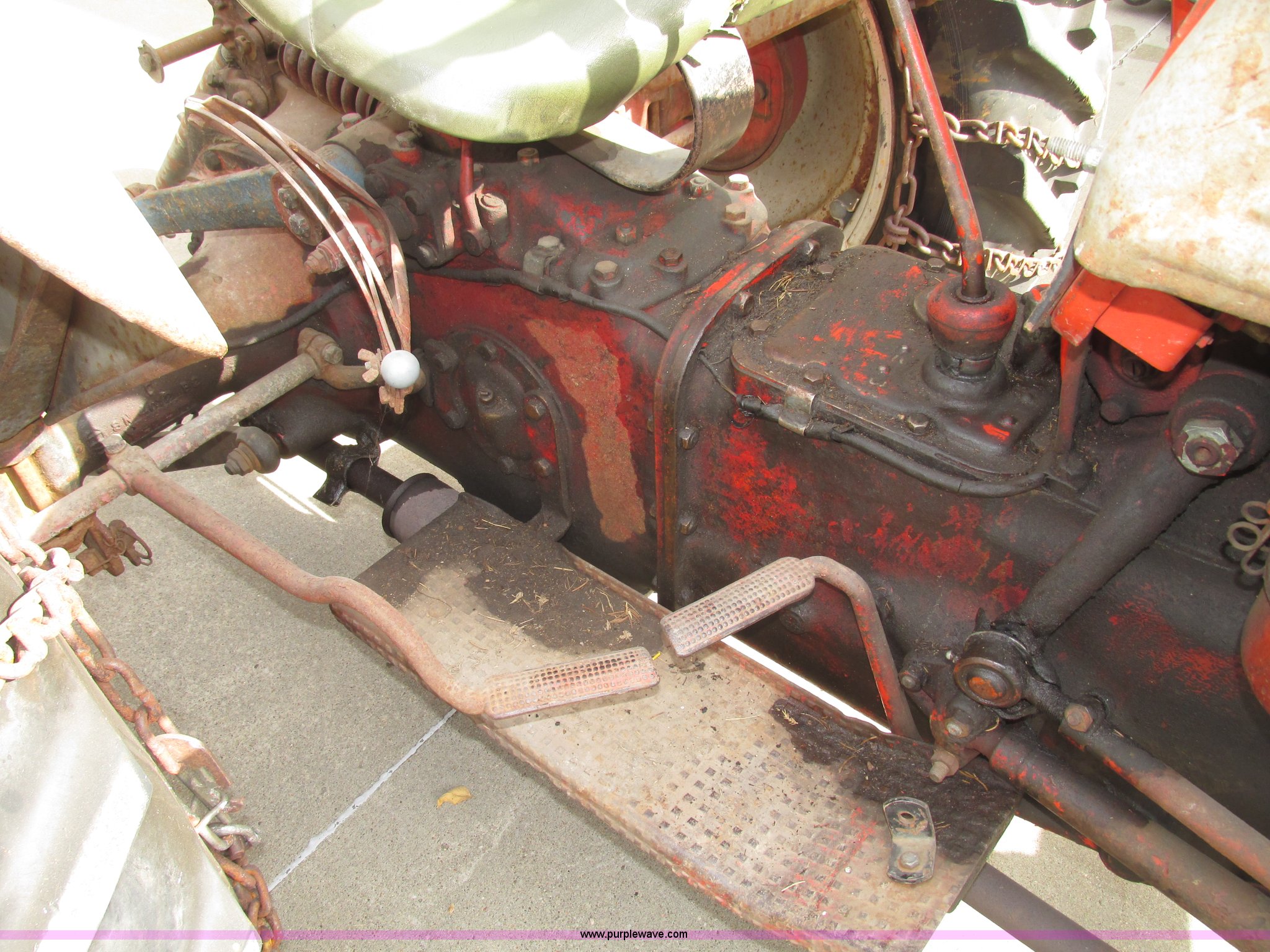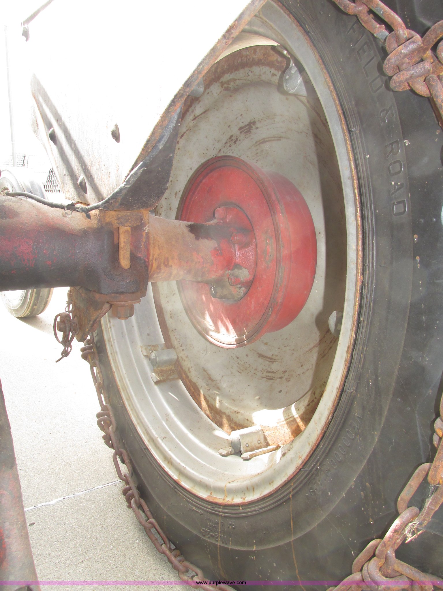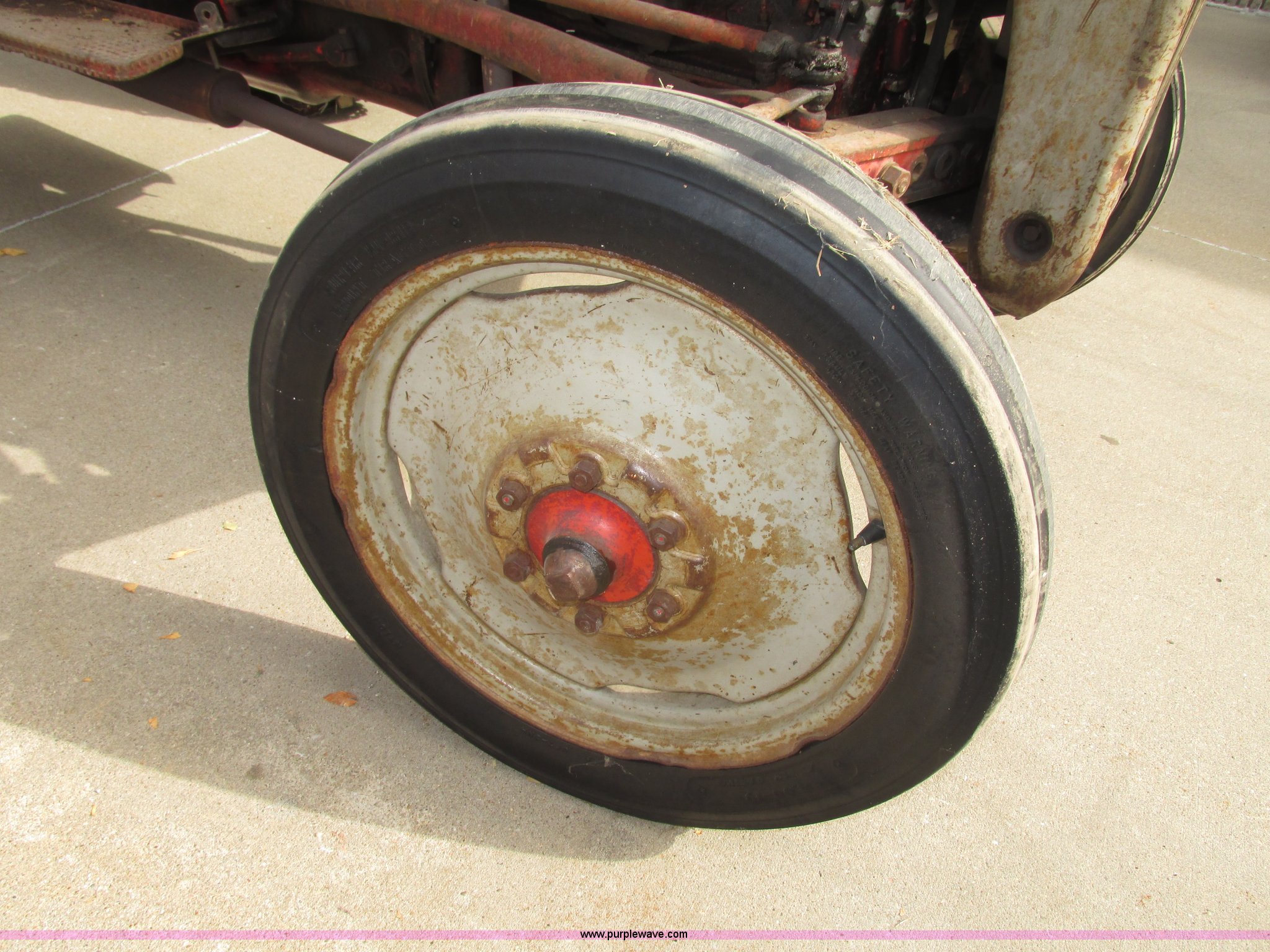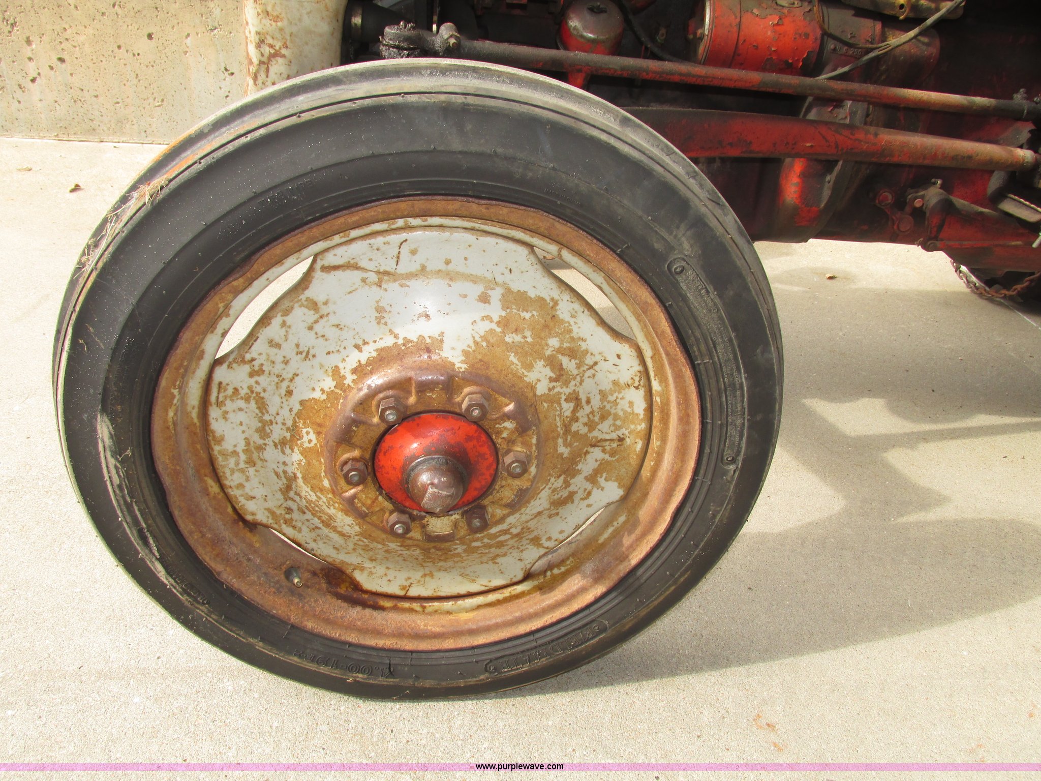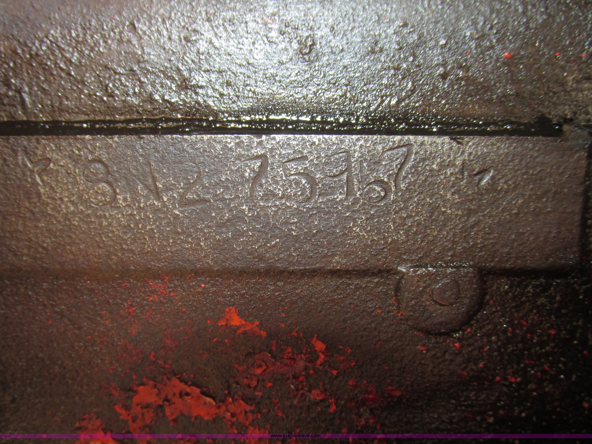 Purple Wave is selling a used Tractor in Nebraska. This item is a 1950 Ford 8N tractor with the following: 6,415 hours on meter, Ford 2.0L four cylinder gas engine, 23 HP, Constant Mesh manual transmission, 4F-1R gears, Spring suspension seat, Mechanical steering, Foot activated starter, Three point, Front work lights, SMV emblem, Type I, 540 PTO, 70" wheelbase, 4.00-19F-2 front tires, 11.2-28 rear tires, Rear tire chains, Antifreeze leaks into block, needs repaired, Needs to be jump started, Tire sidewalls cracked, Vinyl seat cushion tearing, Last used in 2012, Serial 8127596