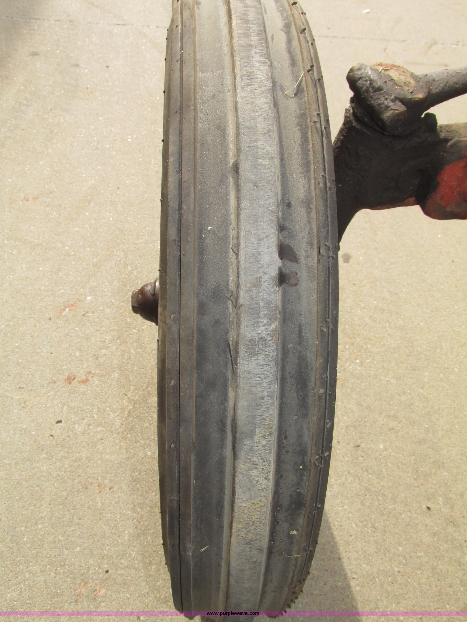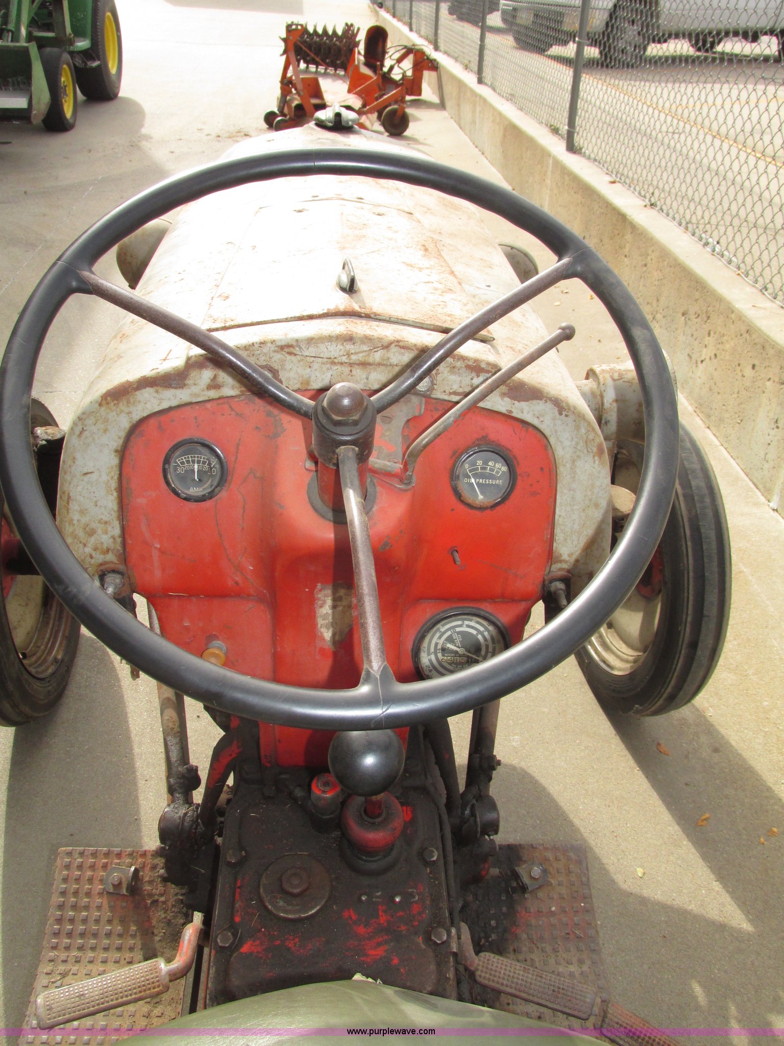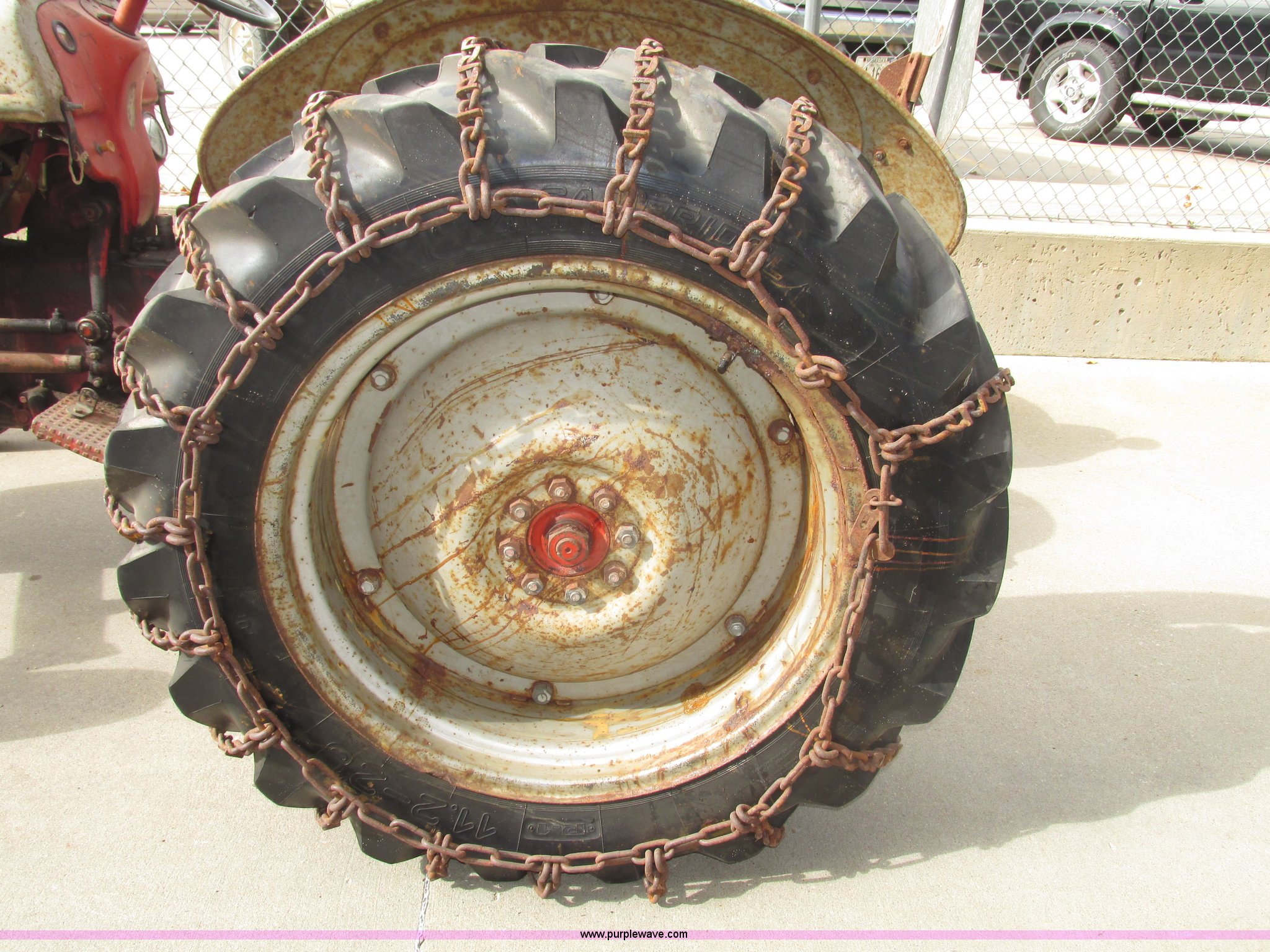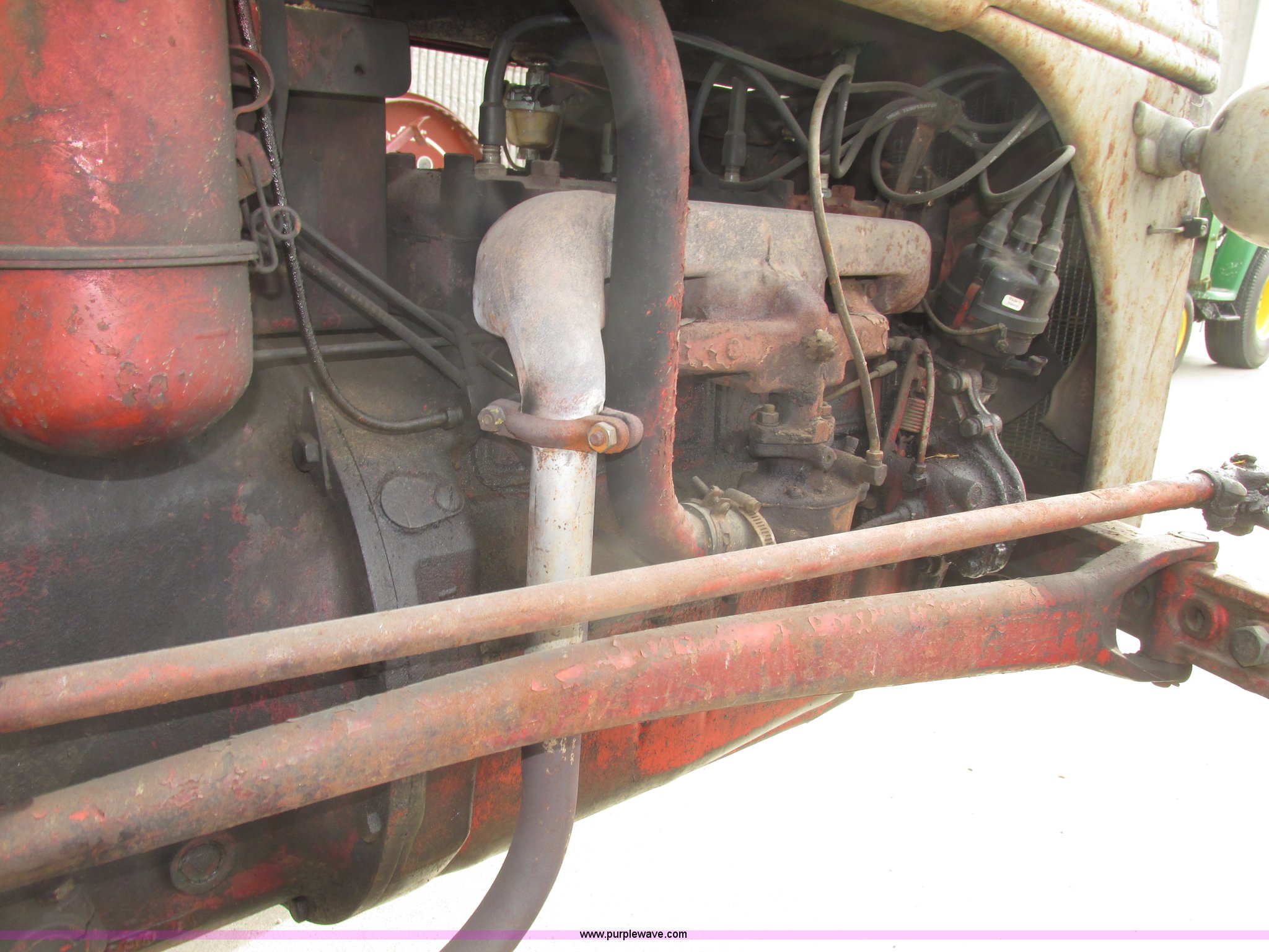 Purple Wave is selling a used Tractor in Nebraska. This item is a 1950 Ford 8N tractor with the following: 6,415 hours on meter, Ford 2.0L four cylinder gas engine, 23 HP, Constant Mesh manual transmission, 4F-1R gears, Spring suspension seat, Mechanical steering, Foot activated starter, Three point, Front work lights, SMV emblem, Type I, 540 PTO, 70" wheelbase, 4.00-19F-2 front tires, 11.2-28 rear tires, Rear tire chains, Antifreeze leaks into block, needs repaired, Needs to be jump started, Tire sidewalls cracked, Vinyl seat cushion tearing, Last used in 2012, Serial 8127596