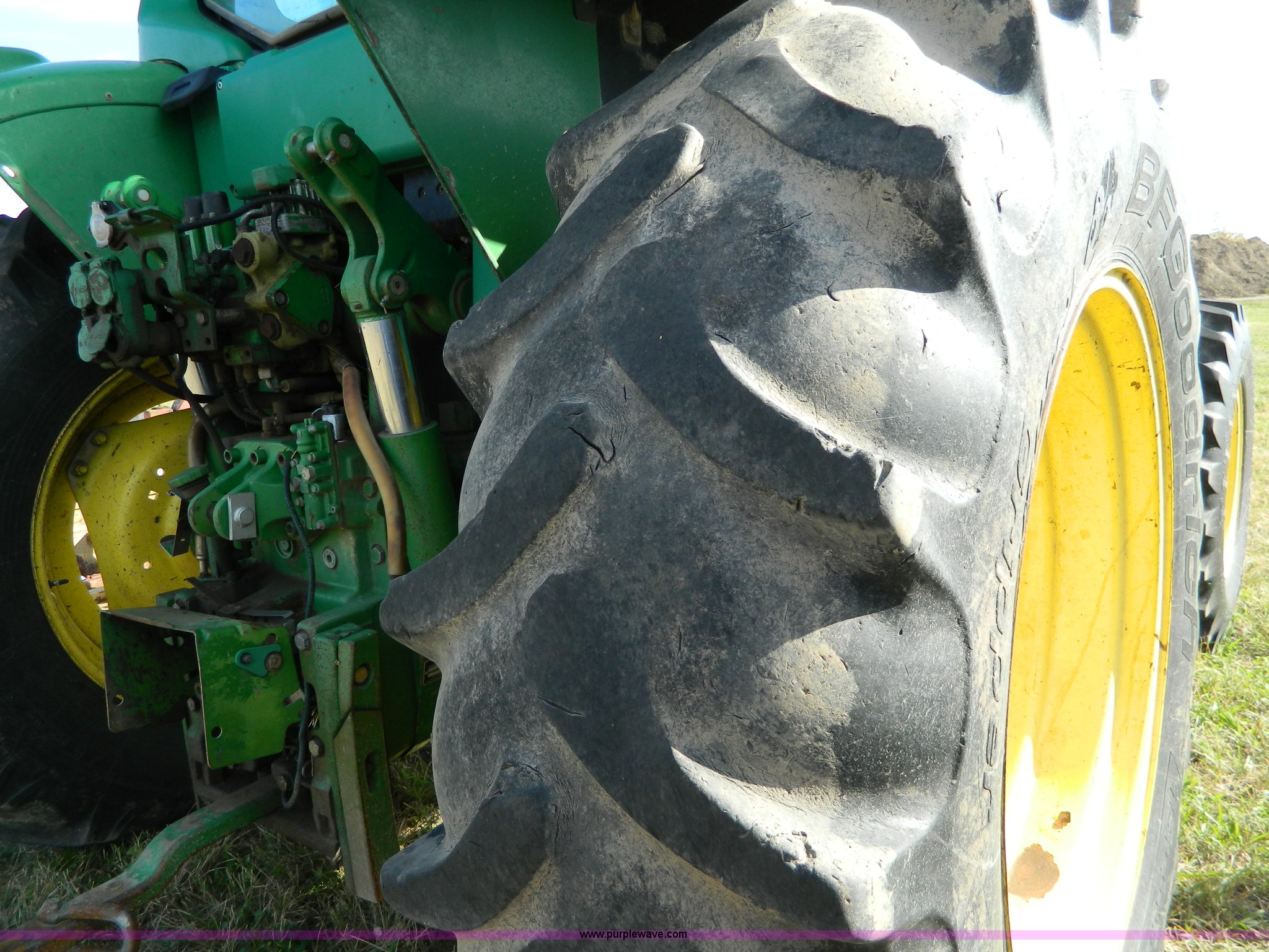 Purple Wave is selling a used Tractor in Kansas. This item is a 2002 John Deere 6320 MFWD tractor with the following: 550 hours on meter, John Deere four cylinder diesel engine, Serial CD4045H683568, Quad Range transmission, 12F-4R gears, AC and heat, AM/FM, Tilt steering wheel, Three point, Draw bar, 540 PTO, (2) rear hydraulic remotes, 13.6-24 front tires, 18.4-34 rear tires, Electrical issues with blower motors and PTO, Serial L06320M336182