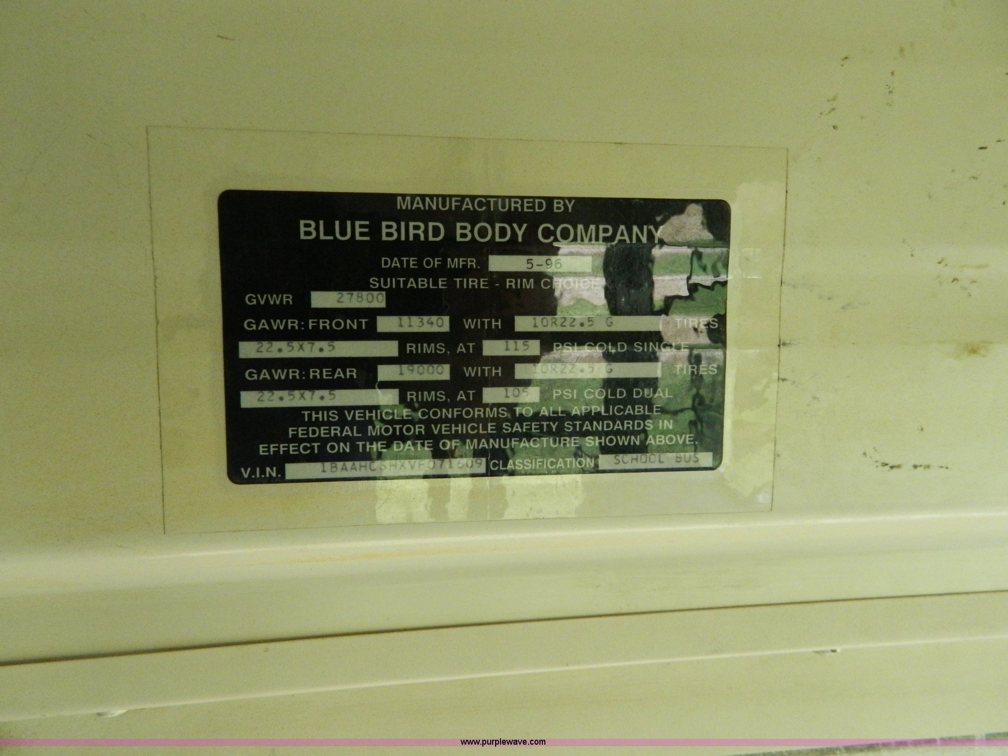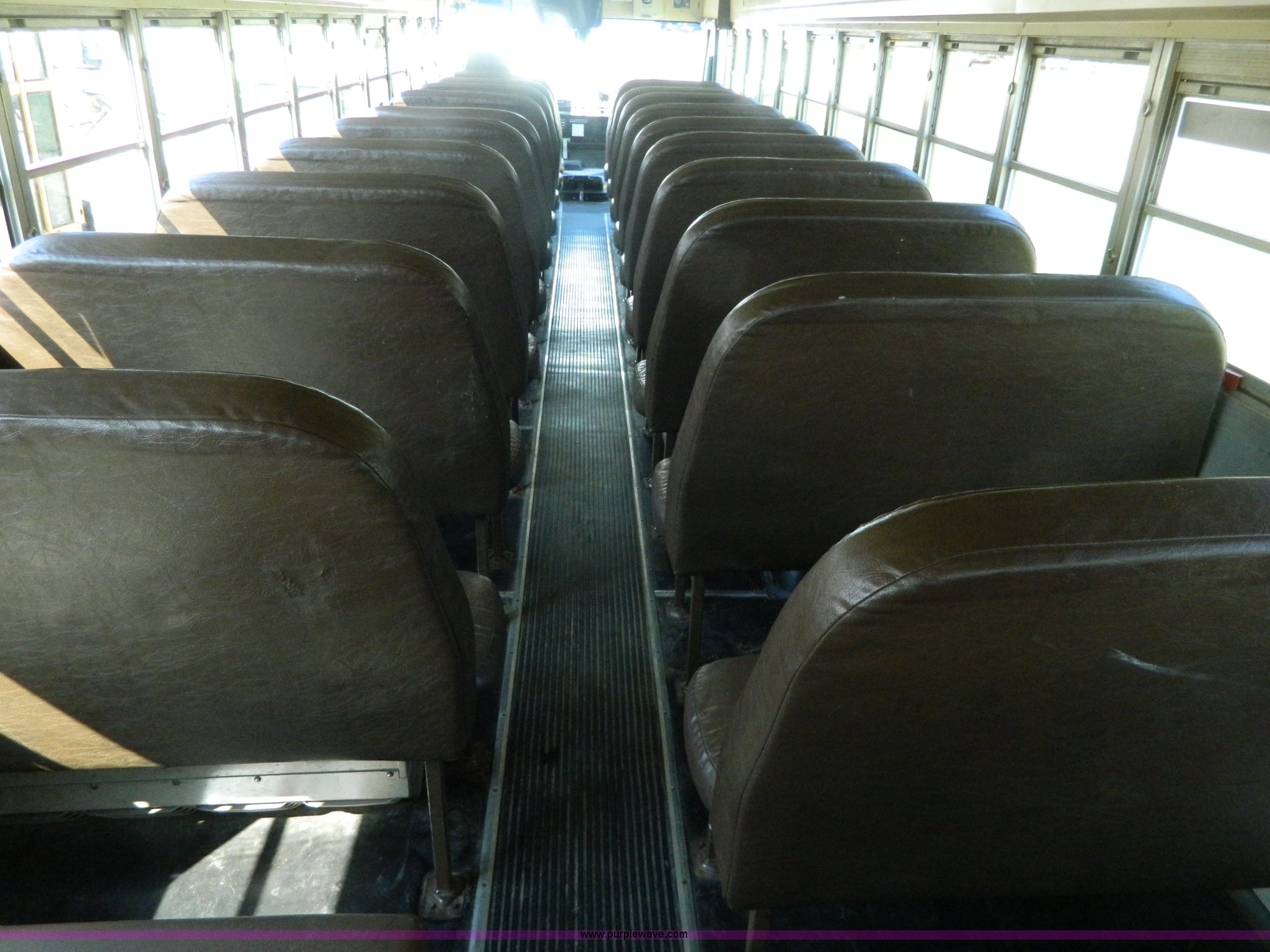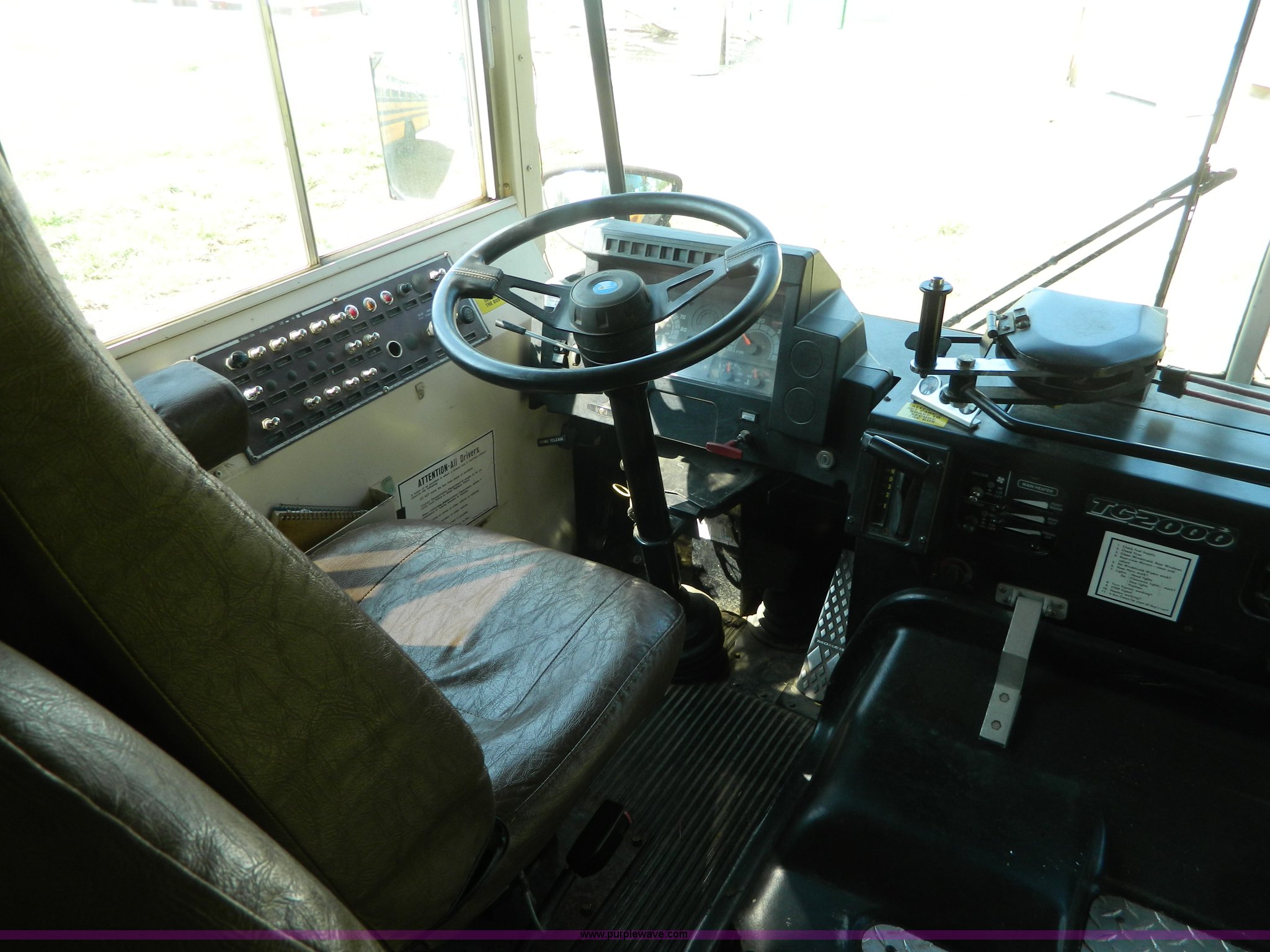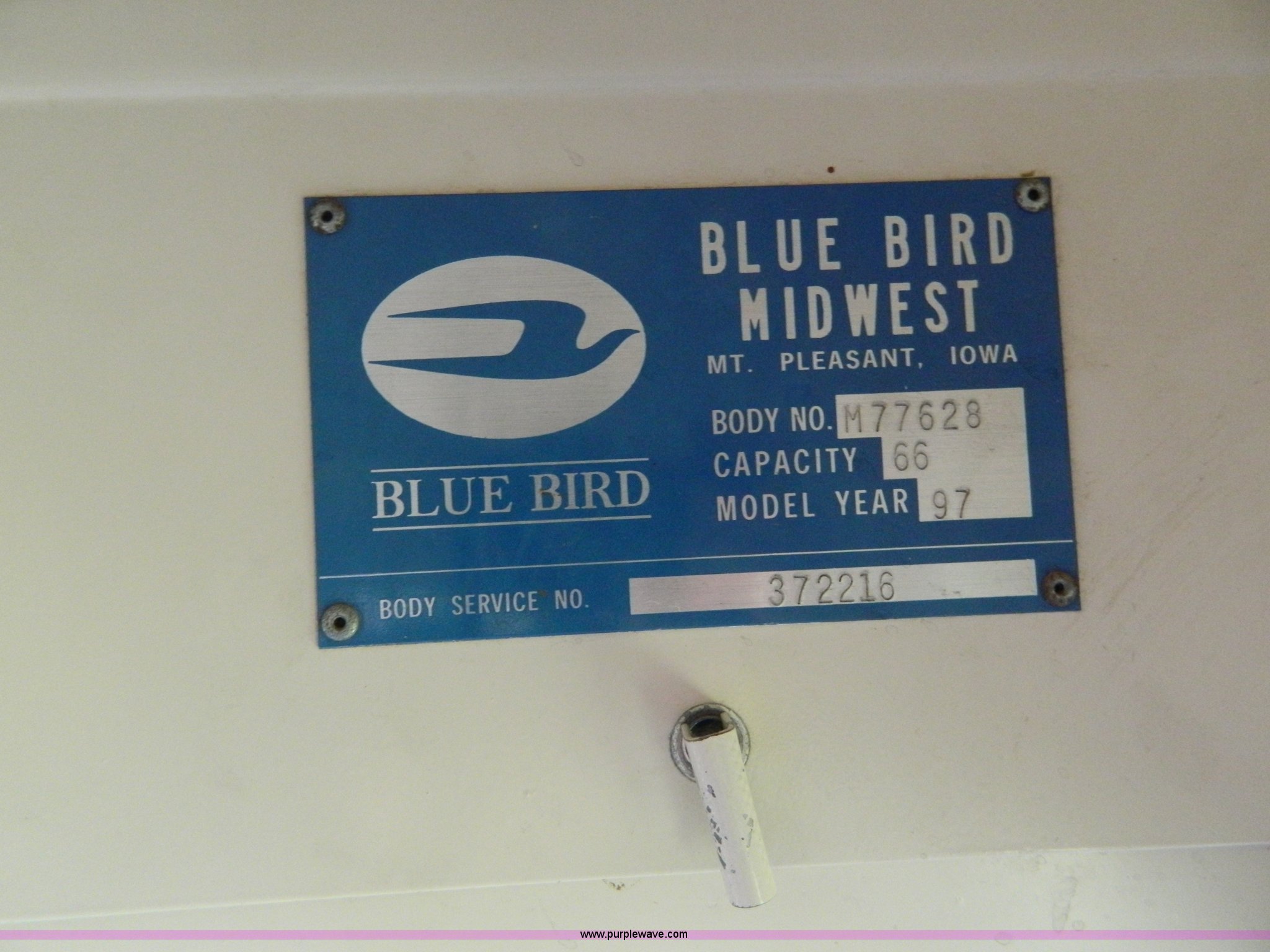 Purple Wave is selling a used Bus in Kansas. This item is a 1997 Blue Bird TC2000 bus with the following: 152,233 miles on odometer, Cummins 5.9L L6 diesel engine, Automatic transmission, 66 passenger capacity, Body No. M77628, 4:44 gear ratio, 10R22.5 tires, GVWR 27,800 lbs