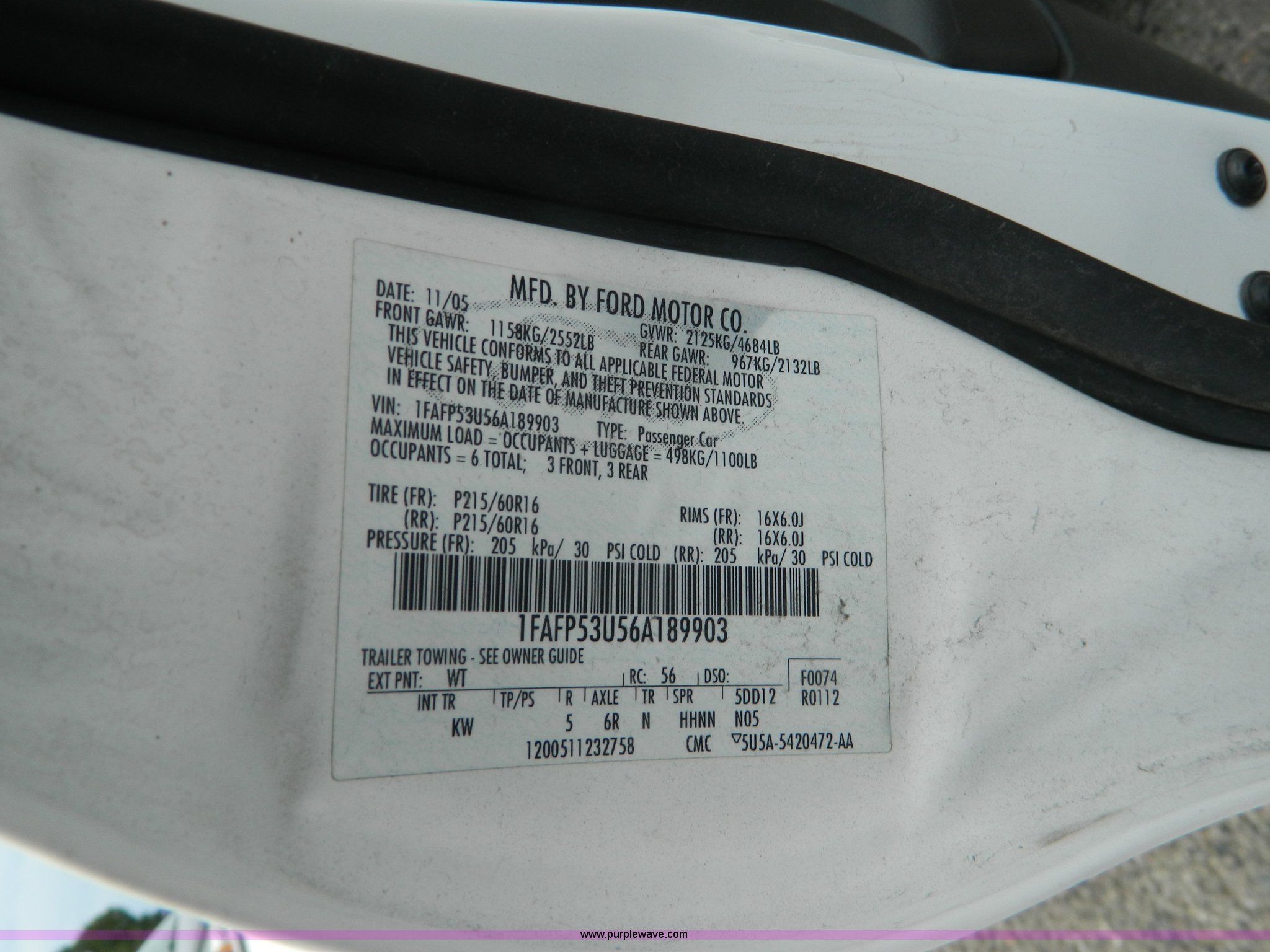 Purple Wave is selling a used Passenger Vehicle in Kansas. This item is a 2006 Ford Taurus SE with the following: 222,186 miles on odometer, 3.0L V6 OHV 12V gas engine, Automatic transmission, AC and heat, Tilt, Cruise, AM/FM/CD, Power windows, locks, and seats, Manual locks, Cloth interior, 215/60R16 tires