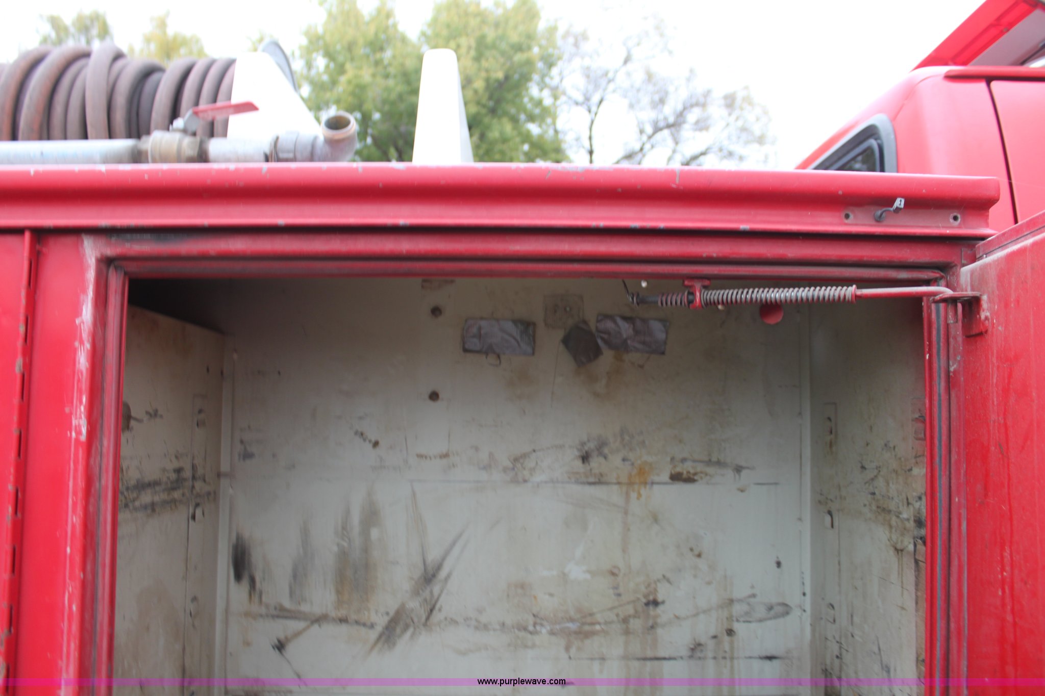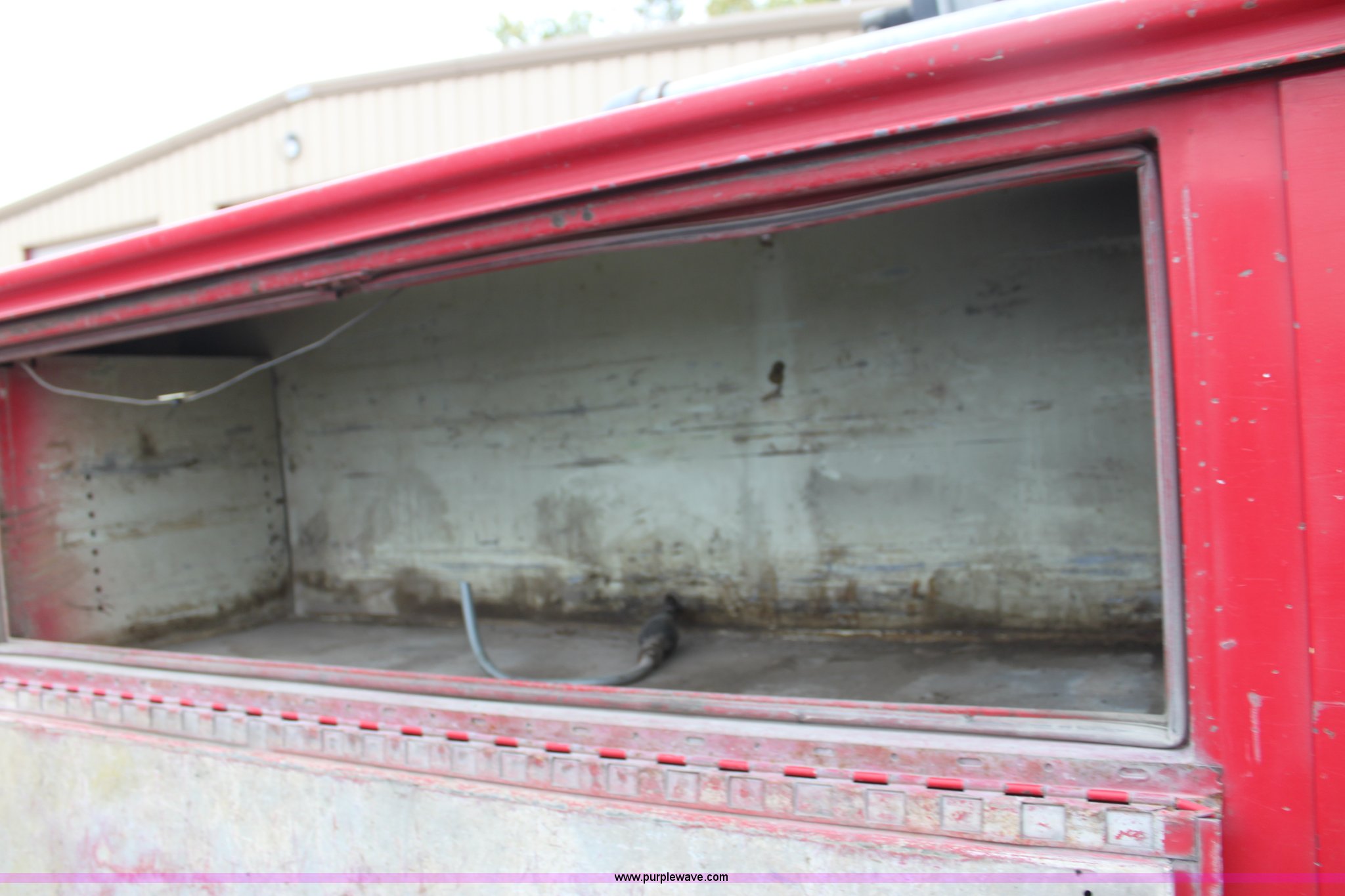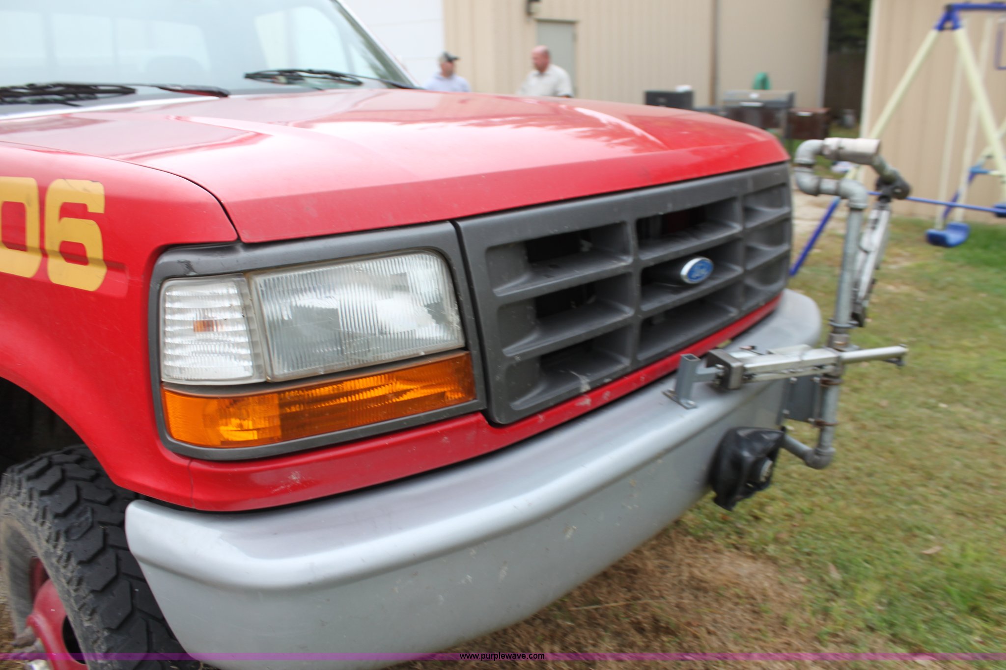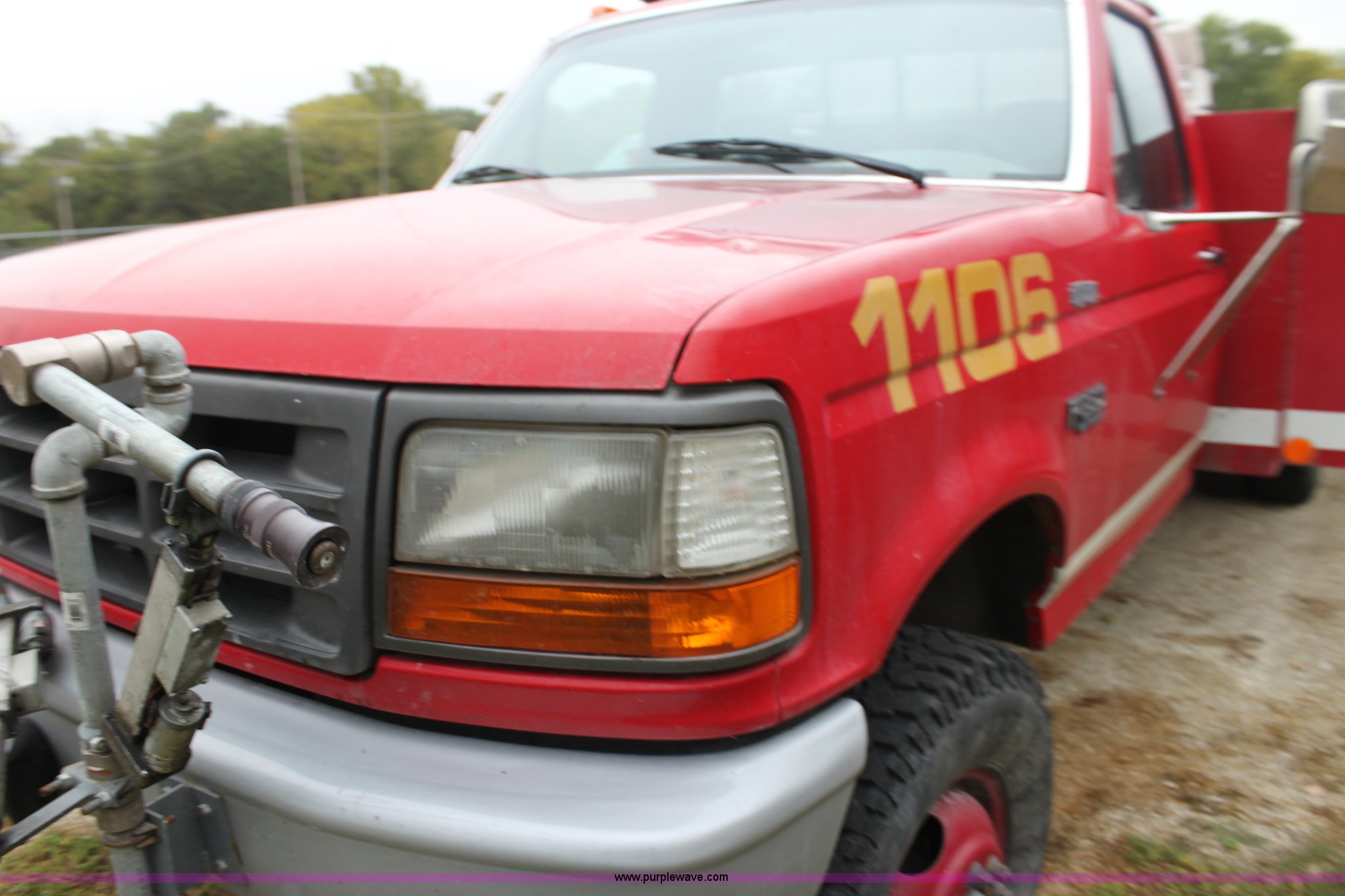 1994 Ford F350 utility truck. 134,824 miles on odometer, 7.3L V8 OHV 16V diesel engine, Automatic transmission, Four wheel drive, Heat, AM/FM, Manual windows and locks, Knapheide 11' utility bed, PTO, 235/85R16 tires, Interior/exterior cosmetic damage, Hail damage, Front nozzle, skid unit, lights, and sirens not included. 1FDKF38M8RNB04313. Dickinson County Fire Dist. #1. Enterprise, KS 67441