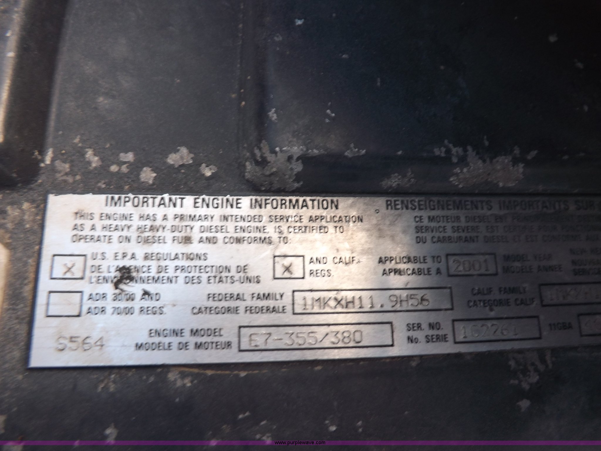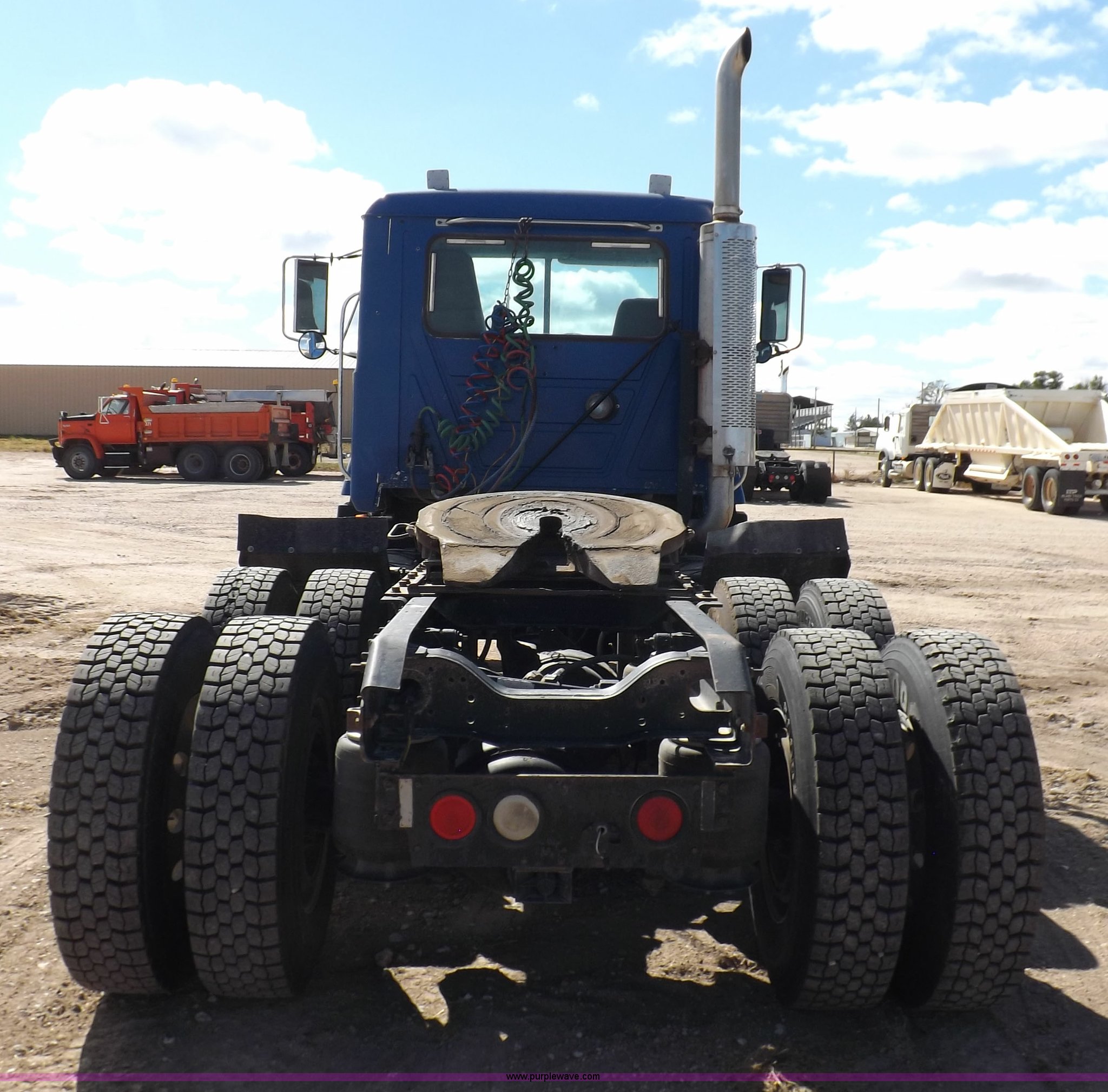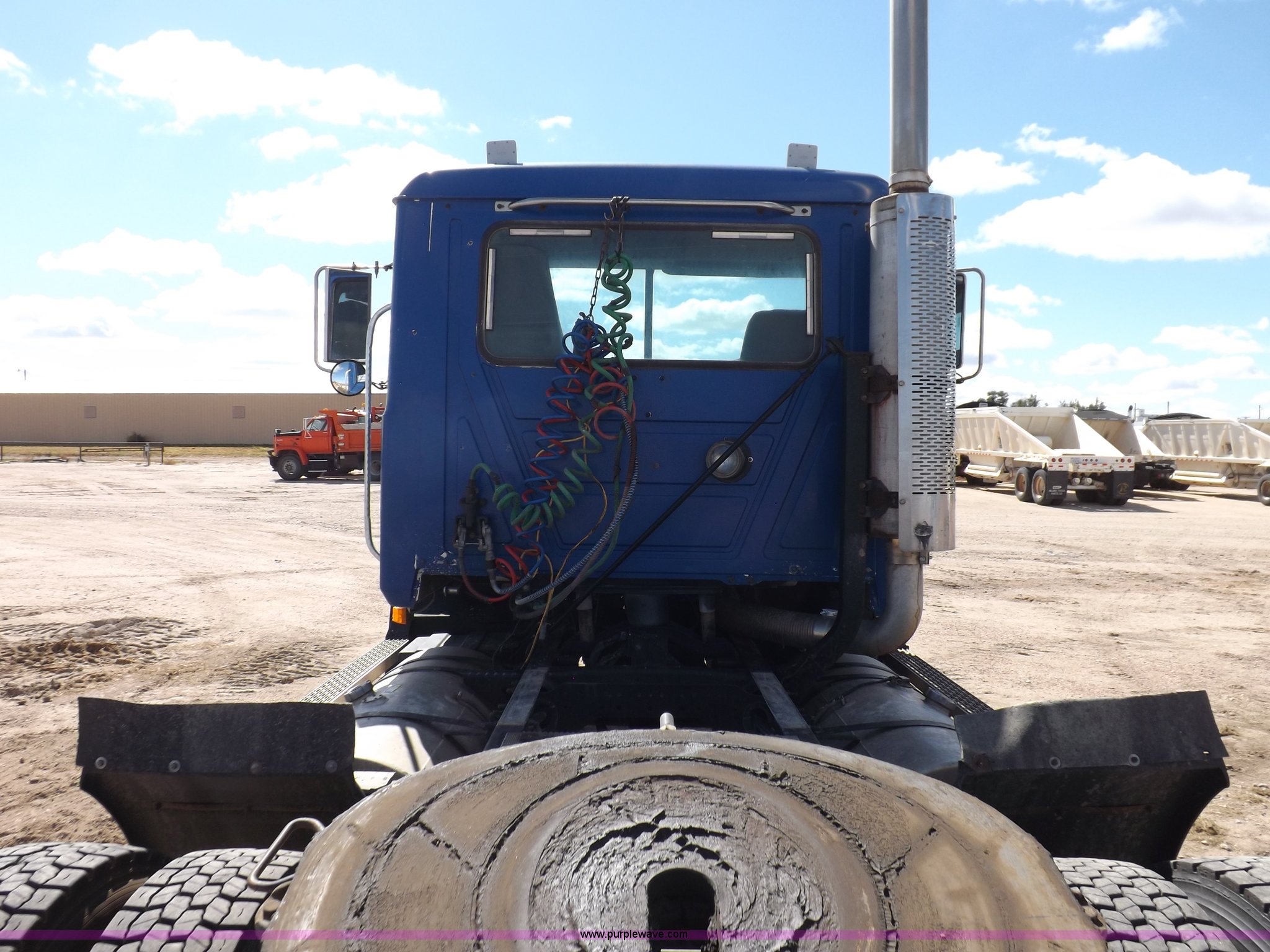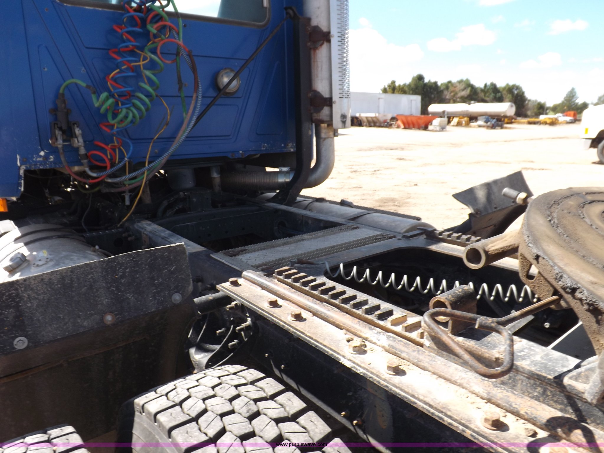 Purple Wave is selling a used Truck Tractor in Kansas. This item is a 2001 Mack CH613 semi truck with the following: 291,584 miles on odometer, Mack E7 12.0L L6 diesel engine, 355/380 HP, Eaton Fuller 10 speed manual transmission, Twin screw, AC and heat, Cruise, AM/FM/cassette, Passenger daylight door, Air suspension seat, Power and heated mirrors, Air ride cab, Block heater, Air slide fifth wheel, Dual 110 gallon fuel tanks, Single rear exhaust brakes, Poly quarter fenders, Air suspension, Air brakes, Brake controller, Jake brake, Aluminum wheels, 160" wheelbase, 295/75R22.5 tires, GVWR 48,000 lbs, FAWR 12,000 lbs, IAWR 18,000 lbs, RAWR 18,000 lbs, Interior/exterior cosmetic damage, Chipped windshield, Unit# 365