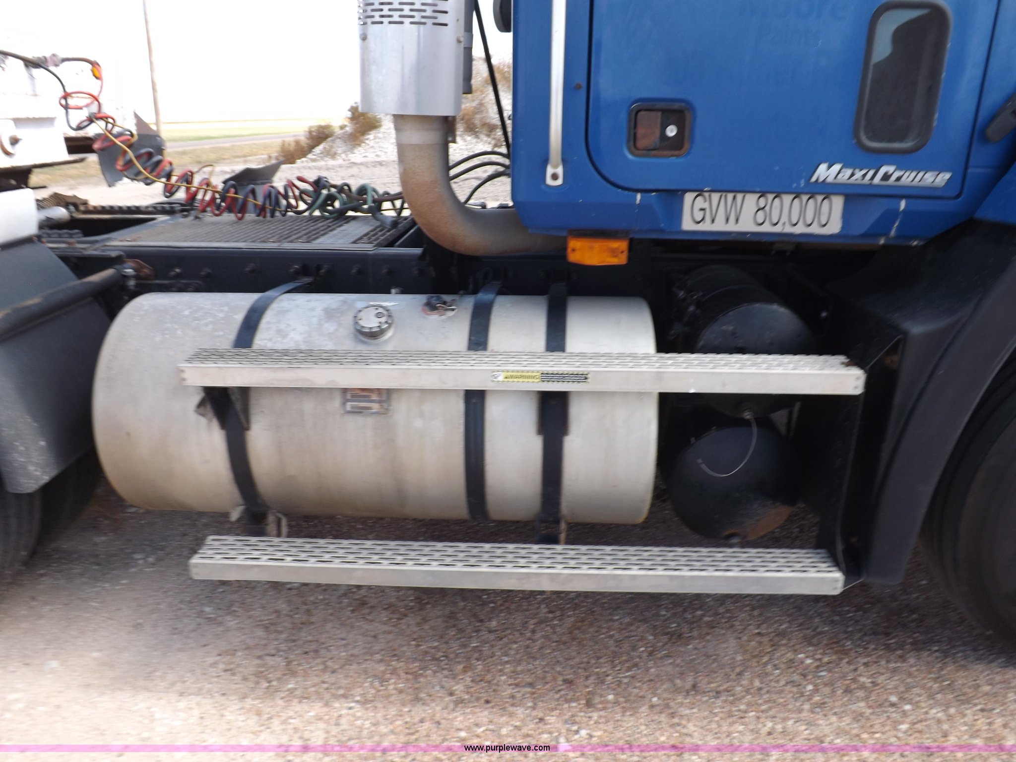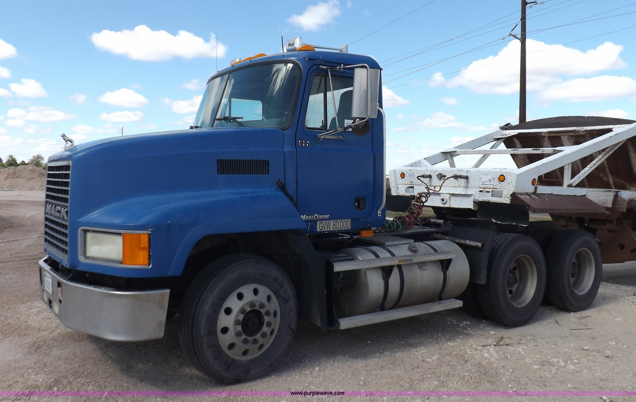 Purple Wave is selling a used Truck Tractor in Kansas. This item is a 2001 Mack CH613 semi truck with the following: 352,516 miles on odometer, Mack E7 12.0L L6 diesel engine, 355/380 HP, Eaton Fuller 10 speed manual transmission, Twin screw, AC and heat, Cruise, AM/FM/cassette, Passenger daylight door, Air suspension seat, Power and heated mirrors, Air ride cab, Chrome bumper, Block heater, Air slide fifth wheel, Dual 110 gallon fuel tanks, Single rear exhaust stacks, Aluminum deck plate, Poly quarter fenders, Dump valves, Air suspension, Air brakes, Brake controller, Jake brake, Aluminum wheels, 162" wheelbase, 11R22.5 tires, GVWR 48,000 lbs, FAWR 12,000 lbs, IAWR 18,000 lbs, RAWR 18,000 lbs, Interior/exterior cosmetic damage, Chipped windshield, Transmission issues, Lost performance in hi range, low power, Speedometer inoperable, Unit# 366