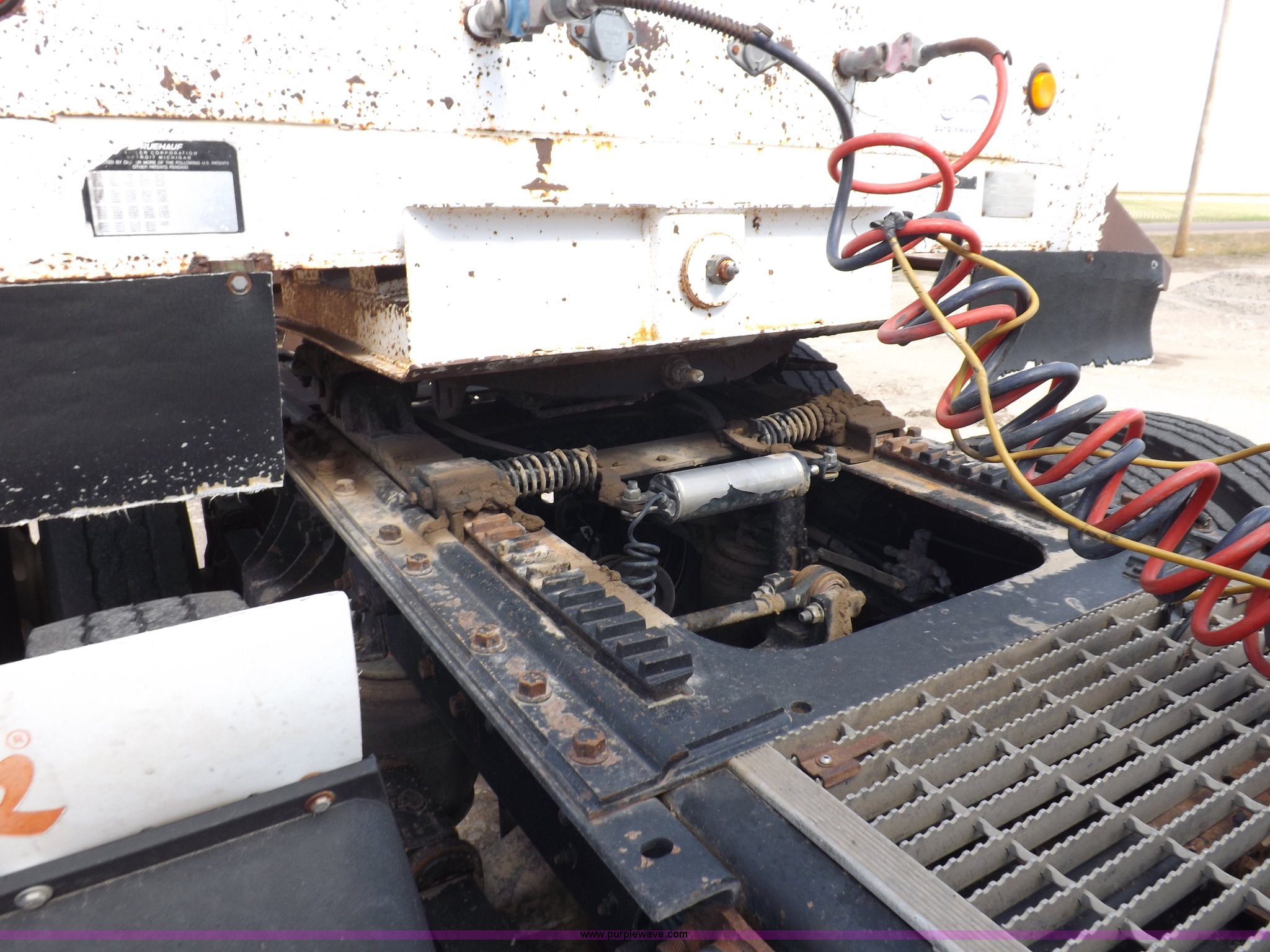 2001 Mack CH613 semi truck. 352,516 miles on odometer, Mack E7 12.0L L6 diesel engine 355/380 HP, Eaton Fuller 10 speed manual transmission, Twin screw, AC and heat, Cruise, AM/FM/cassette, Passenger daylight door, Air suspension seat, Power and heated mirrors, Air ride cab, Chrome bumper, Block heater, Air slide fifth wheel, Dual 110 gallon fuel tanks, Single rear exhaust stacks, Aluminum deck plate, Poly quarter fenders, Dump valves, Air suspension, Air brakes, Brake controller, Jake brake, Aluminum wheels, 162" wheelbase, 11R22.5 tires, GVWR 48,000 lbs, FAWR 12,000 lbs, IAWR 18,000 lbs, RAWR 18,000 lbs, Interior/exterior cosmetic damage, Chipped windshield, Transmission issues Lost performance in hi range, low power, Speedometer inoperable, Unit# 366. View repairs. 1M1AA13Y41W143010. Scott County. 481 E Rd 160. Scott City, KS 67871