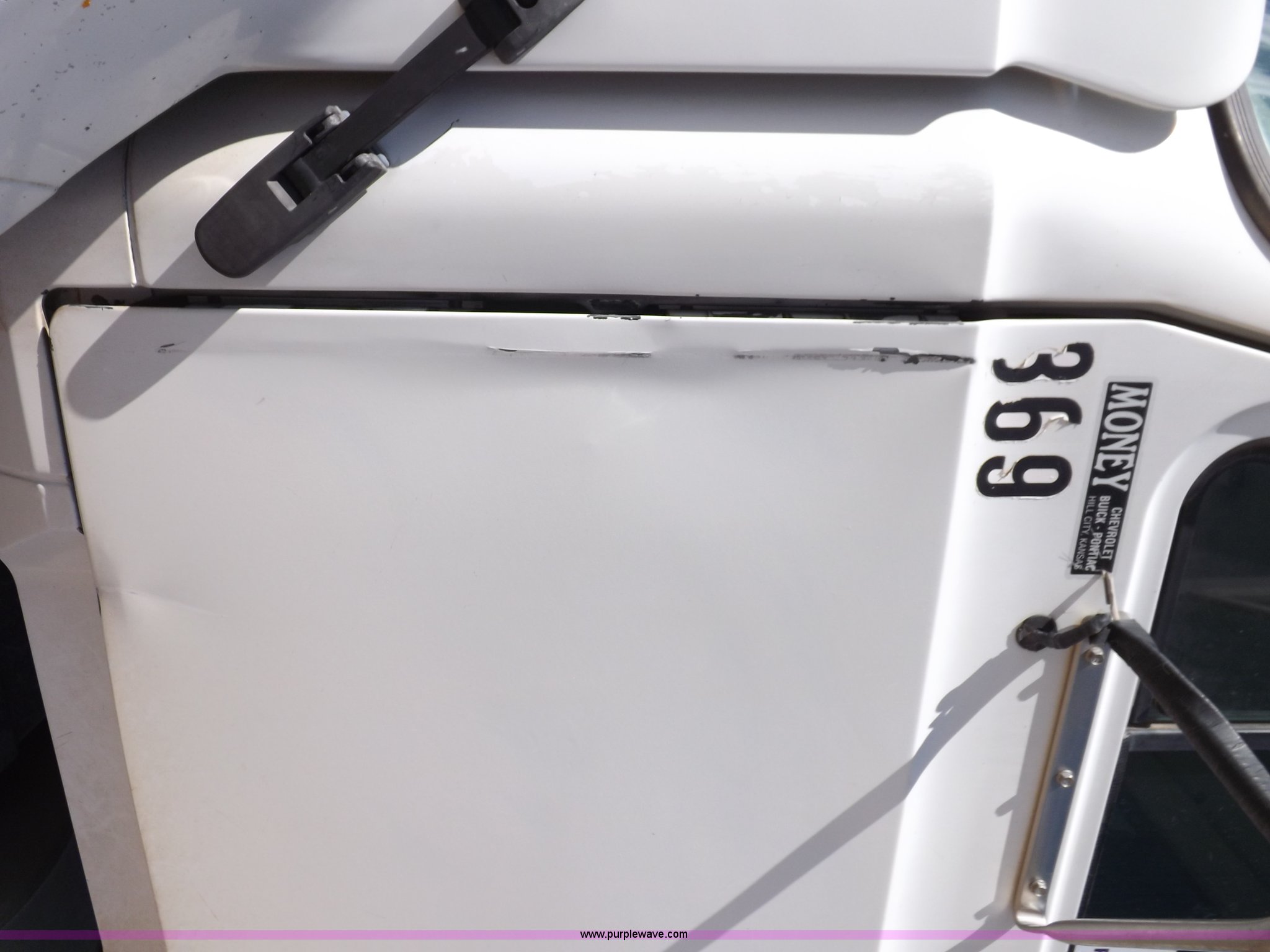 Purple Wave is selling a used Truck Tractor in Kansas. This item is a 2001 Mack CH613 semi truck with the following: 263,015 miles on odometer, Mack E7 12.0L L6 diesel engine, 400 HP, Eaton Fuller nine speed manual transmission, Twin screw, AC and heat, Tilt, Cruise, AM/FM/cassette, Passenger daylight door, Air suspension seat, Heated mirrors, Air ride cab, Chrome bumper, Block heater, Air slide fifth wheel, Dual 85 gallon fuel tanks, Single rear exhaust stack, Aluminum deck plate, Poly quarter fenders, Dump valves, Air suspension, Air brakes, Brake controller, Jake brake, 156" wheelbase, 11R22.5 tires, GVWR 50,000 lbs, FAWR 12,000 lbs, IAWR 19,000 lbs, RAWR 19,000 lbs, Interior/exterior cosmetic damage, Chipped/cracked windshield, Seat torn, Unit# 369