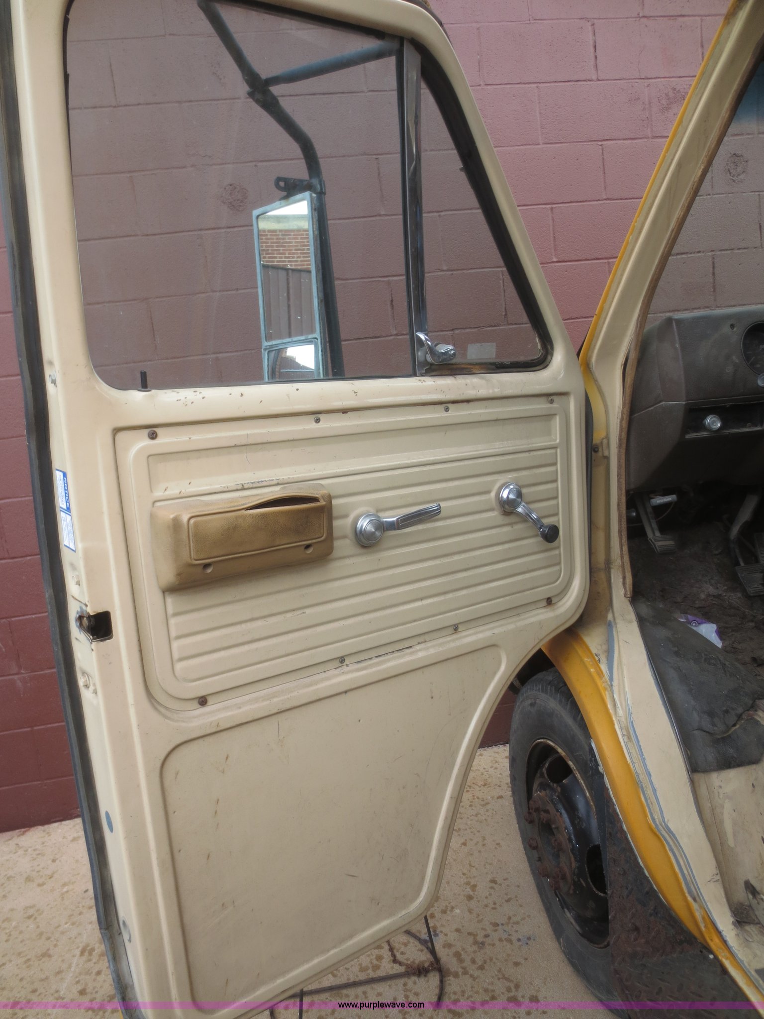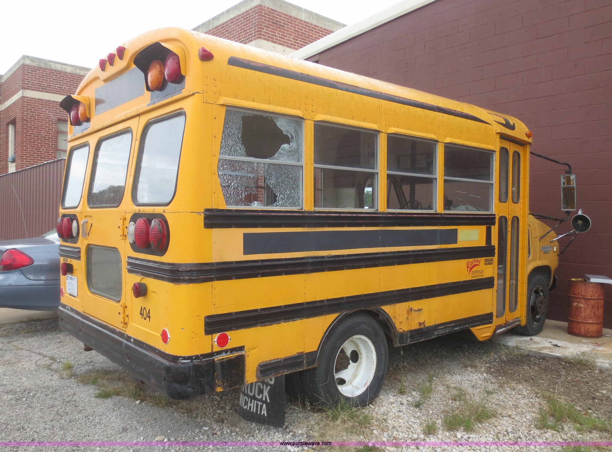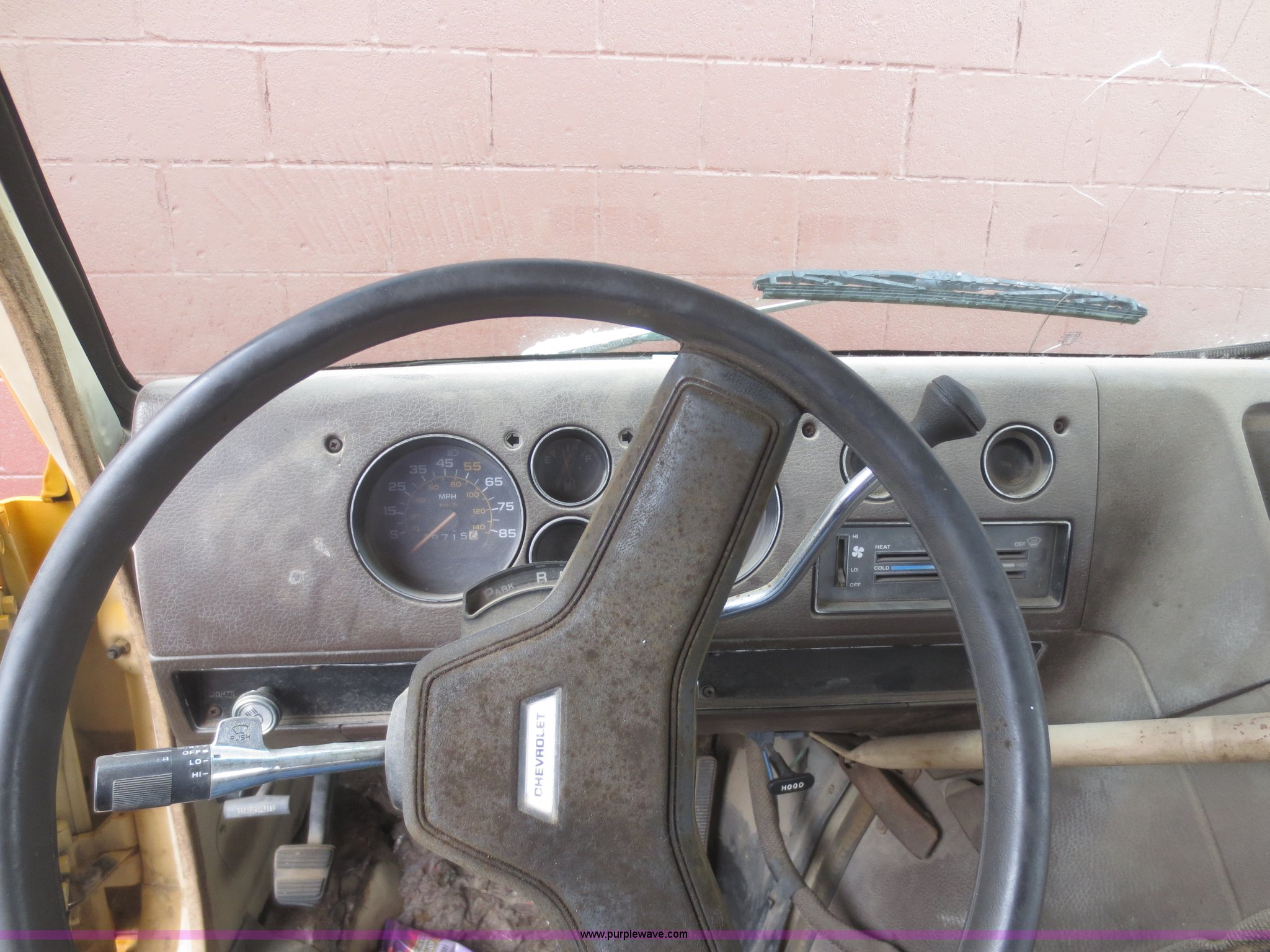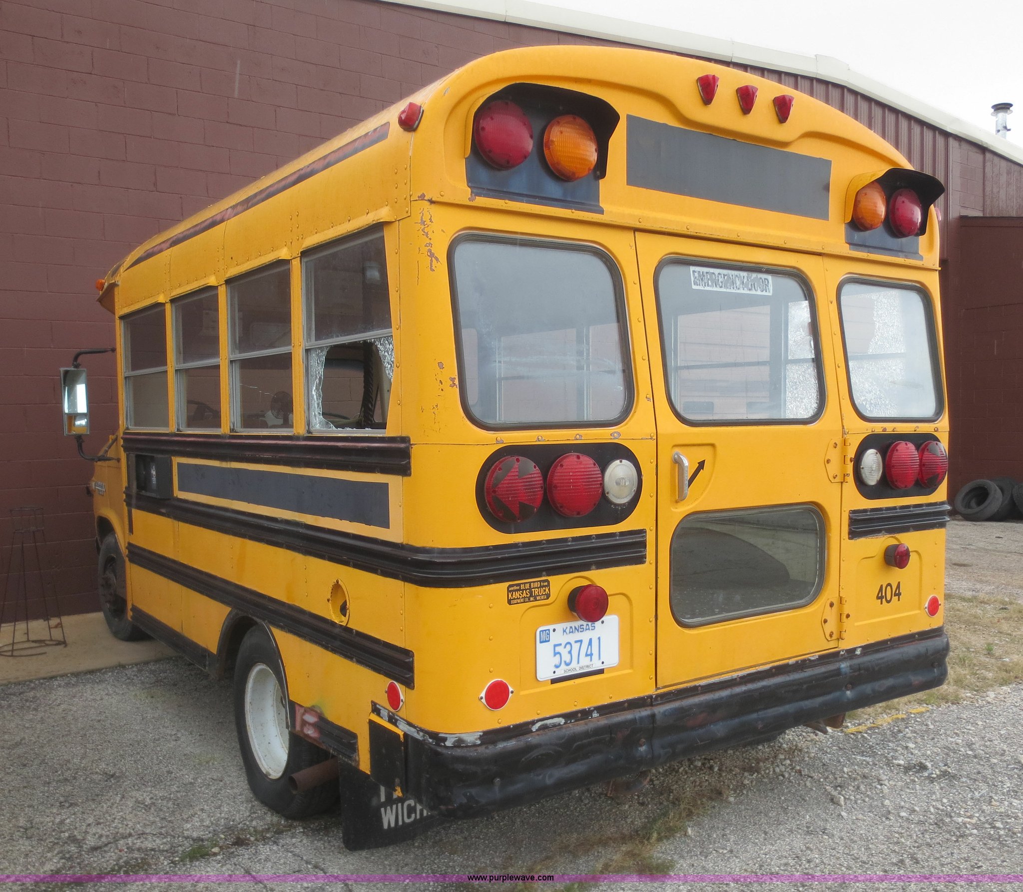 Purple Wave is selling a used Bus in Kansas. This item is a 1984 Chevrolet G30 school bus with the following: 39,715 miles on odometer, 5.7L V8 OHV 16V gas engine, Automatic transmission, Manual windows and locks, 21 passenger capacity, 8.75R16.5LT front tires, Tires need replaced, LT215/85R16 tires, GVW 10,000 lbs, No rear seats, Broken glass, Cracked windshield