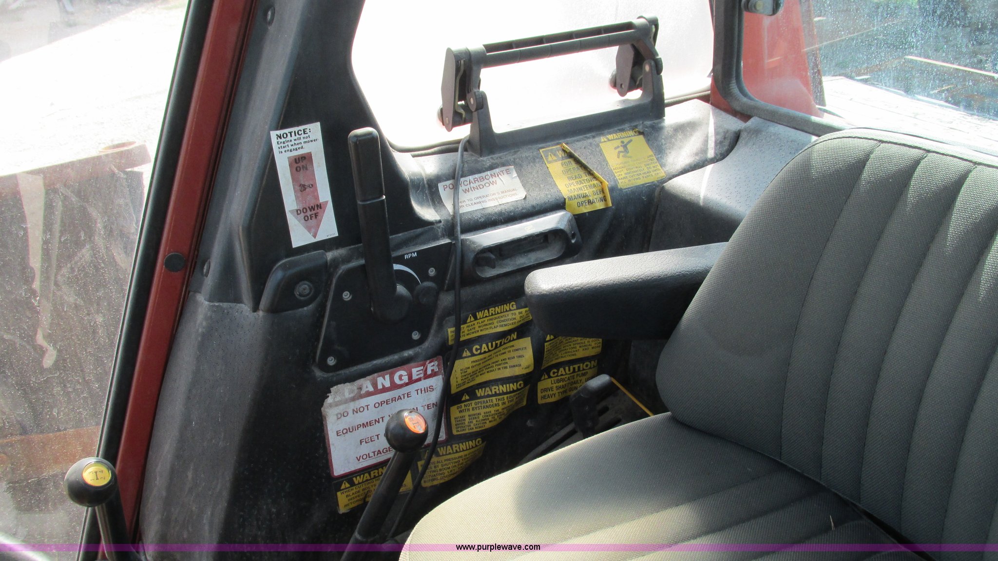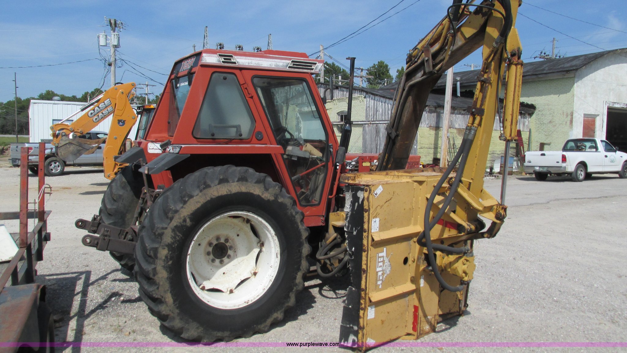 Purple Wave is selling a used Tractor in Missouri. This item is a Hesston 80-90 Tiger Special tractor with the following: 3,142 hours on meter, Fiat four cylinder diesel engine, 24 speed transmission, Enclosed cab, AC and heat, Cloth suspension seat, Four lever boom controls, Tiger boom mower, 54"W, 540/1000 PTO, Three point, Rear wheel weights, 7.50-16 front tires, 18.4-30 rear tires, Interior/exterior cosmetic damage, Boom to stick connection broken, Dead battery, Rust, Unknown operating condition
