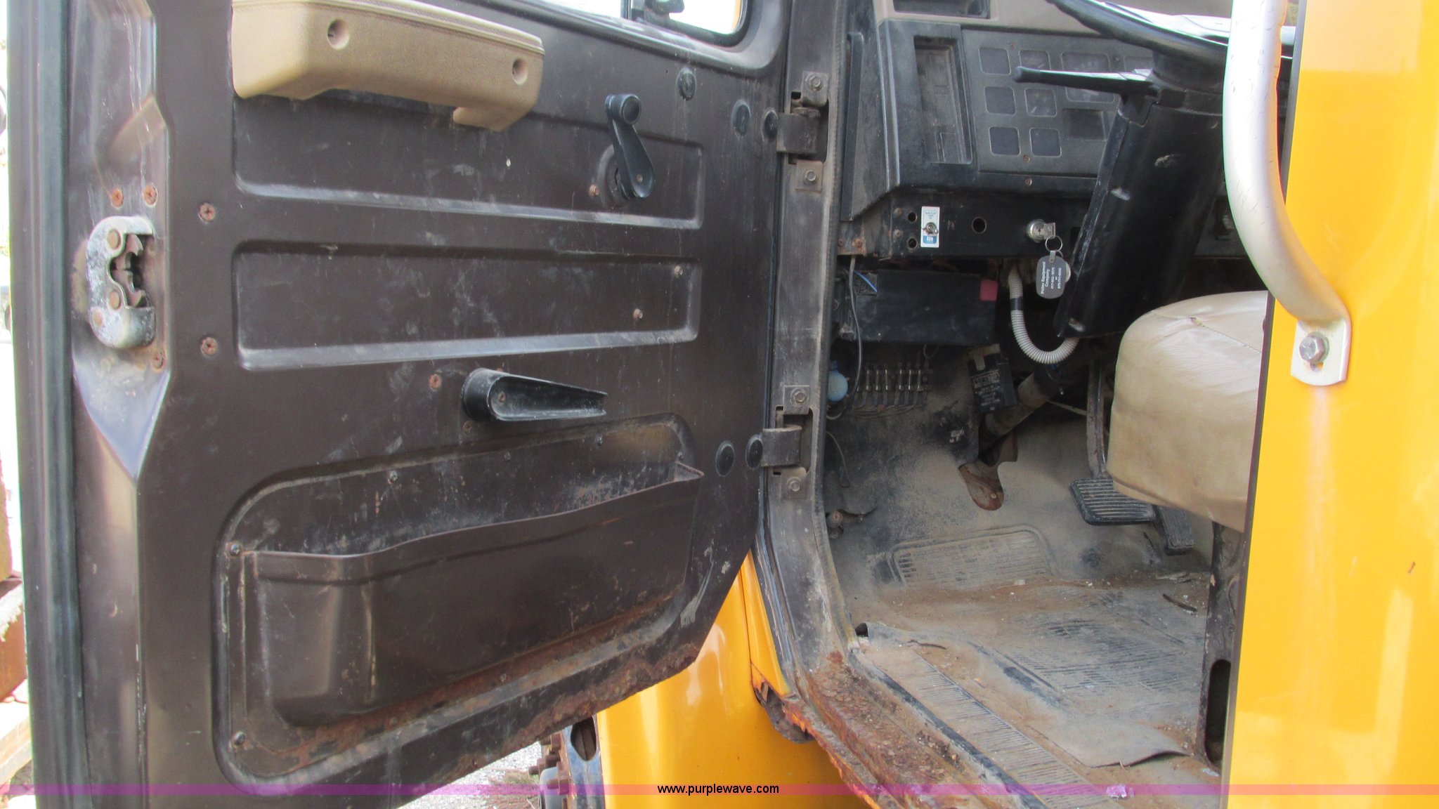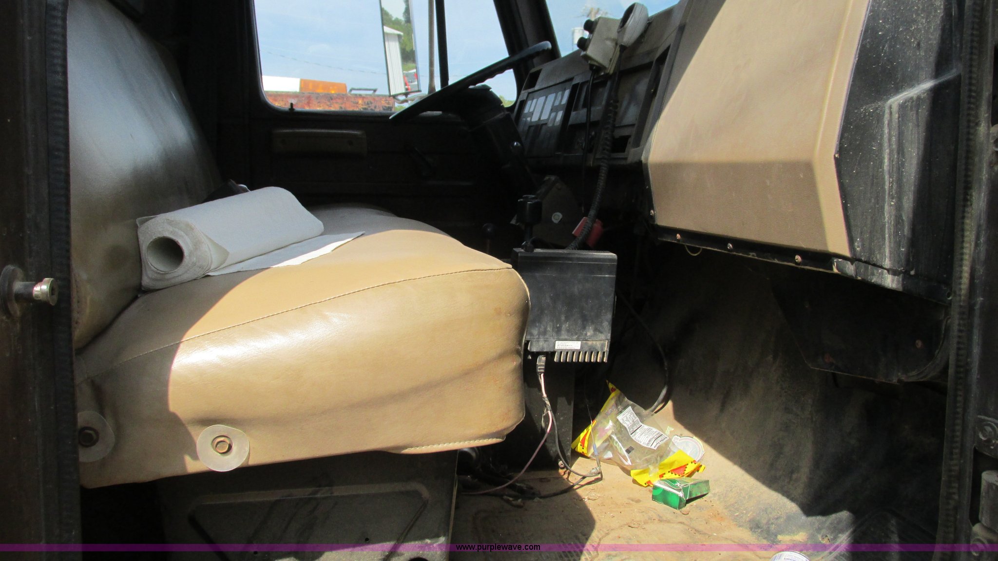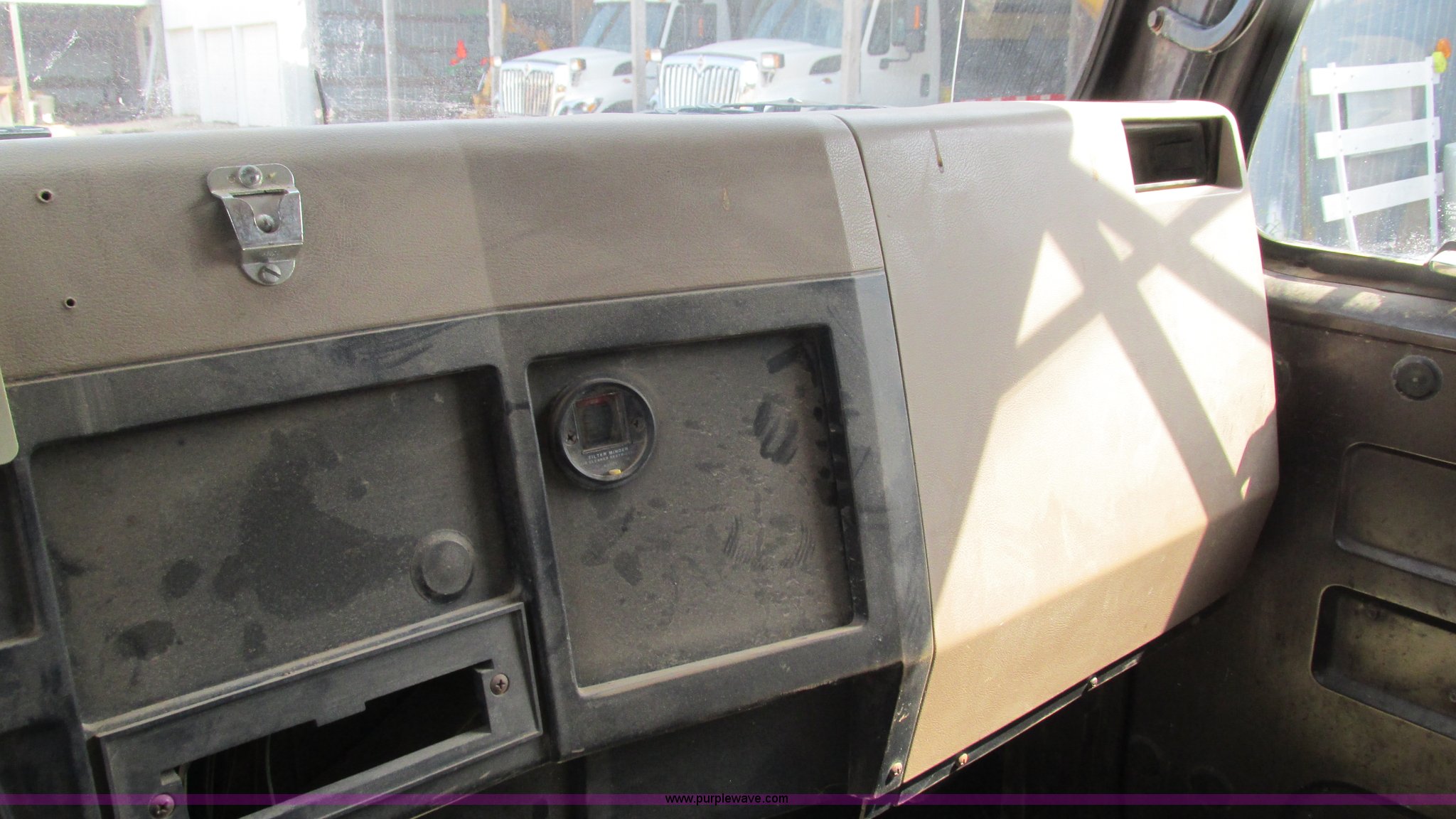 Purple Wave is selling a used Construction Dump Truck in Missouri. This item is a 1990 International 4600 dump truck with the following: International T444 7.3L V8 diesel engine, Automatic transmission, Heat, Heil SLSYD10 dump bed, 9'L x 8'W x 28"H, Flink PF915 snow plow mount, Manual end gate, Single ram hoist, Serial 10226, Block heater, 50 gallon fuel tank, PTO, Spring suspension, Hydraulic brakes, 152" wheelbase, 10R20 tires, Interior/exterior cosmetic damage, Dead battery, Rust, Paint peeling, Cracked hood, Rust, Operational when removed from service six months ago