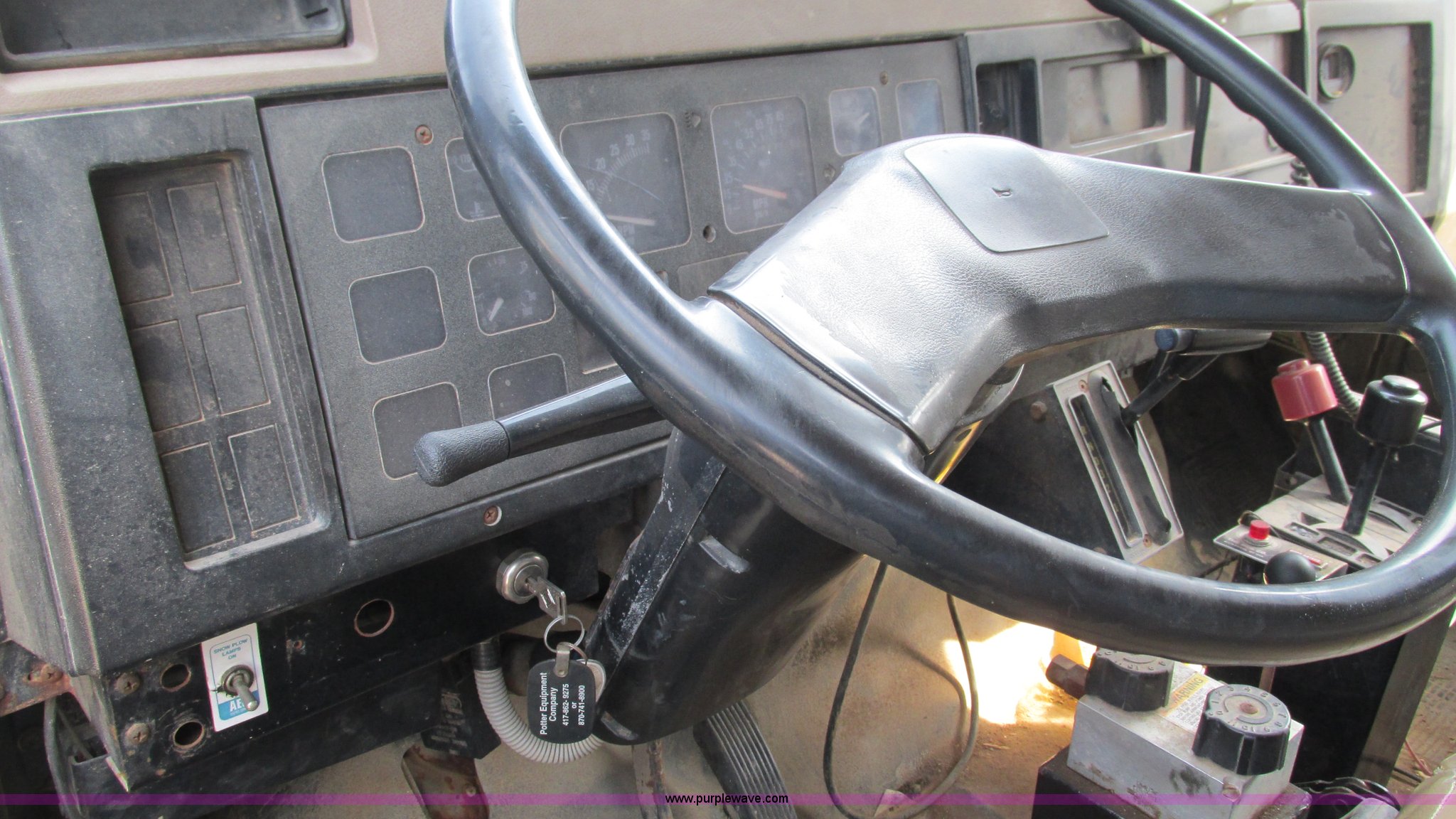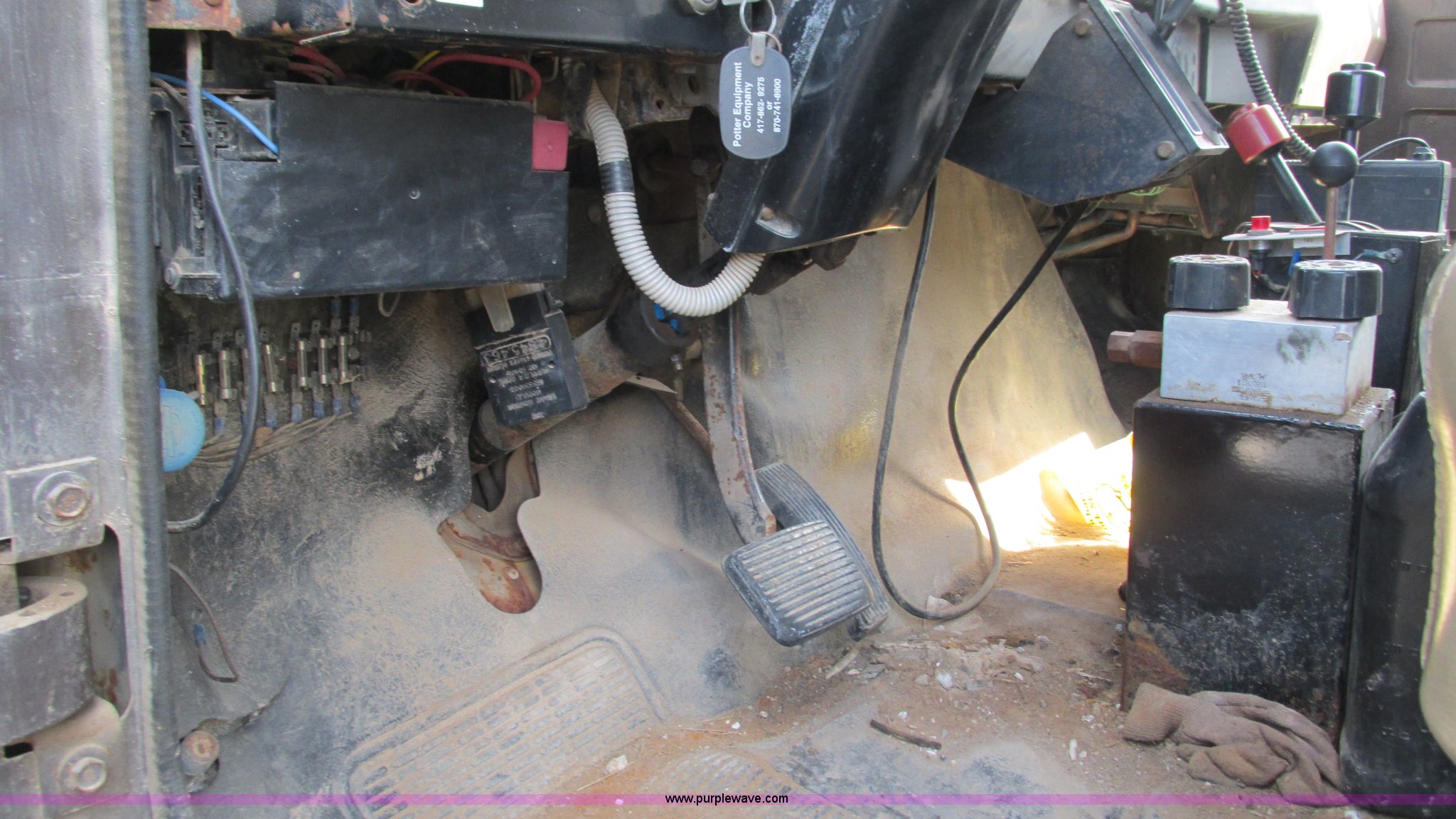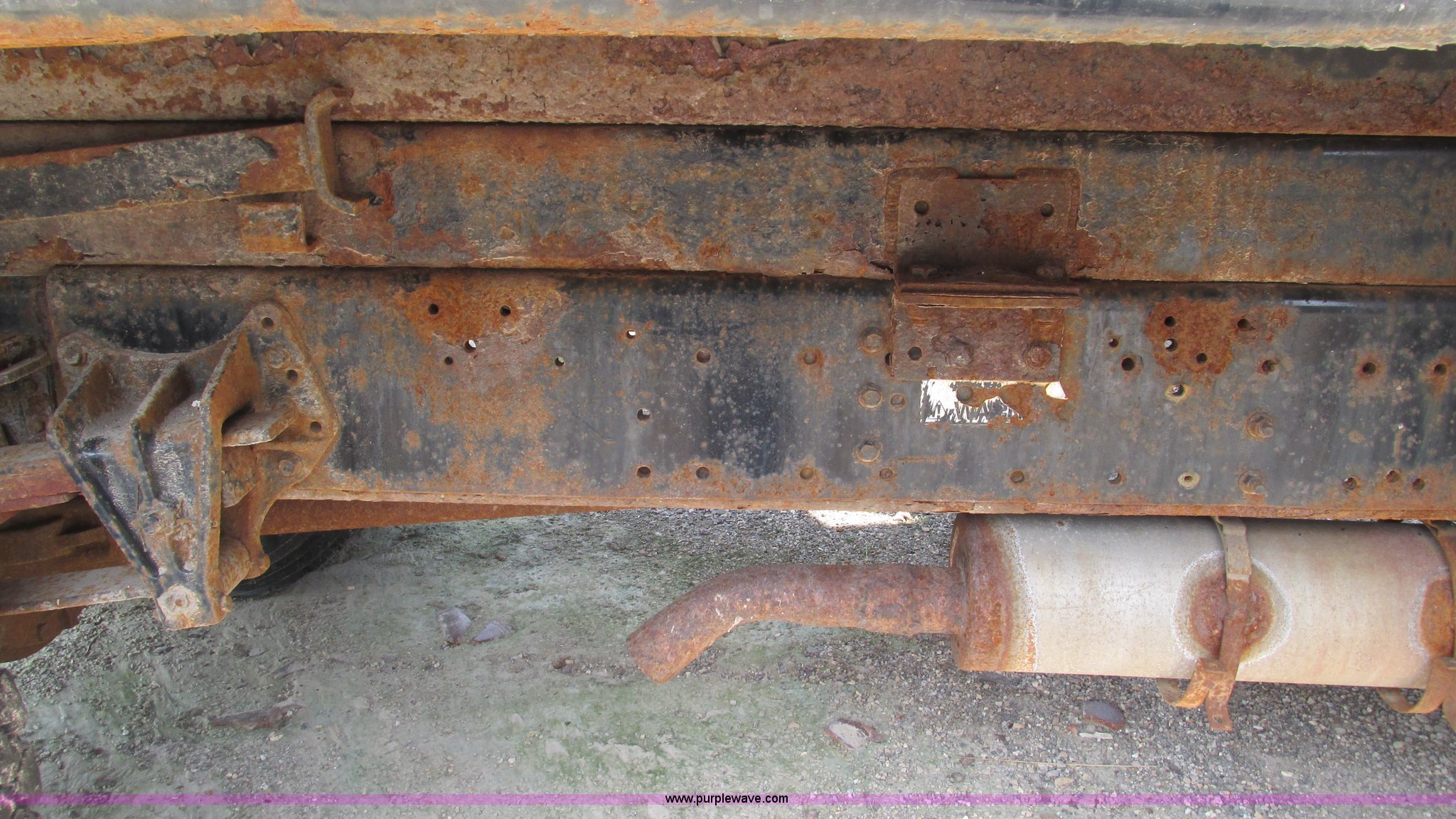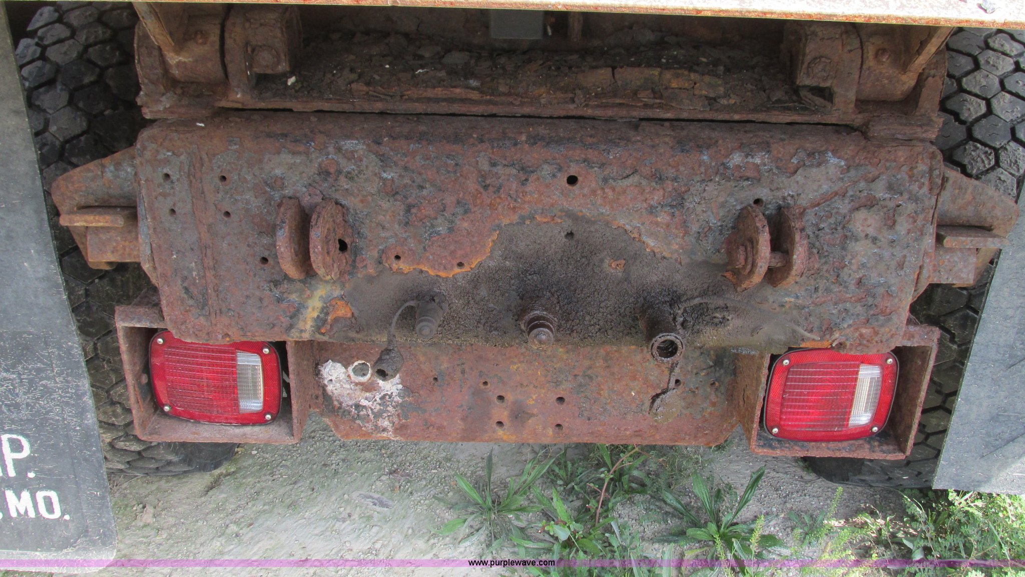 Purple Wave is selling a used Construction Dump Truck in Missouri. This item is a 1990 International 4600 dump truck with the following: International T444 7.3L V8 diesel engine, Automatic transmission, Heat, Heil SLSYD10 dump bed, 9'L x 8'W x 28"H, Flink PF915 snow plow mount, Manual end gate, Single ram hoist, Serial 10226, Block heater, 50 gallon fuel tank, PTO, Spring suspension, Hydraulic brakes, 152" wheelbase, 10R20 tires, Interior/exterior cosmetic damage, Dead battery, Rust, Paint peeling, Cracked hood, Rust, Operational when removed from service six months ago