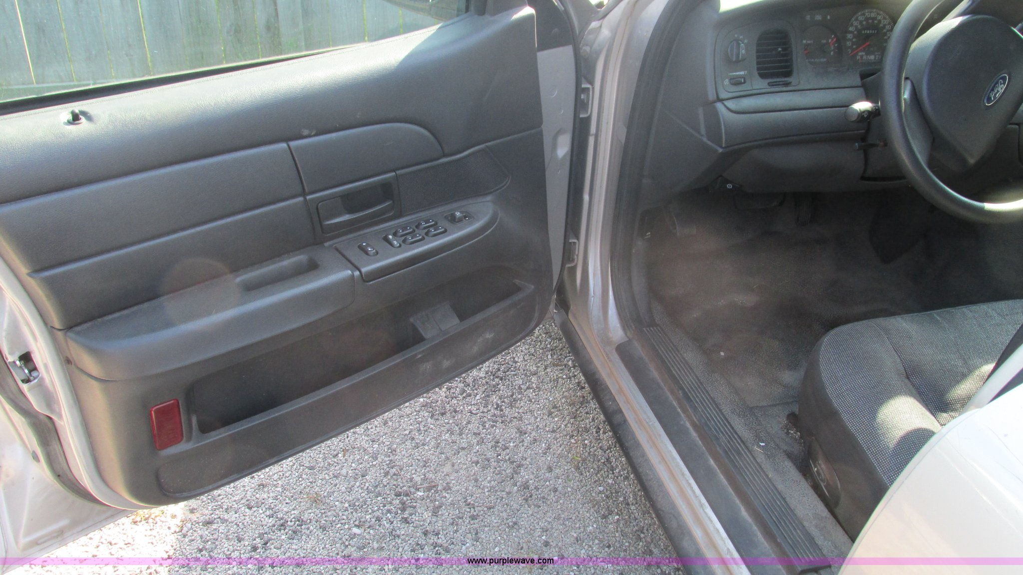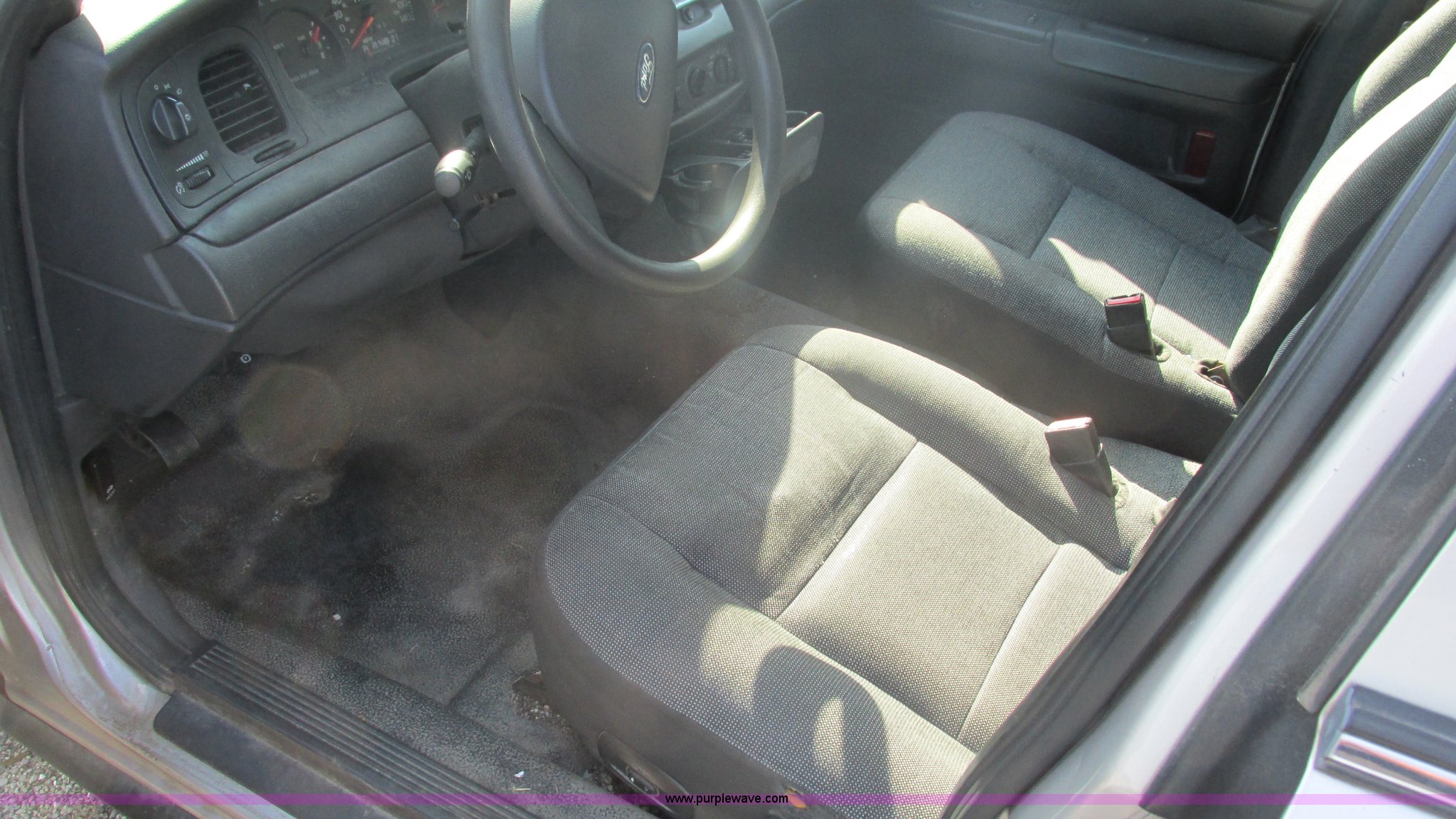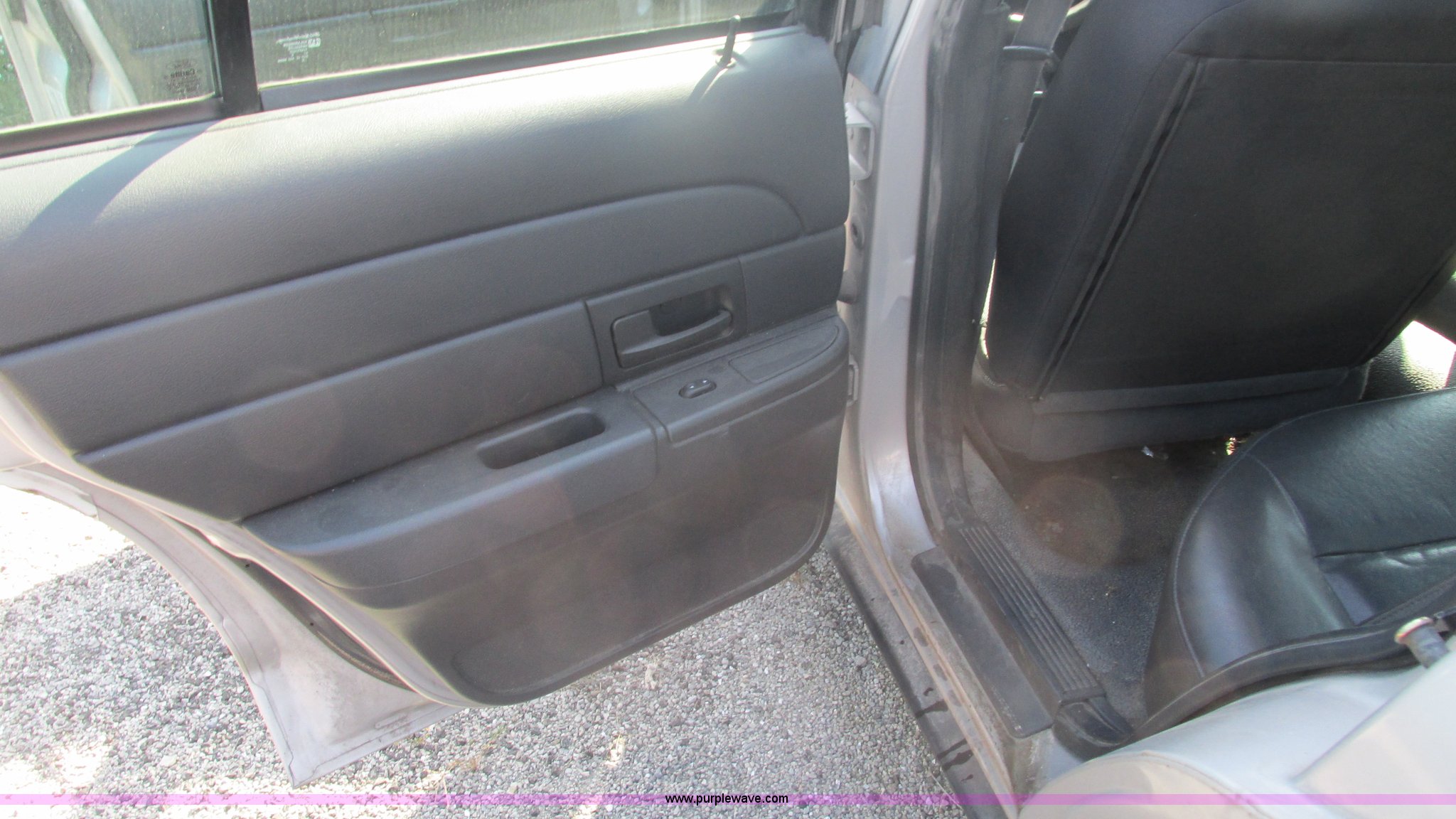 Purple Wave is selling a used Passenger Vehicle in Missouri. This item is a 2005 Ford Crown Victoria Police Interceptor with the following: 173,117 miles on odometer, 4.6L V8 SOHC 16V gas engine, Automatic transmission, AC and heat, Tilt, AM/FM, Power windows, locks, and mirrors, Cloth front interior, Vinyl rear interior, Spotlight, P225/60R16 tires, Interior/exterior cosmetic damage, Seat torn, Paint peeling, Dead battery, Unknown operating condition