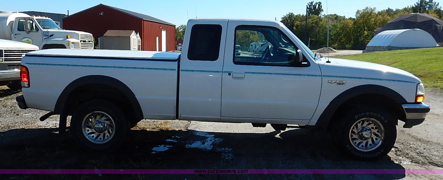 Purple Wave is selling a used Compact Pickup or Van in Kansas. This item is a 1998 Ford Ranger XLT SuperCab pickup truck with the following: 105,198 miles on odometer, 4.0L V6 OHV 12V gas engine, Automatic transmission, Four wheel drive, AC and heat, AM/FM/cassette, Manual windows and locks, Cloth interior, Astro EuroLid II tonneau cover, Front tow hooks, 235/75R15 tires, Interior/exterior cosmetic damage, Check engine light on, Rust, Headliner needs repaired, Maintenance records available