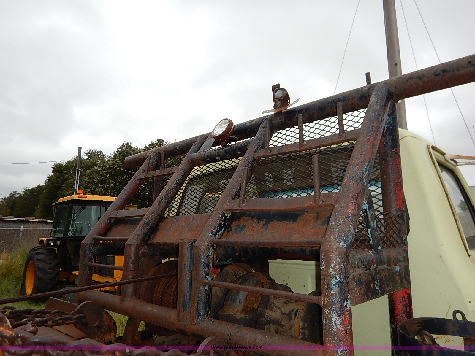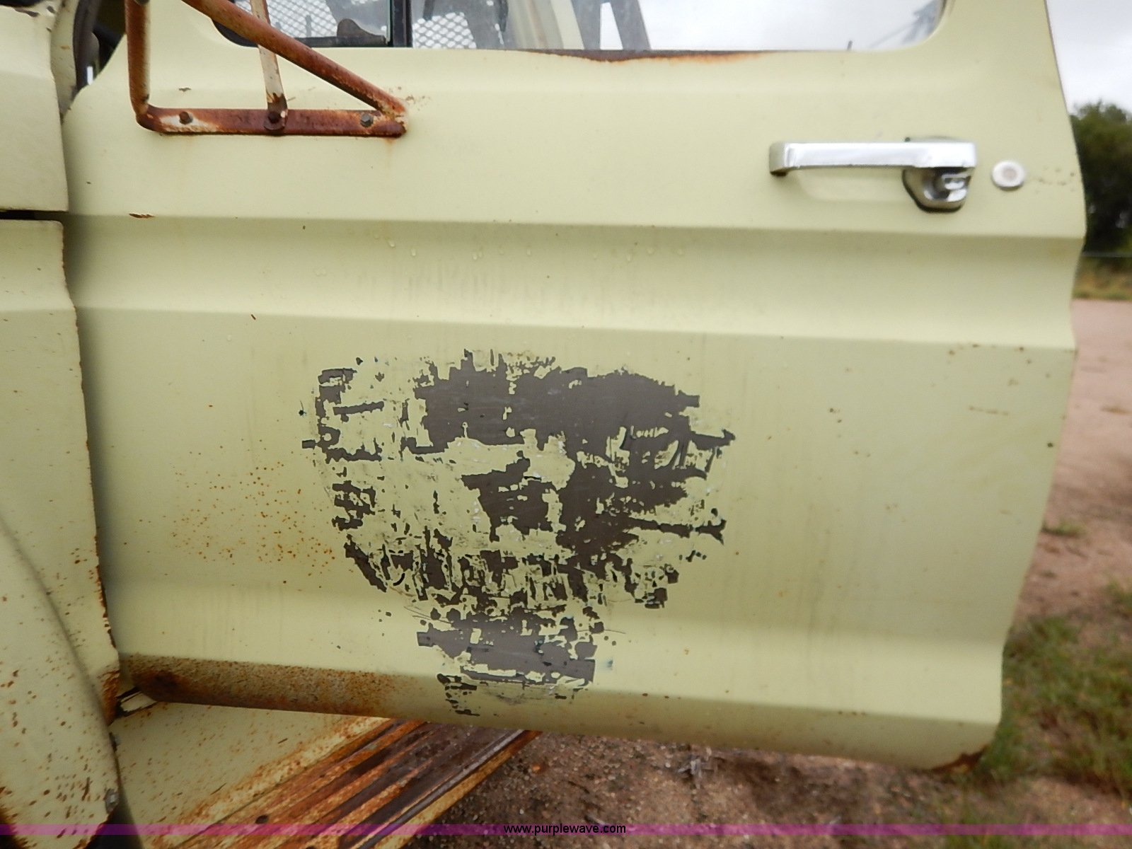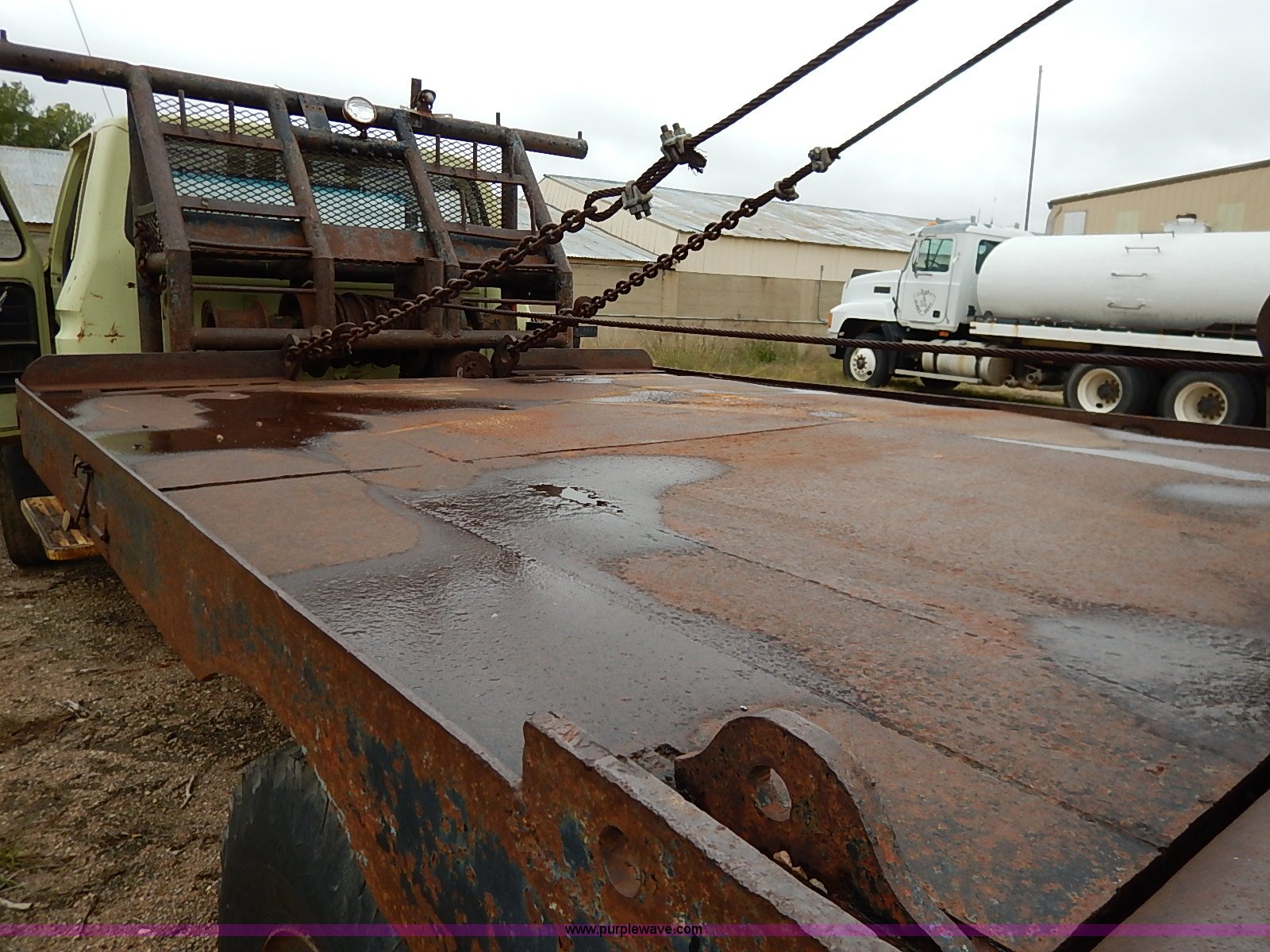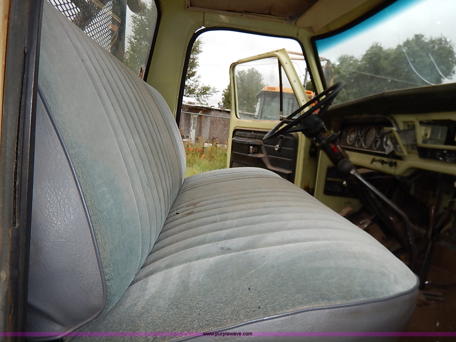 Purple Wave is selling a used Flat Bed Truck in Kansas. This item is a 1975 Ford F600 flatbed truck with the following: 33,696 miles on odometer, Ford eight cylinder gas engine, Four speed manual transmission, Two speed rear end, Heat, Inoperable, Manual windows and locks, Cloth interior, Block heater, Rear work lights, Rear pin hitch, 10' x 8' steel flatbed, Tulsa winch, Model 23L, 5,000 lbs capacity, Unknown cable length, Serial 136550, Front tow hooks, 9.00-20 tires, GVWR 20,000 lbs, Interior/exterior cosmetic damage, Brake inoperable, Rust, Dents, Scratches, Cracked windshield and dash, Headliner needs replaced, Unit# 302