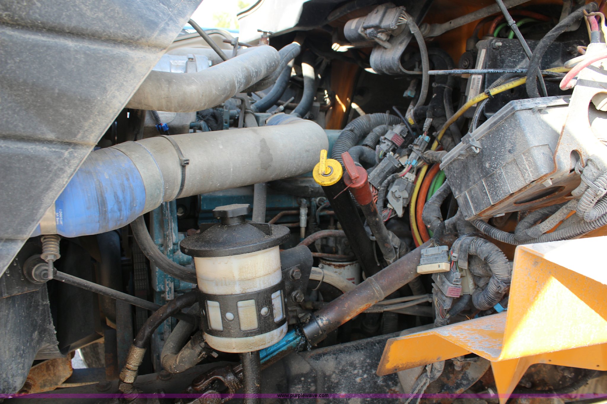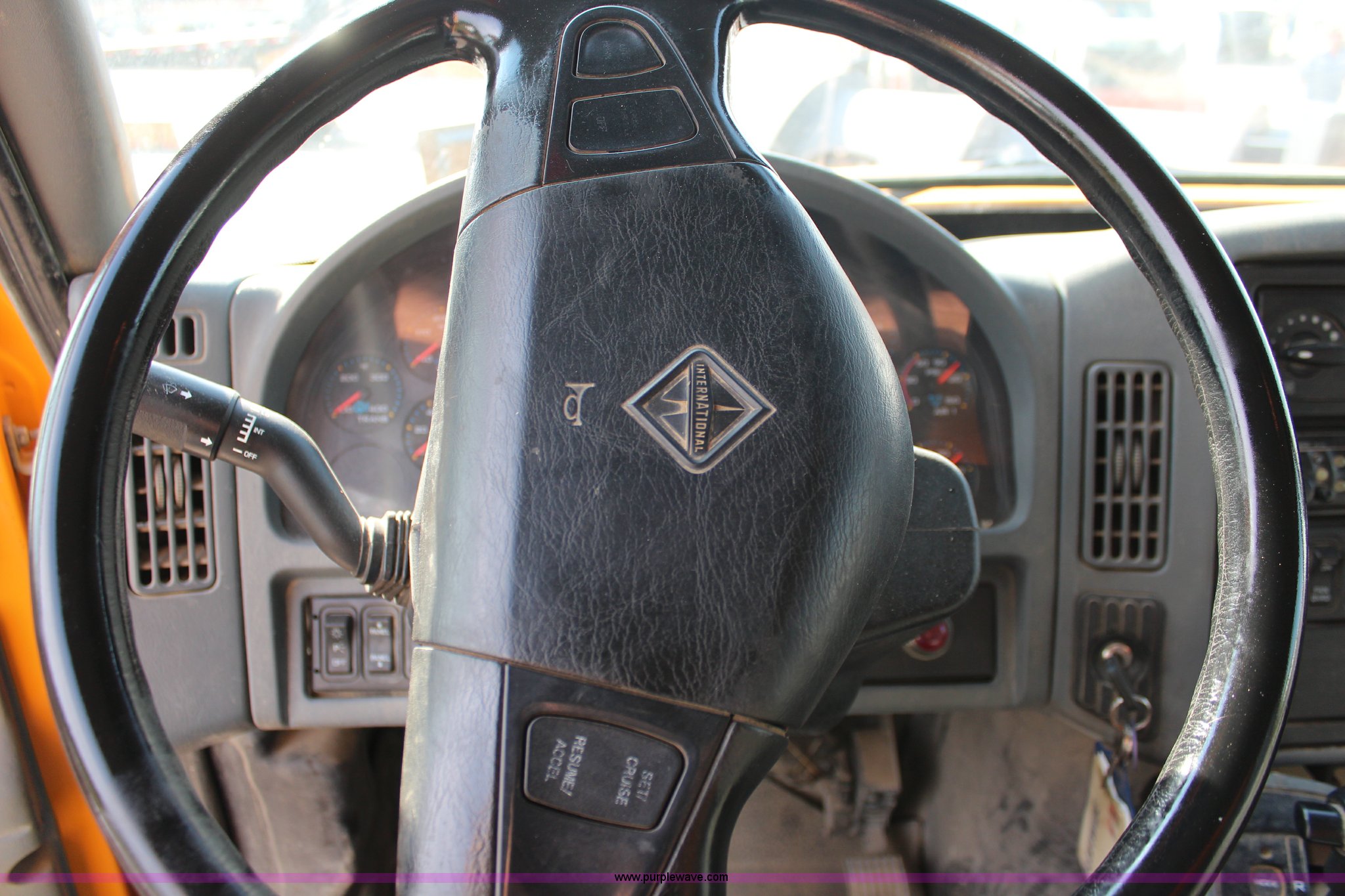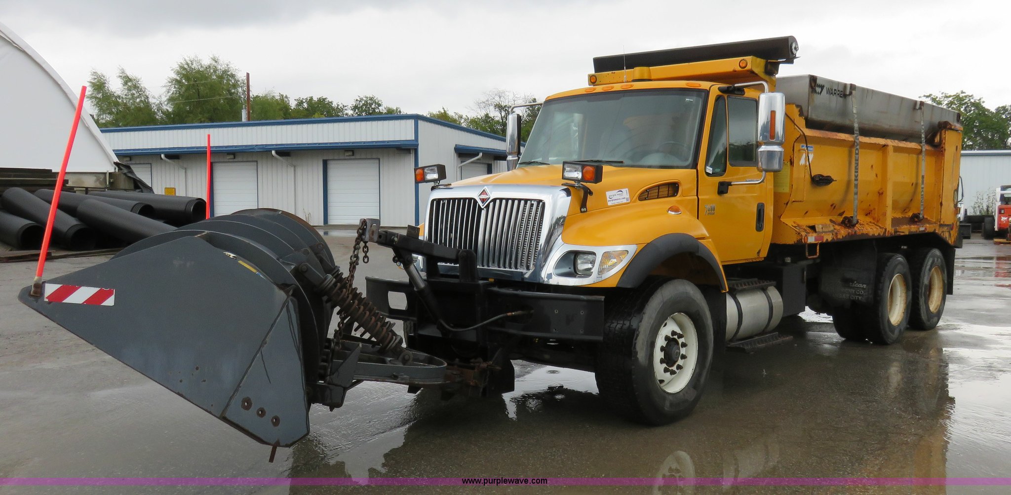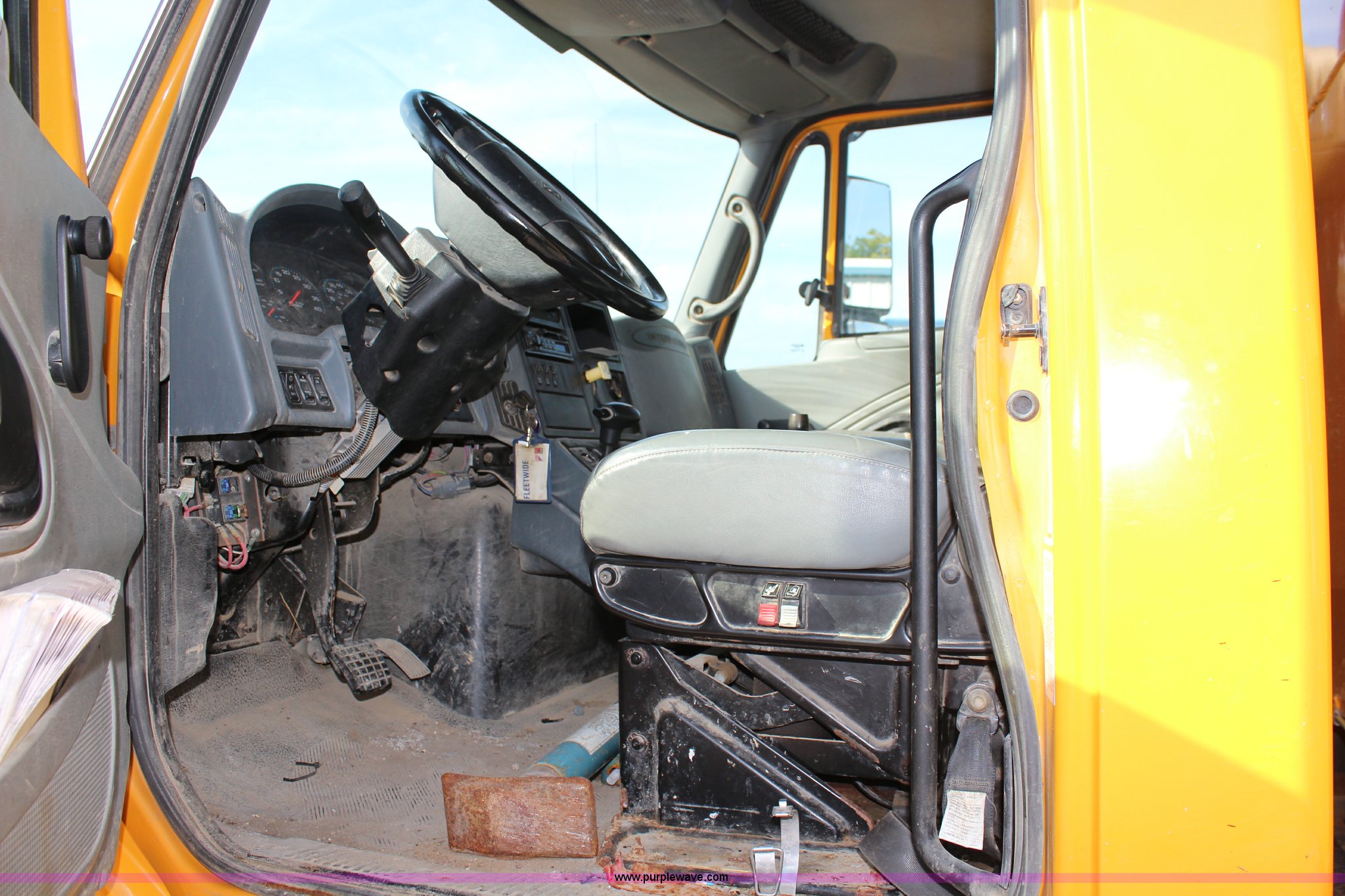 Purple Wave is selling a used Construction Dump Truck in Kansas. This item is a 2004 International 7400 dump truck with the following: 191,805 miles on odometer, International DT530 8.7L L6 diesel engine, Allison automatic transmission, Twin screw, AC and heat, Cruise, AM/FM/cassette, Air suspension seat, Heated mirrors, 15' dump bed, Rollover tarp, End gate, 50 gallon fuel tank, PTO, Henke 10' plow, Warren 15' spreader, Air brakes, 11R22.5 tires, GVWR 58,000 lbs, FAWR 18,000 lbs, IAWR 20,000 lbs, RAWR 20,000 lbs, Cracked windshield, Conveyor chain in spreader is broken