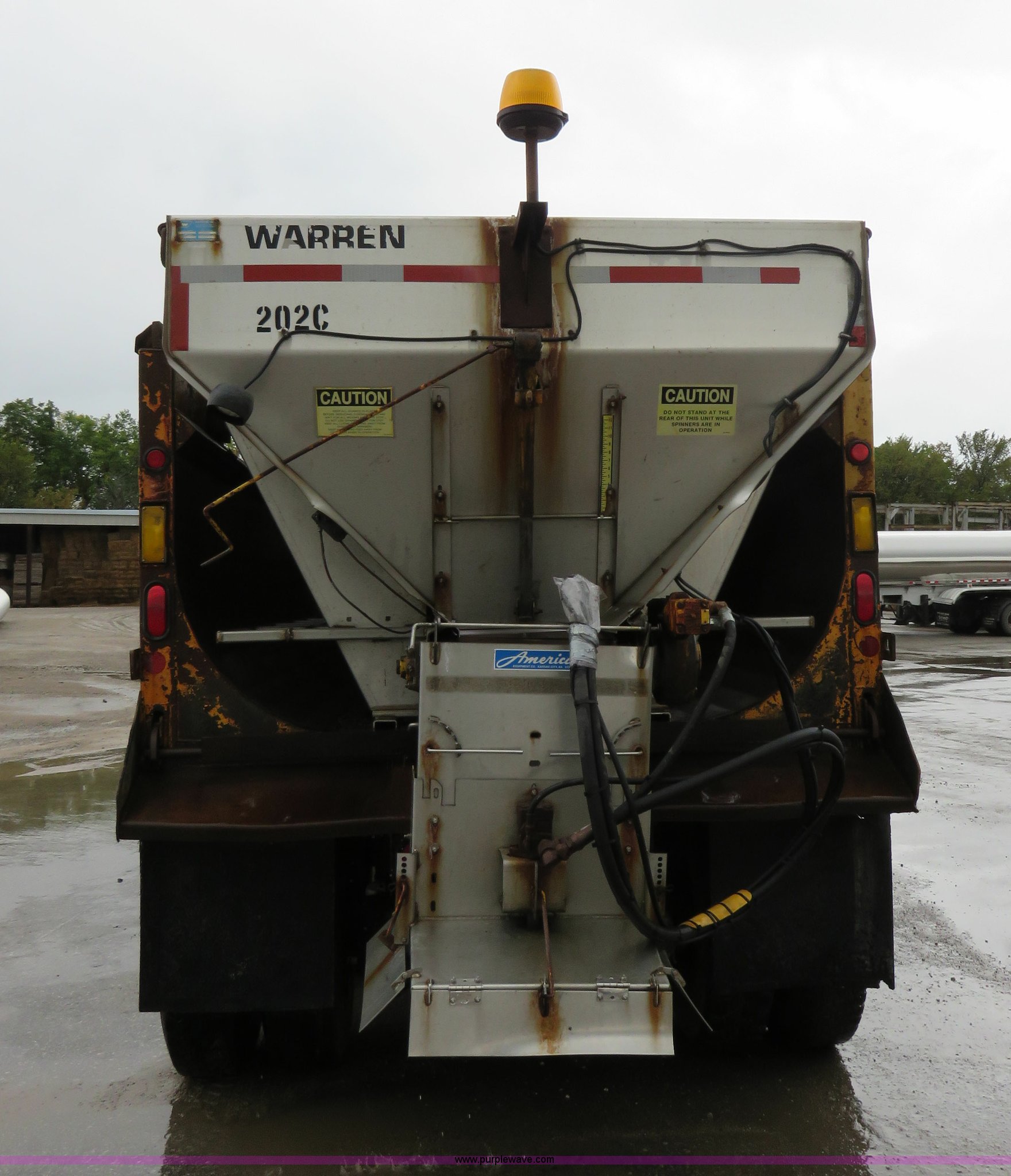 2004 International 7400 dump truck. 191,805 miles on odometer, International DT530 8.7L L6 diesel engine, Allison automatic transmission, Twin screw, AC and heat, Cruise, AM/FM/cassette, Air suspension seat, Heated mirrors, 15' dump bed Rollover tarp, End gate, 50 gallon fuel tank, PTO, Henke 10' plow, Warren 15' spreader, Air brakes, 11R22.5 tires, GVWR 58,000 lbs, FAWR 18,000 lbs, IAWR 20,000 lbs, RAWR 20,000 lbs, Cracked windshield, Conveyor chain in spreader is broken. Title distribution may be delayed up to 14 days from verification of funds. 1HTWHADT64J027445. Douglas County Public Works. 711 E 23rd St. Lawrence, KS 66046