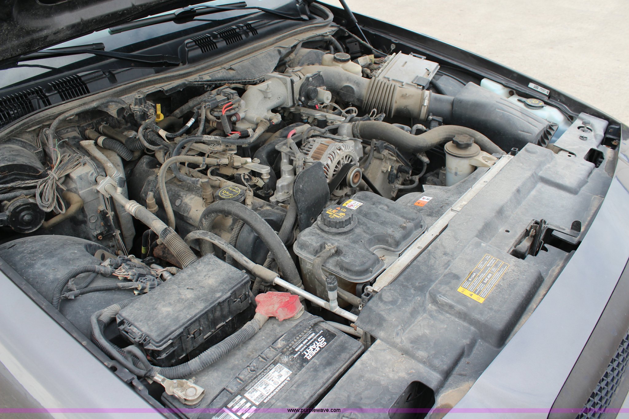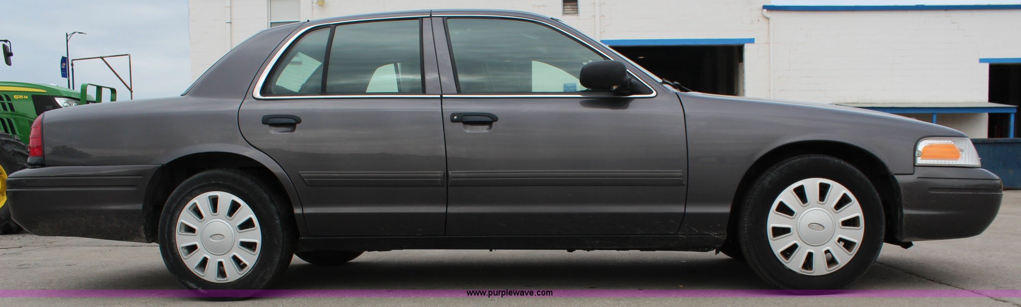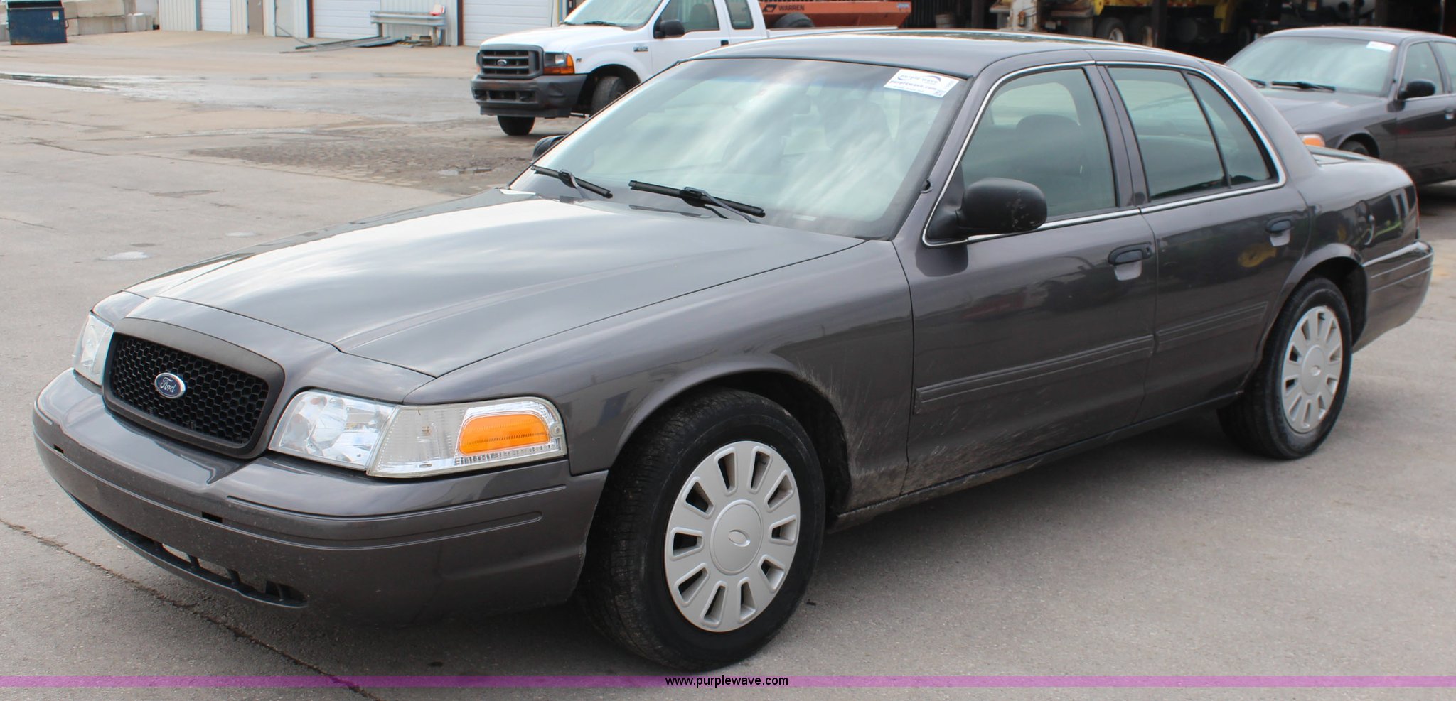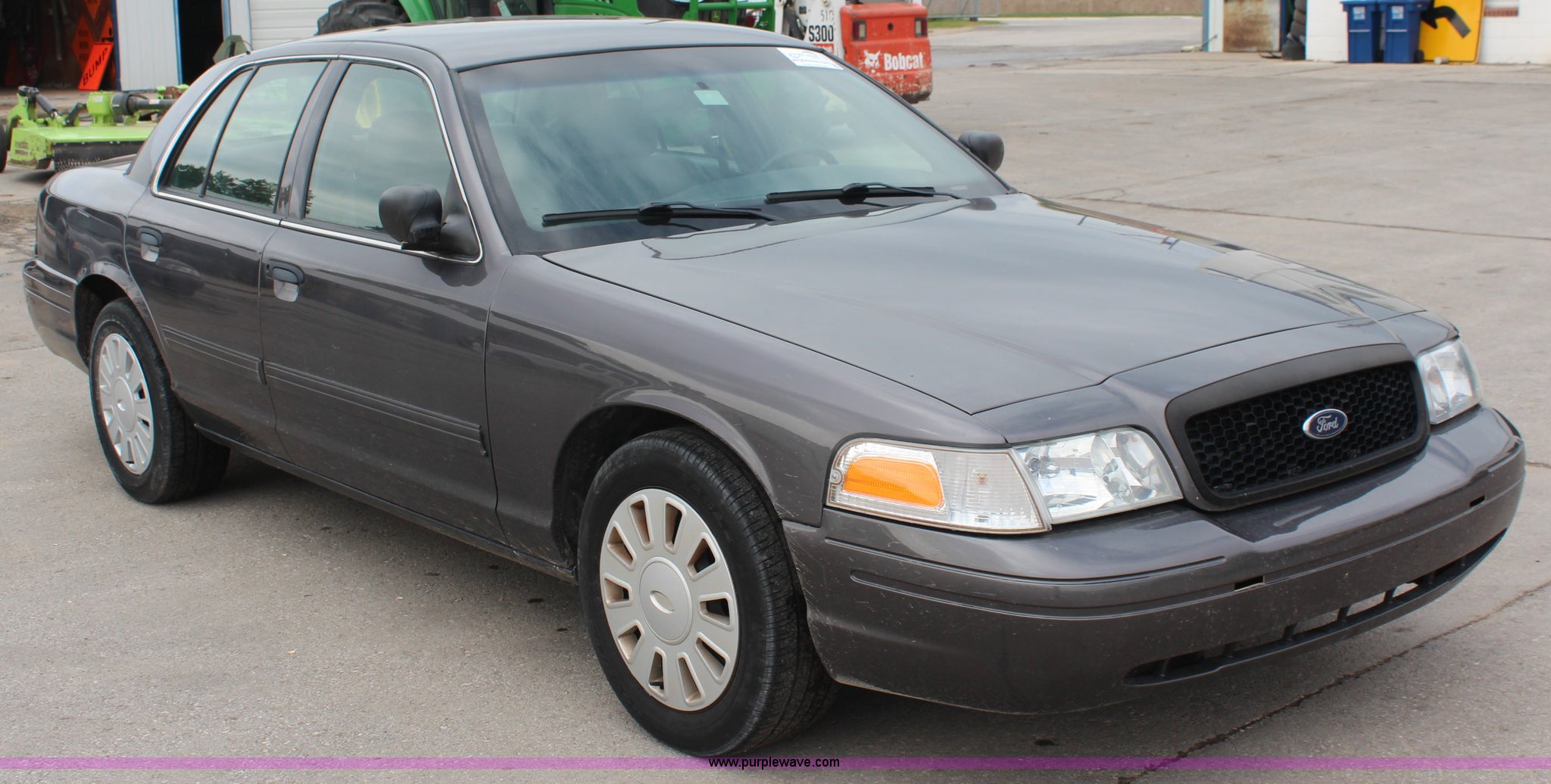 Purple Wave is selling a used Passenger Vehicle in Kansas. This item is a 2009 Ford Crown Victoria Police Interceptor with the following: 103,486 miles on odometer, 4.6L V8 SOHC 16V FFV gas engine, Automatic transmission, AC and heat, Tilt, Cruise, AM/FM, Power windows, locks, mirrors, and seats, Cloth interior, Vinyl rear seat, 235/55R17 tires, Holes from equipment have been plugged