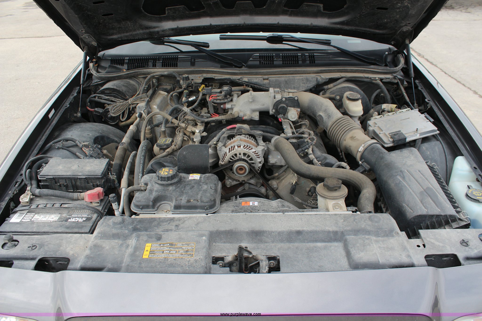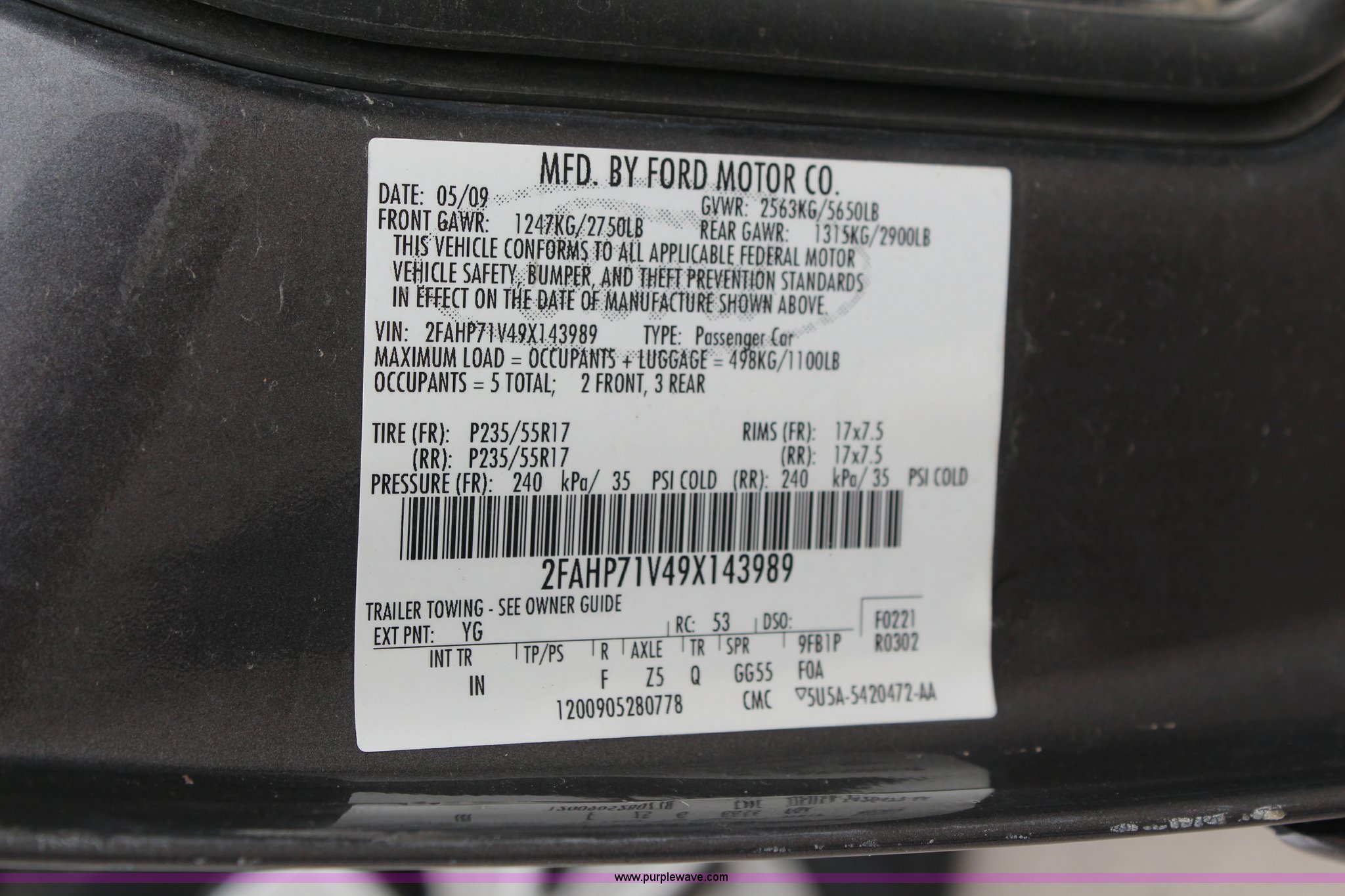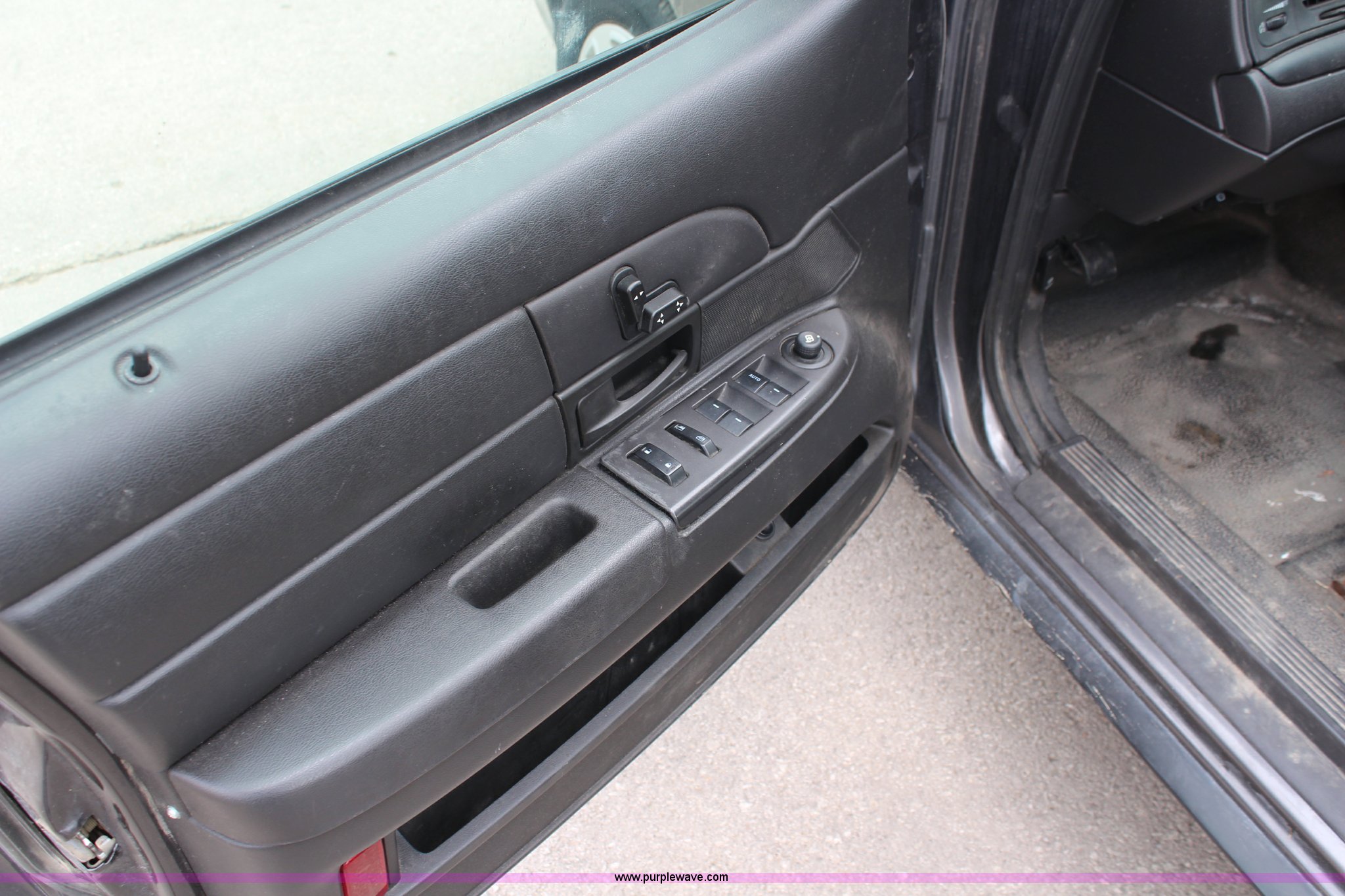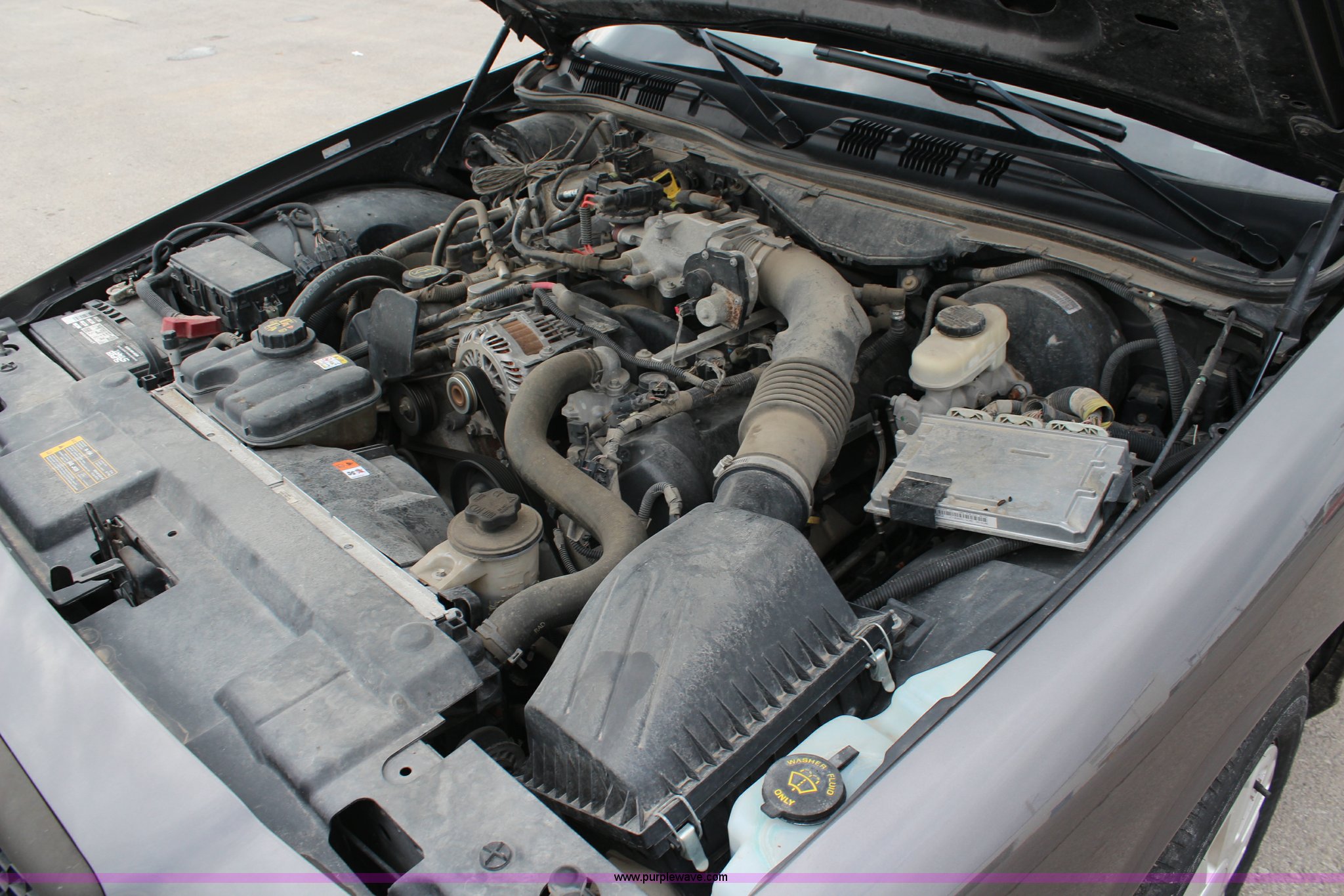 Purple Wave is selling a used Passenger Vehicle in Kansas. This item is a 2009 Ford Crown Victoria Police Interceptor with the following: 103,486 miles on odometer, 4.6L V8 SOHC 16V FFV gas engine, Automatic transmission, AC and heat, Tilt, Cruise, AM/FM, Power windows, locks, mirrors, and seats, Cloth interior, Vinyl rear seat, 235/55R17 tires, Holes from equipment have been plugged