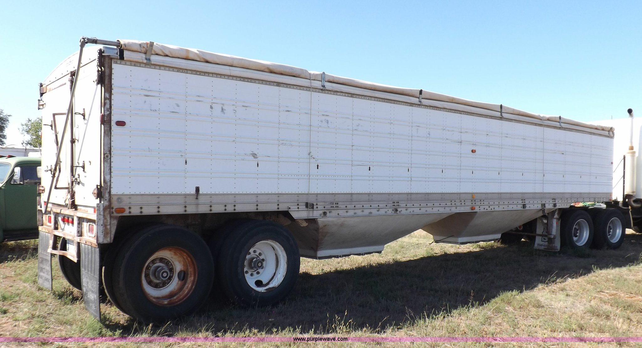 Purple Wave is selling a used Grain or Commodity Trailer in Oklahoma. This item is a 1974 American grain hopper trailer with the following: 40'L x 8'W x 10'H, 60"H sides, Shur-Lok tarp, Slide hammer trap, Dual leg two speed landing gear, Spring suspension, Air brakes, 11R24.5 tires, GVWR 54,000 lbs, Rust