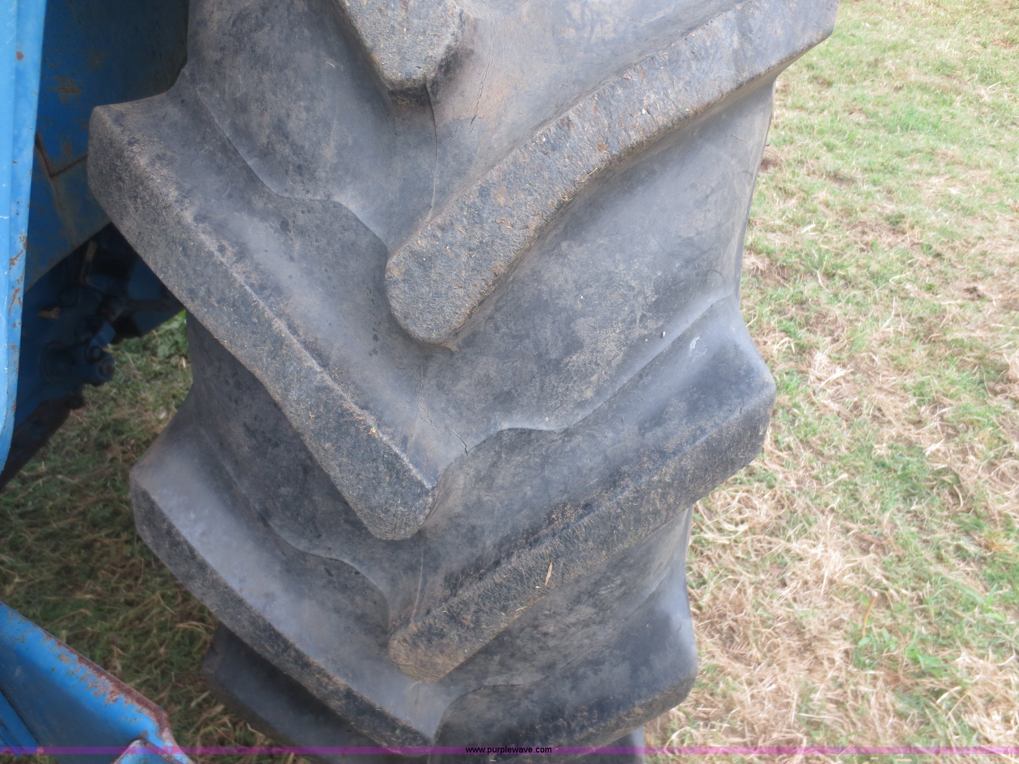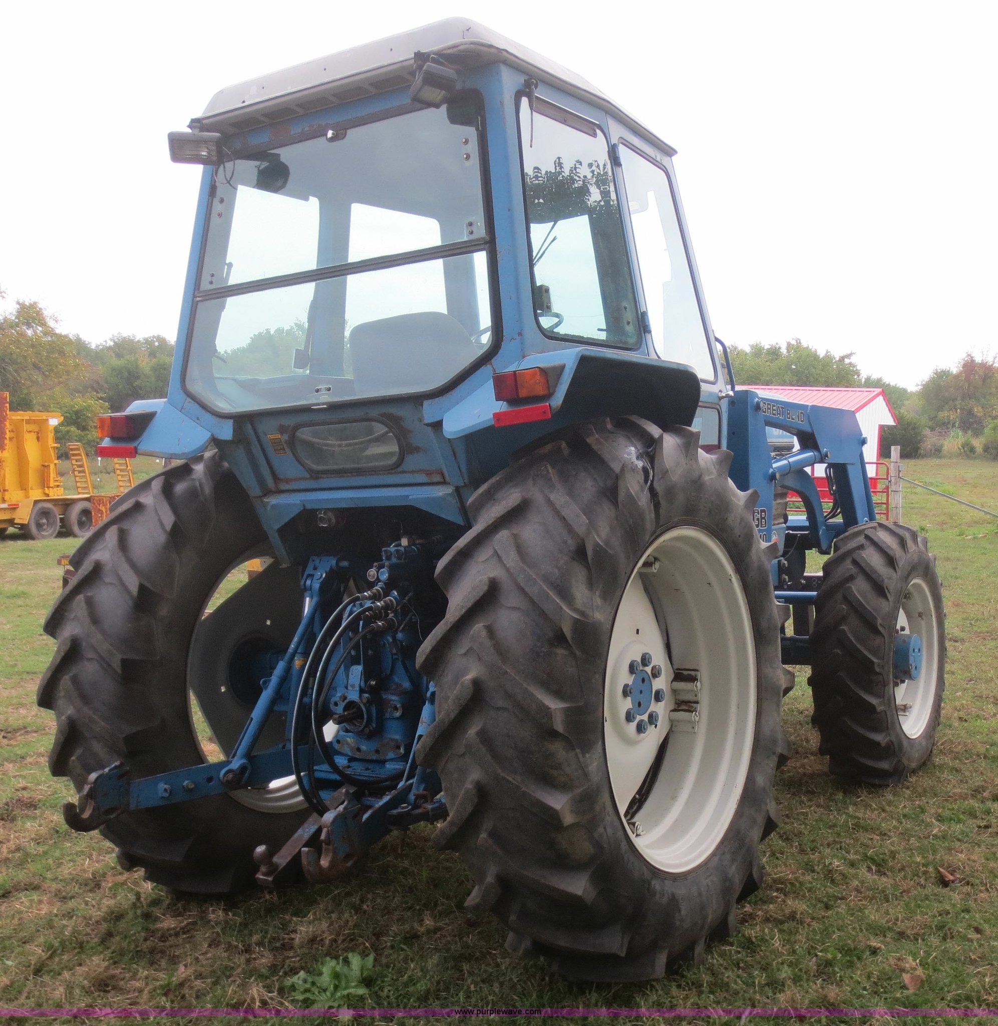 Purple Wave is selling a used Tractor in Kansas. This item is a 1984 Ford 6710 MFWD tractor with the following: 3,273 hours on meter, Hours meter inoperable, Ford four cylinder diesel engine, Dual Power transmission, 16F-8R gears, AC and heat, AM/FM/cassette, GB 440 loader, Bale spear, 6' smooth edge bucket, Serial 8-264, Three point, Draw bar, 540 PTO, (2) rear hydraulic remotes, 13.6-28 front tires, 16.9R38 rear tires, Right rear wheel seal leaks, Serial B447852