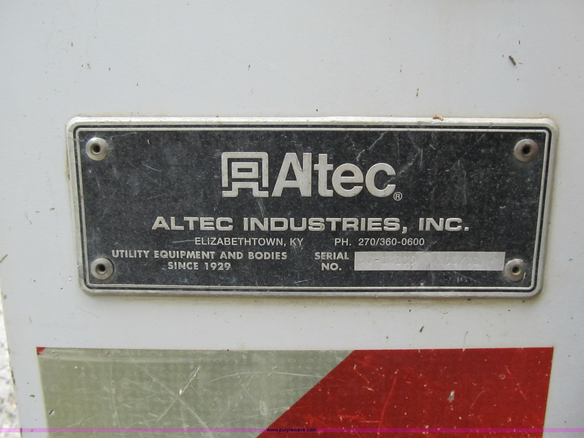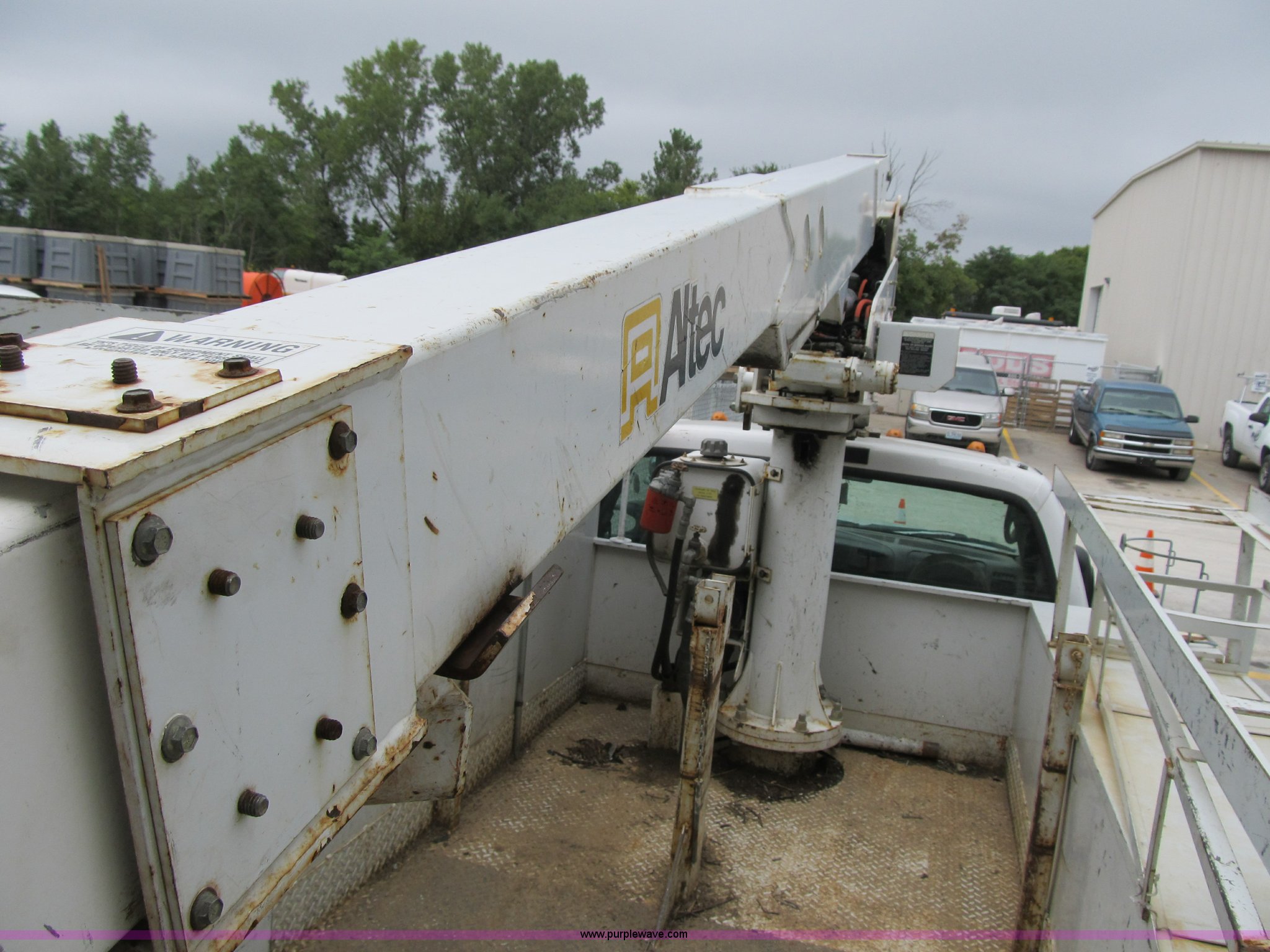 2001 Ford F450 Super Duty XL bucket truck. 223,707 actual miles, 7.3L V8 turbo diesel engine, Automatic transmission, AC and heat, AM/FM, Manual windows and locks, Vinyl interior, Aluminum running boards, Altec service bed (8) compartments, Ladder rack, Serial 57-14135, Altec aerial lift Model AT30G, 350 lbs lift capacity, 20.3' lift height, Upper and lower controls, Flashing yellow beacon, 10'3" stowed height, Receiver hitch, Trailer wiring, 225/70R19.5 tires, Shifter lever broken, Non-operational unit, Emergency brake inoperable, Unit# 131. 1FDXF46F61EC91541. Bear Communications. 12712 2nd St. Grandview, MO 64030