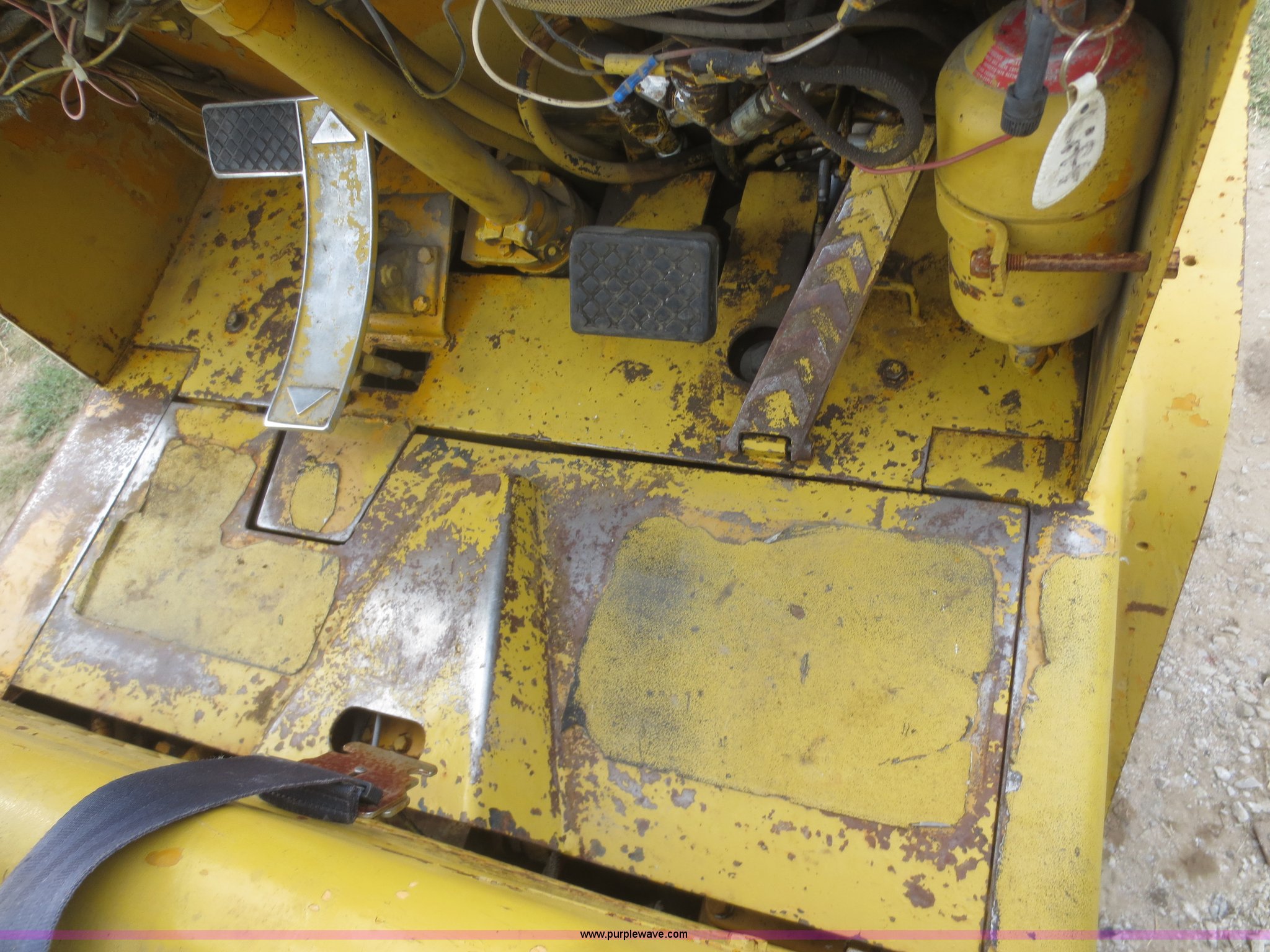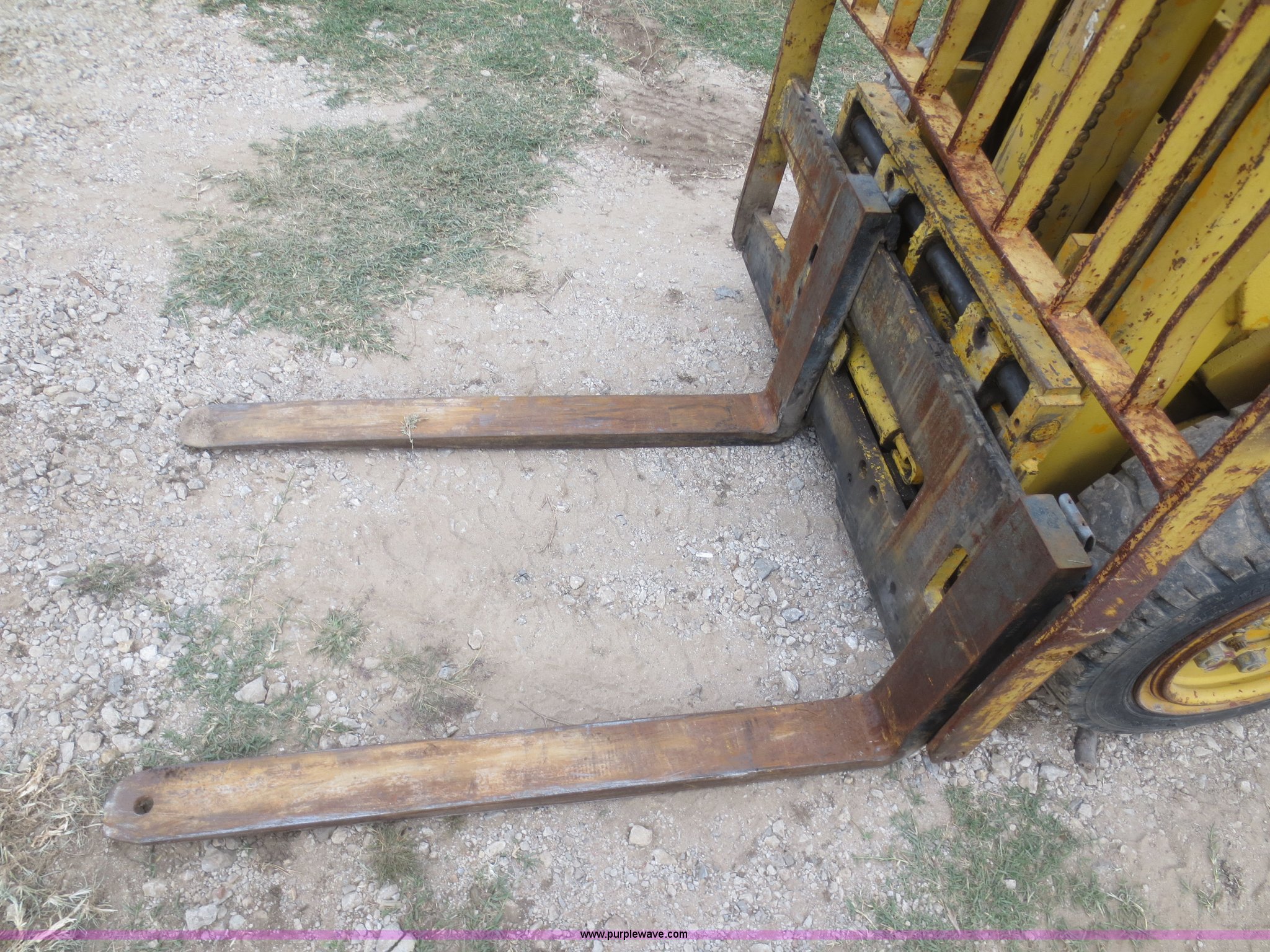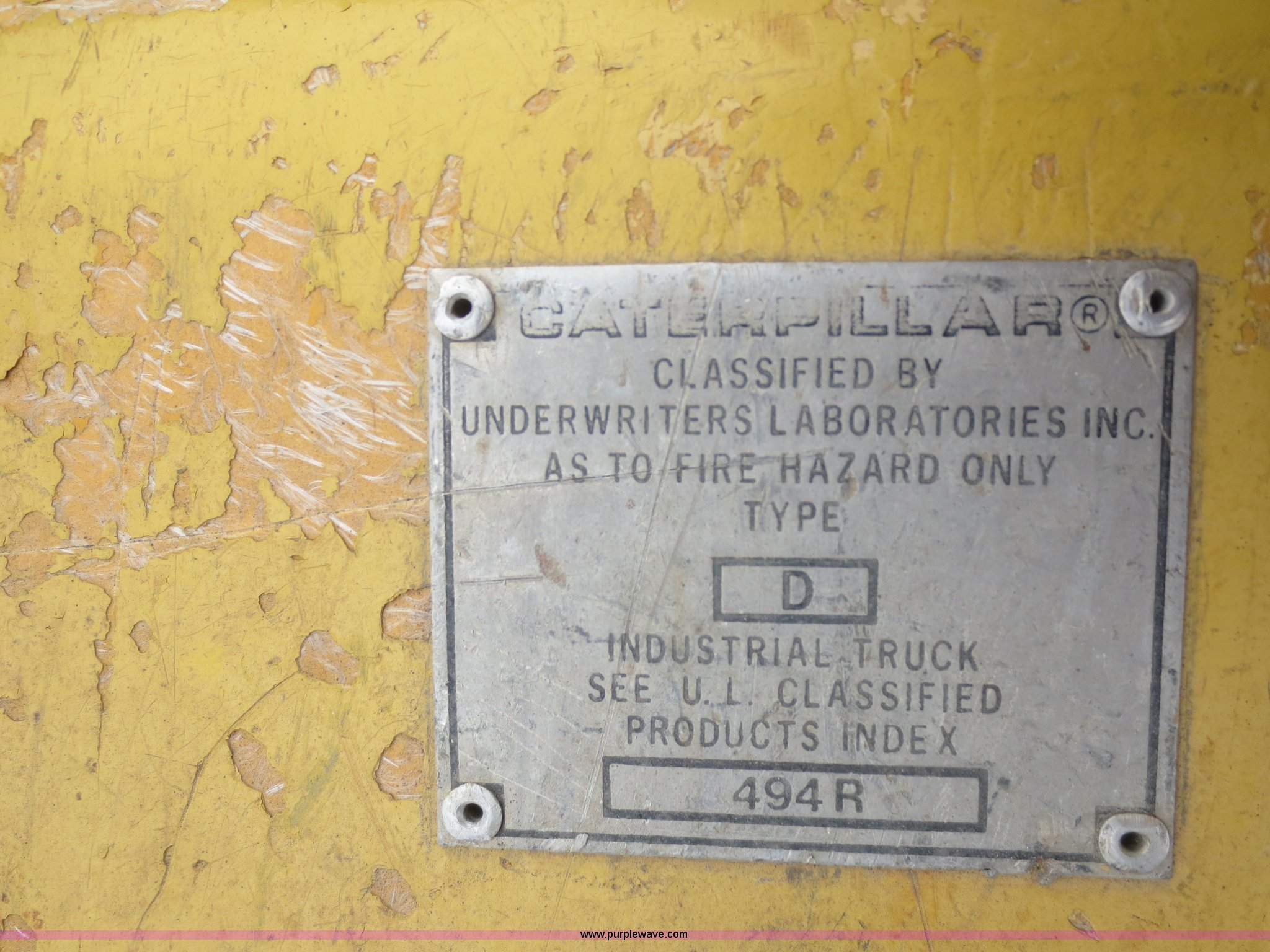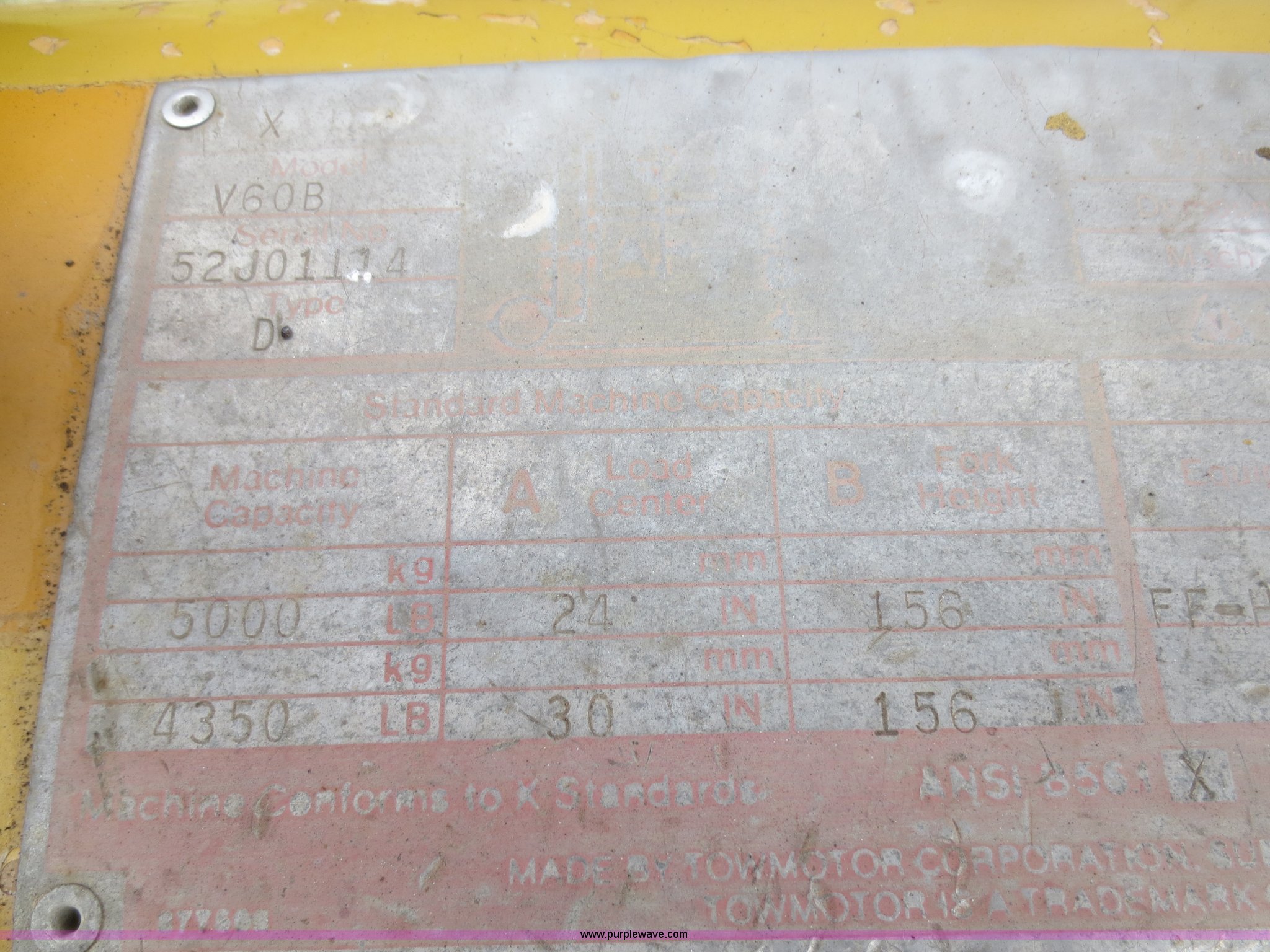 Purple Wave is selling a used Cushion Tire or Pneumatic Forklift in Kansas. This item is a Caterpillar V60B forklift with the following: 5,268 hours on meter, Perkins four cylinder diesel engine, 5,000 lbs maximum lift capacity, Side shift, 42"L forks, 28 x 9-15 pneumatic drive tires, 8.50-10 pneumatic rear tires, 9,580 lbs. base operating weight, Serial 52J01114