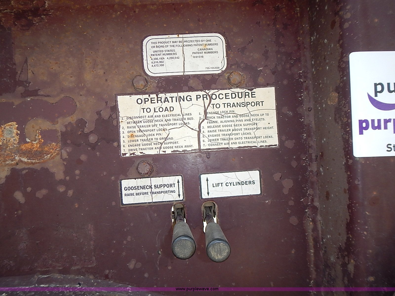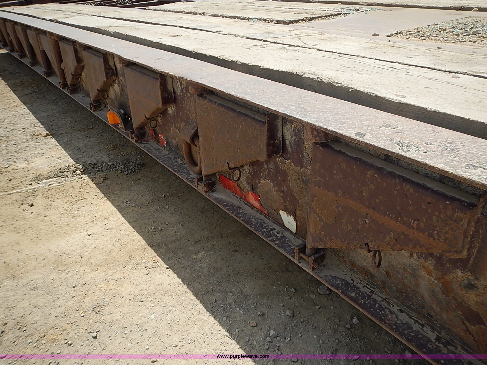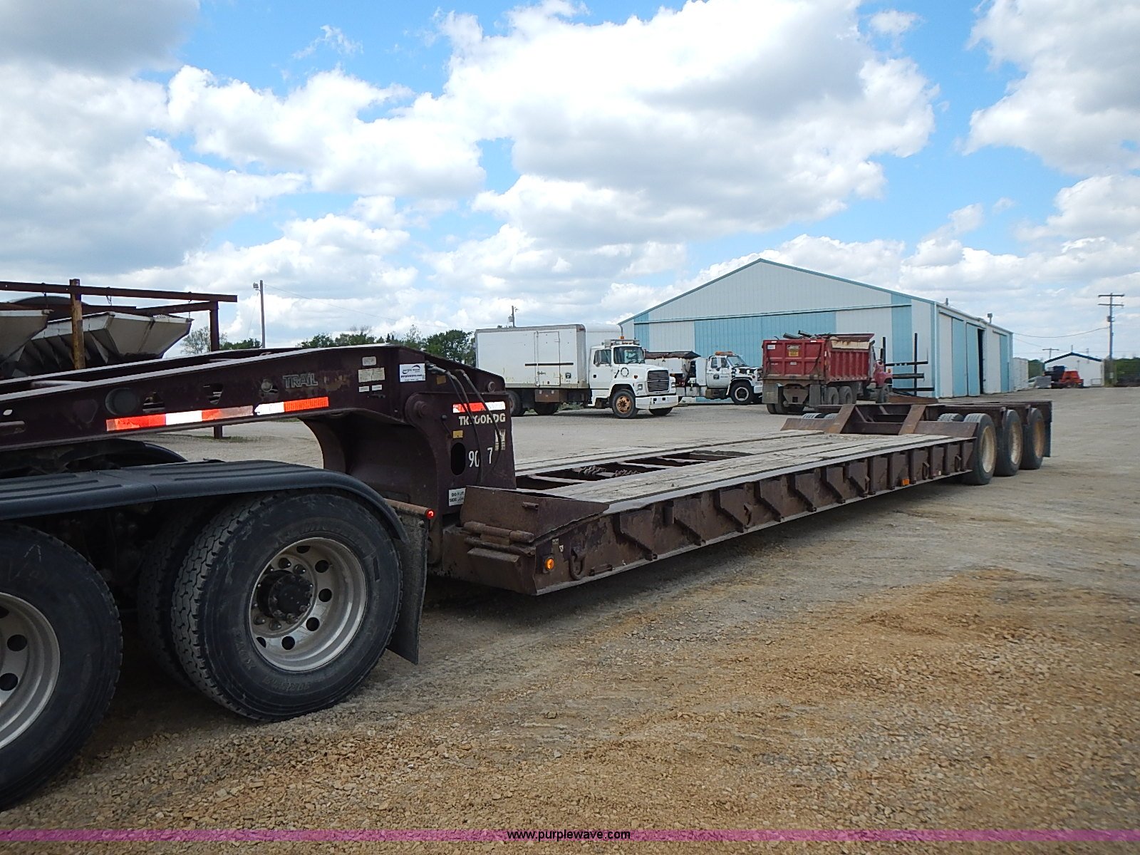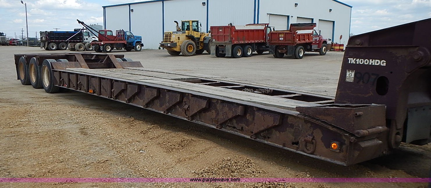 Purple Wave is selling a used Equip. Trailer in Kansas. This item is a 1995 Trail King lowboy trailer with the following: 40'L x 101"W, 2'L ramps, 14" wide load side extensions, Wood deck, D-ring tie downs, Trailer wiring, Air suspension, Air brakes, 255/70R22.5 tires, Unit# 90-07