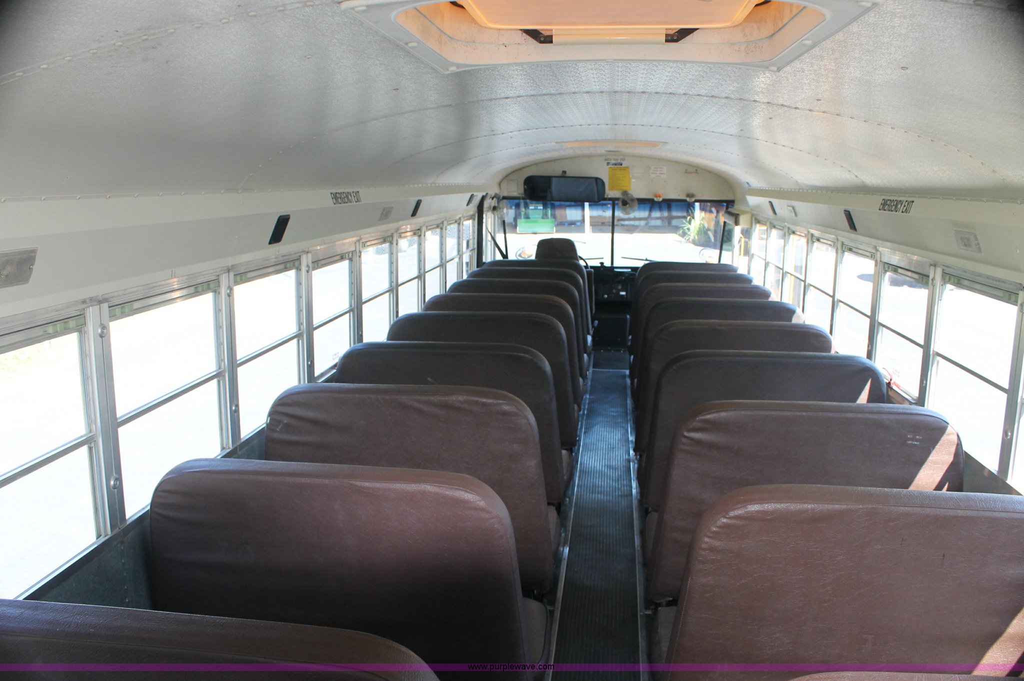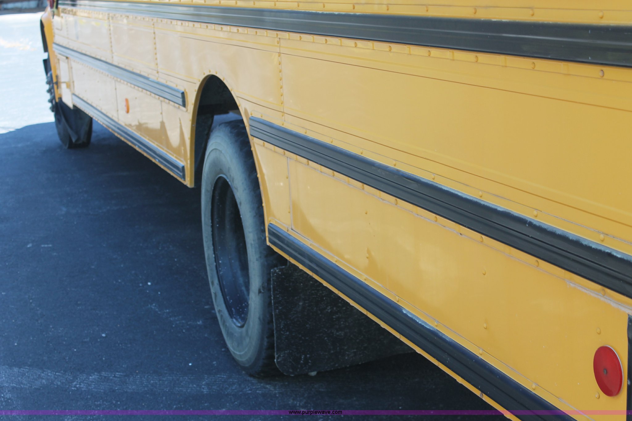 Purple Wave is selling a used Bus in Kansas. This item is a 1997 International 3800 school bus with the following: 158,203 miles on odometer, International DT466E 7.6L L6 diesel engine, Automatic transmission, Heat, Cruise, AM/FM, Vinyl interior, 65 passenger capacity, Front and rear tow hooks, 10R22.5 tires, Interior/exterior cosmetic damage, Right front fender damage