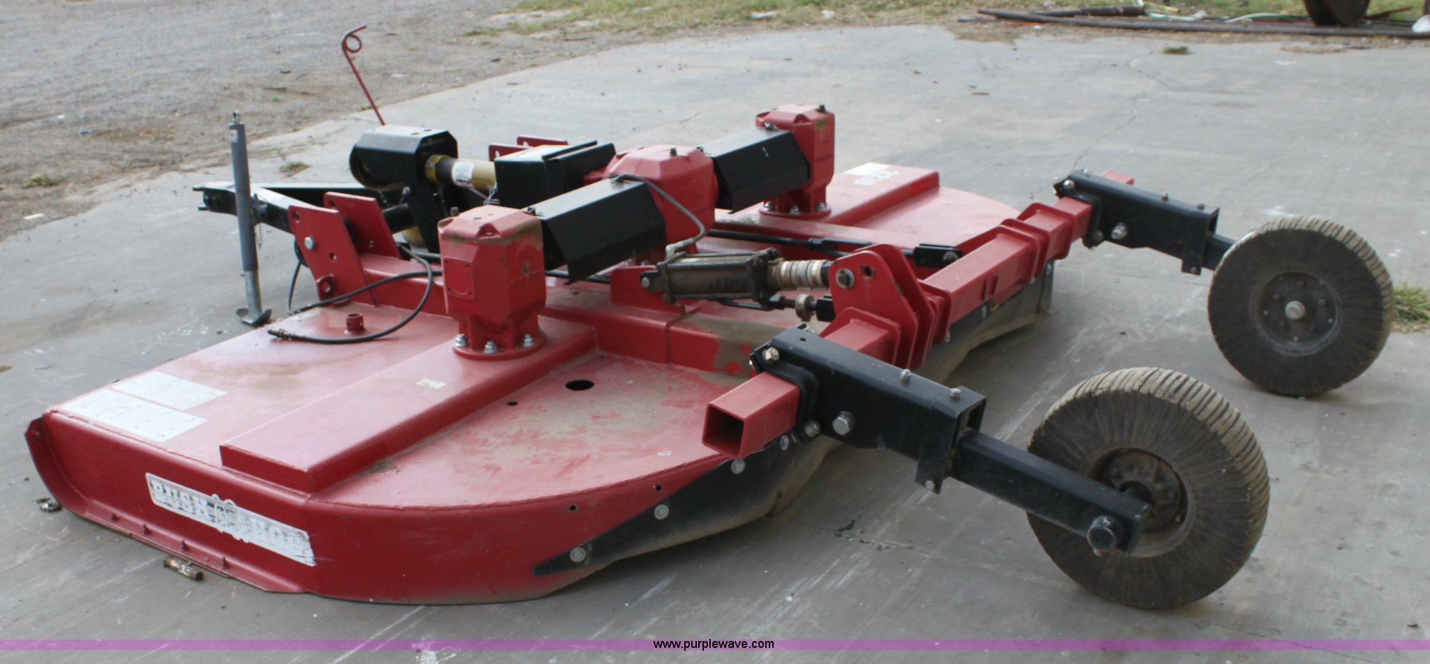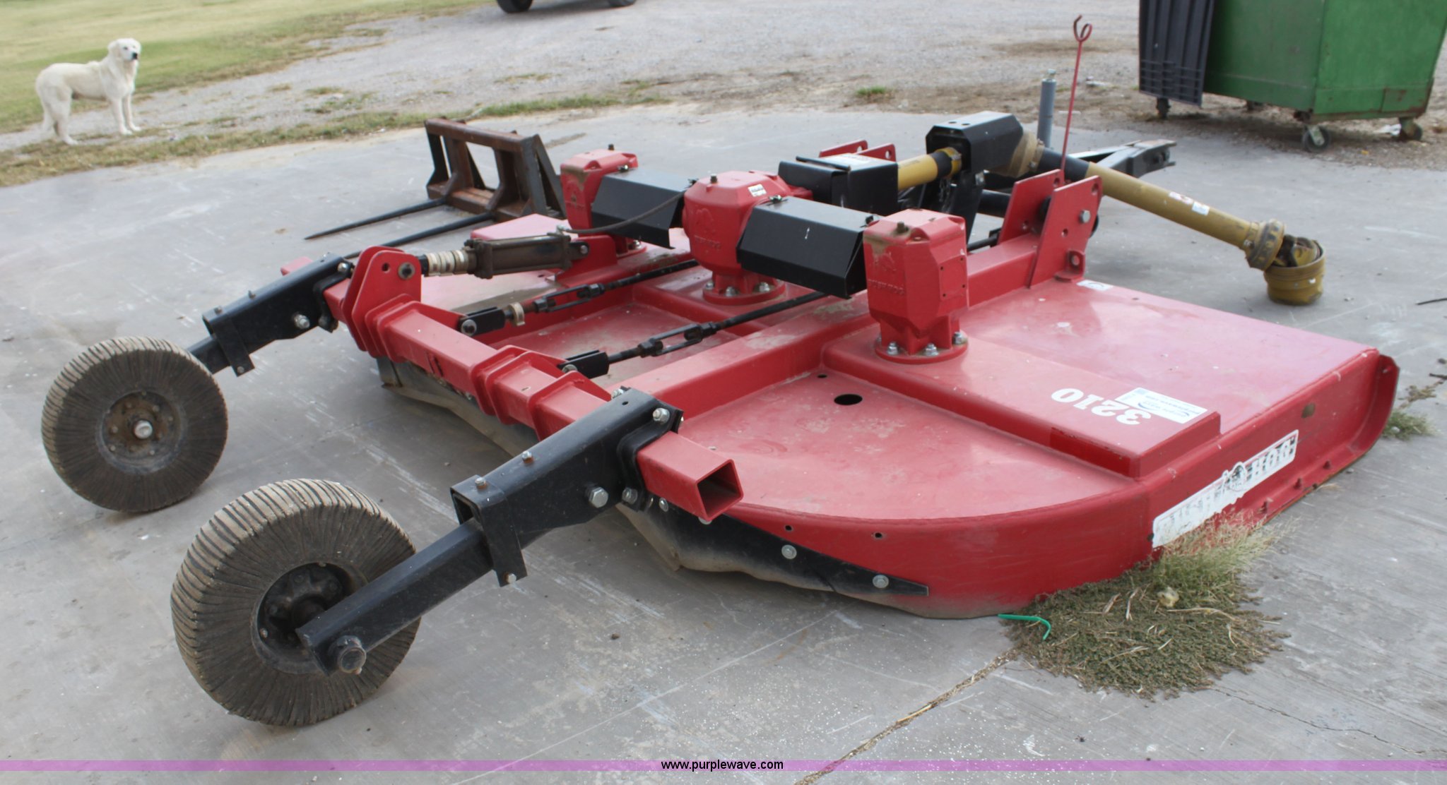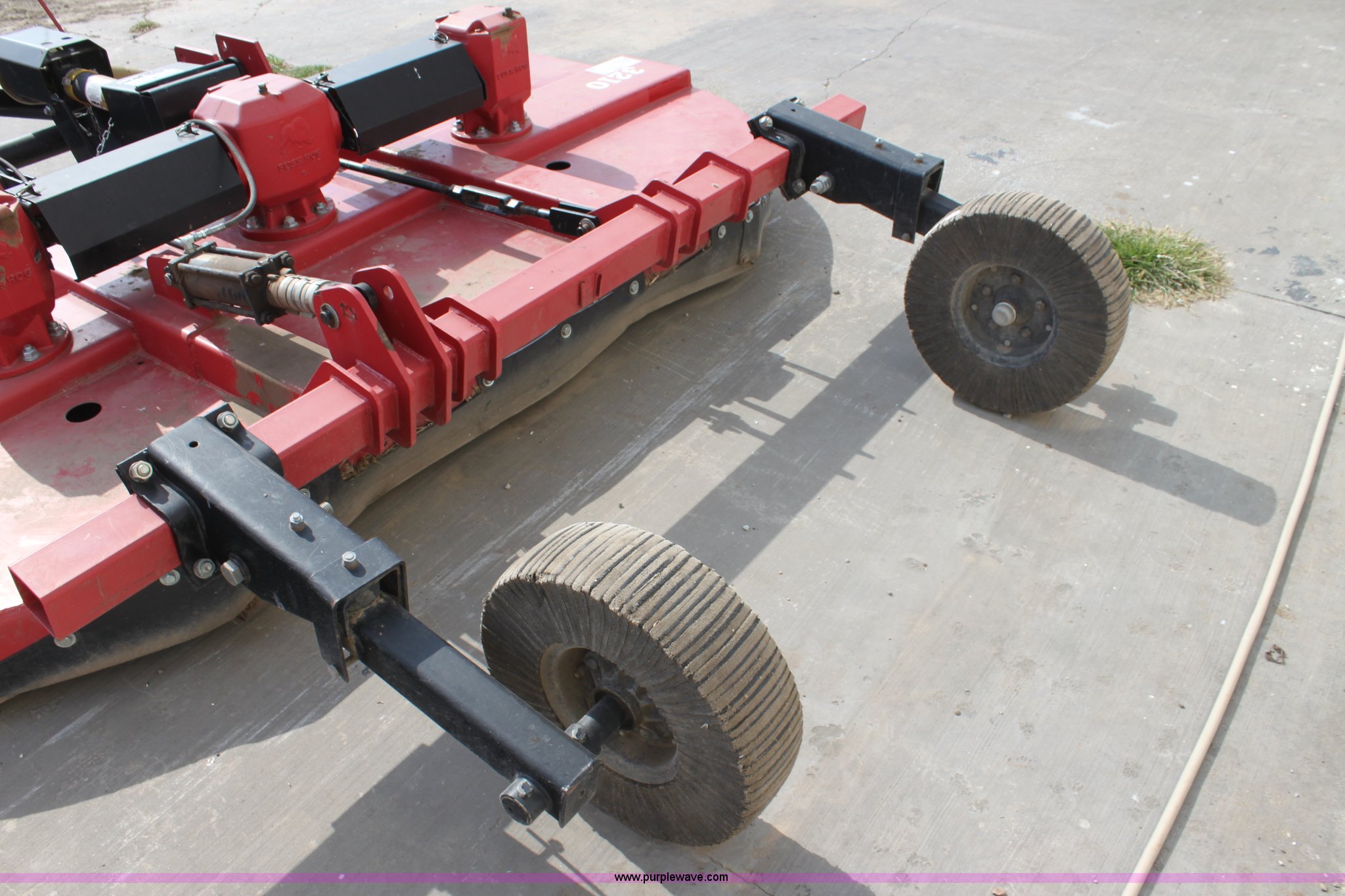 Purple Wave is selling a used Mower, Cutter, Shredder in Oklahoma. This item is a Bush Hog 3210 rotary mower with the following: 10'W, 540 PTO, Hydraulic height adjustment, Solid tail wheels, Serial BH712042