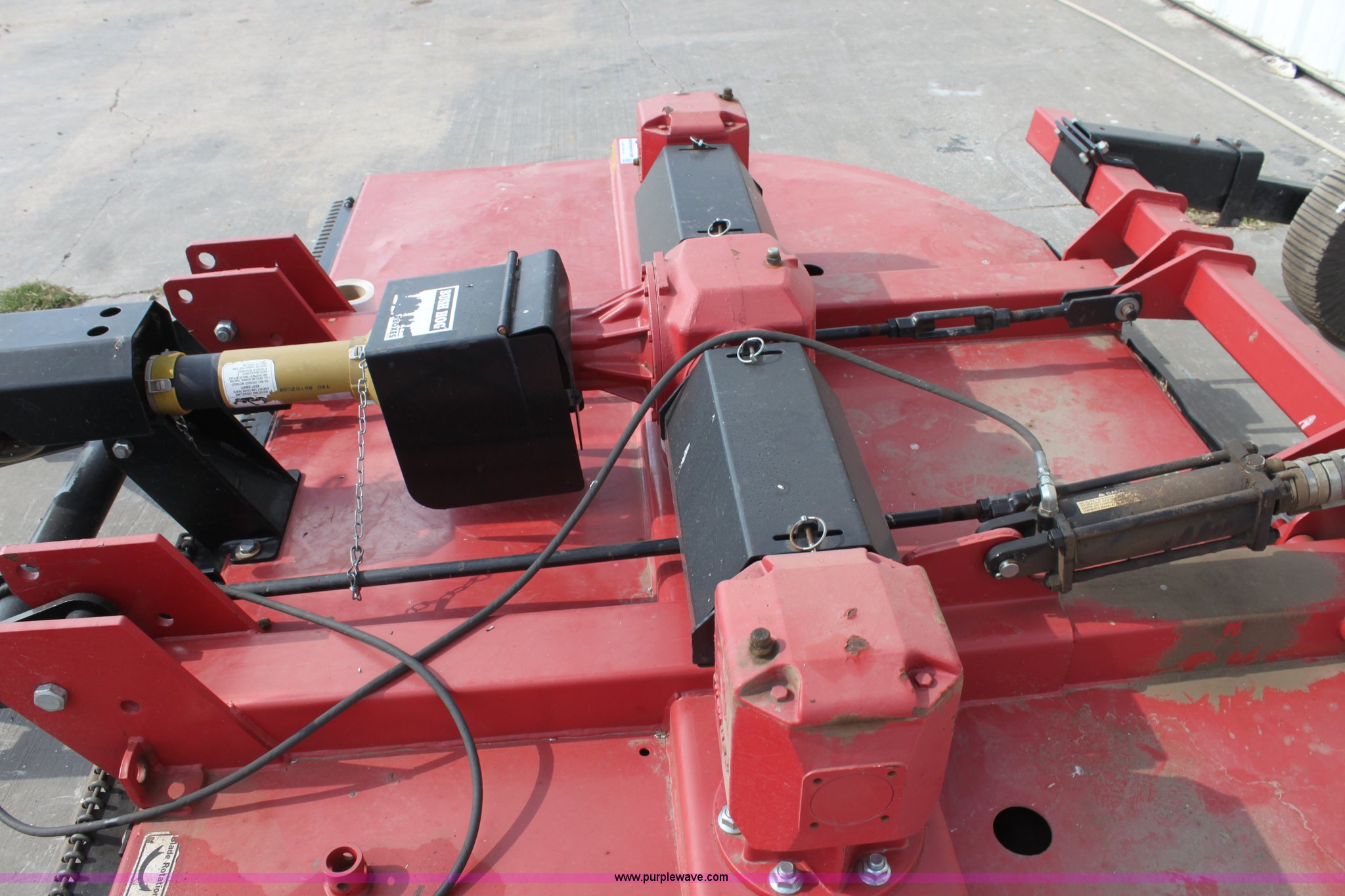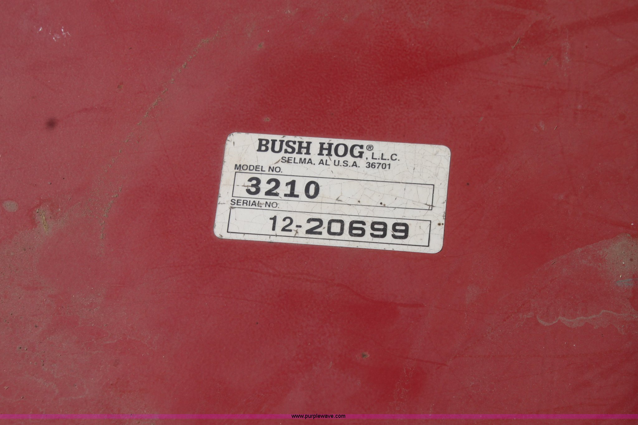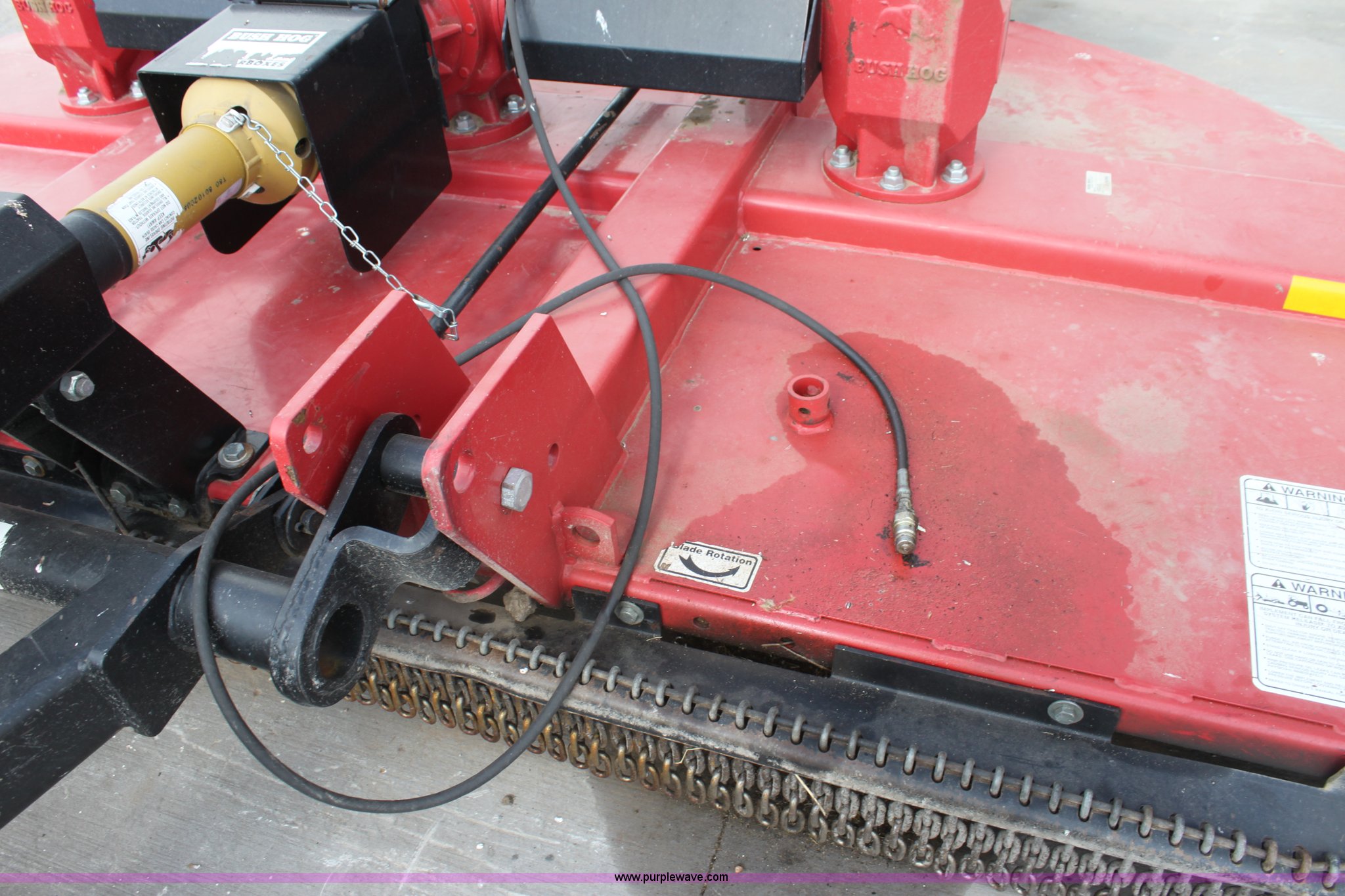 Purple Wave is selling a used Mower, Cutter, Shredder in Oklahoma. This item is a Bush Hog 3210 rotary mower with the following: 10'W, 540 PTO, Hydraulic height adjustment, Solid tail wheels, Serial BH712042