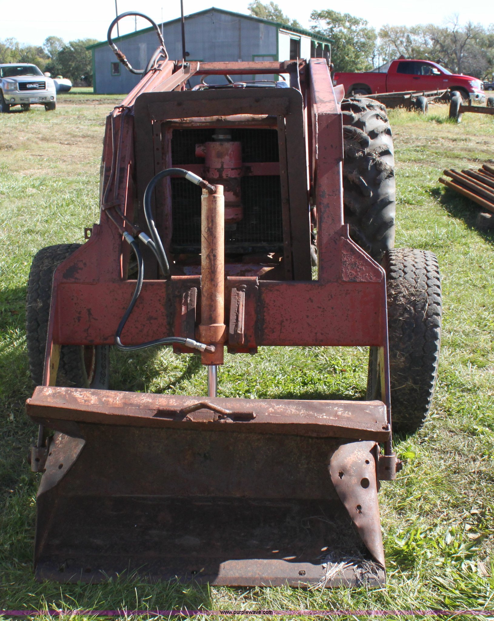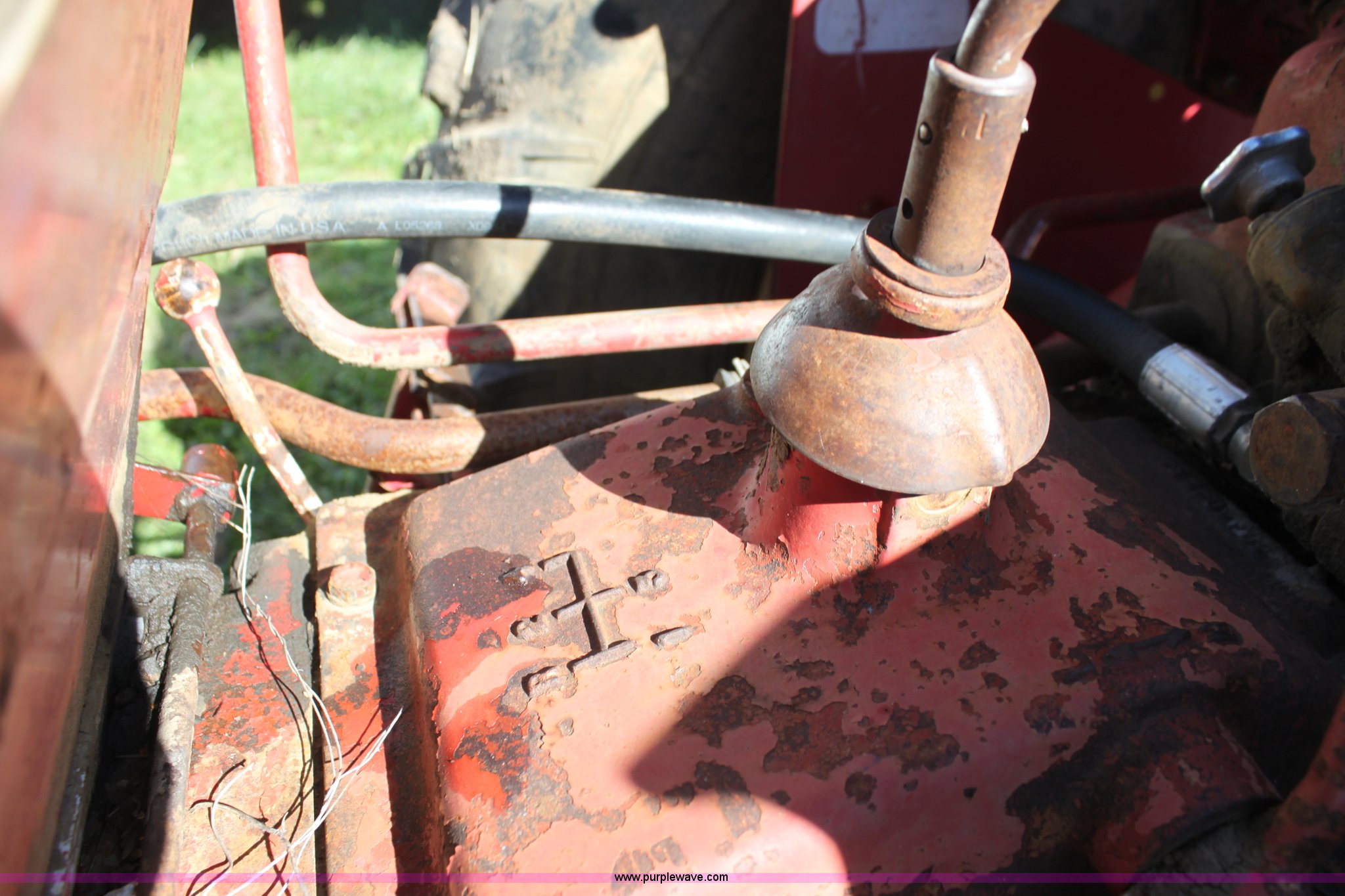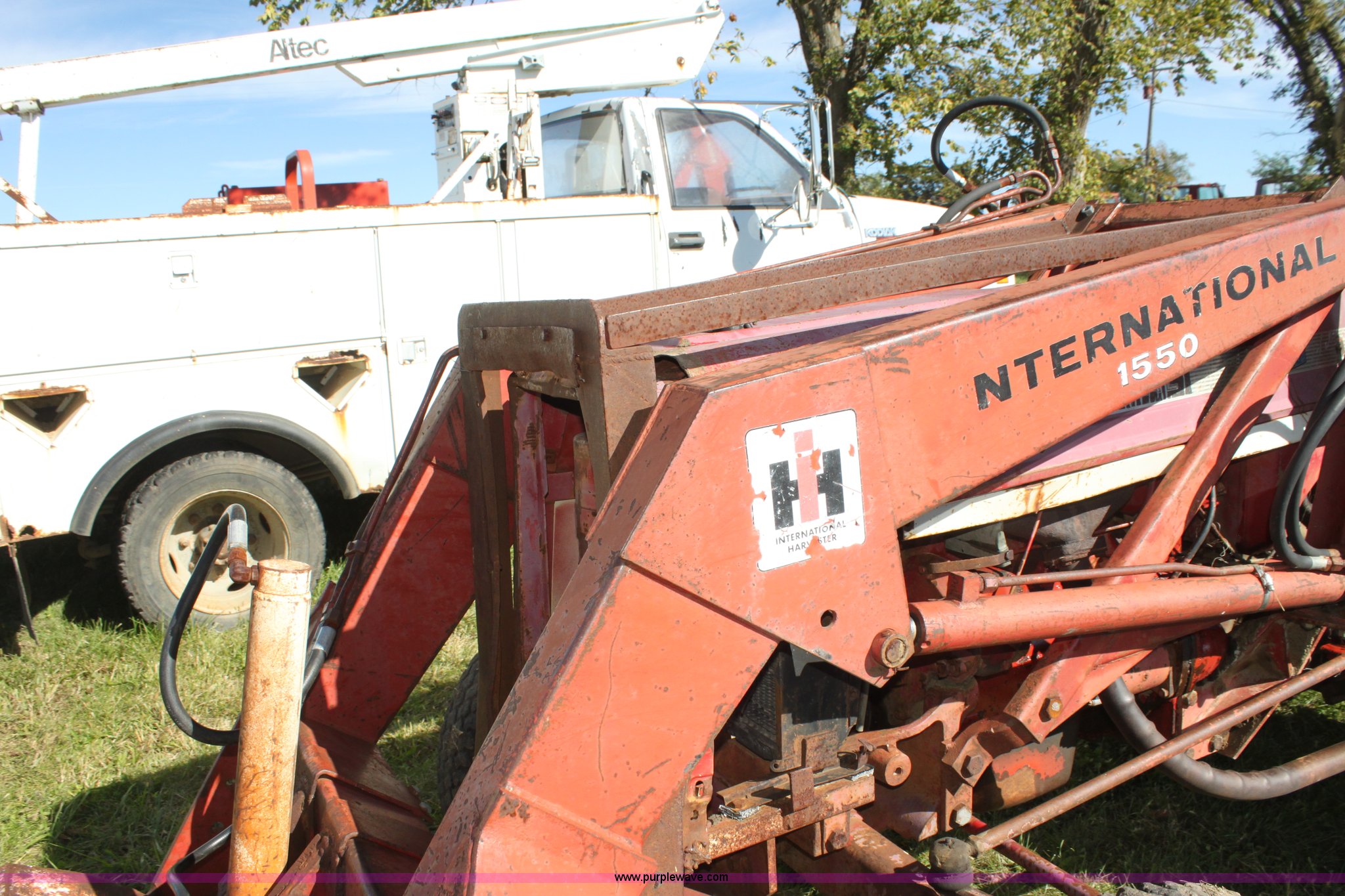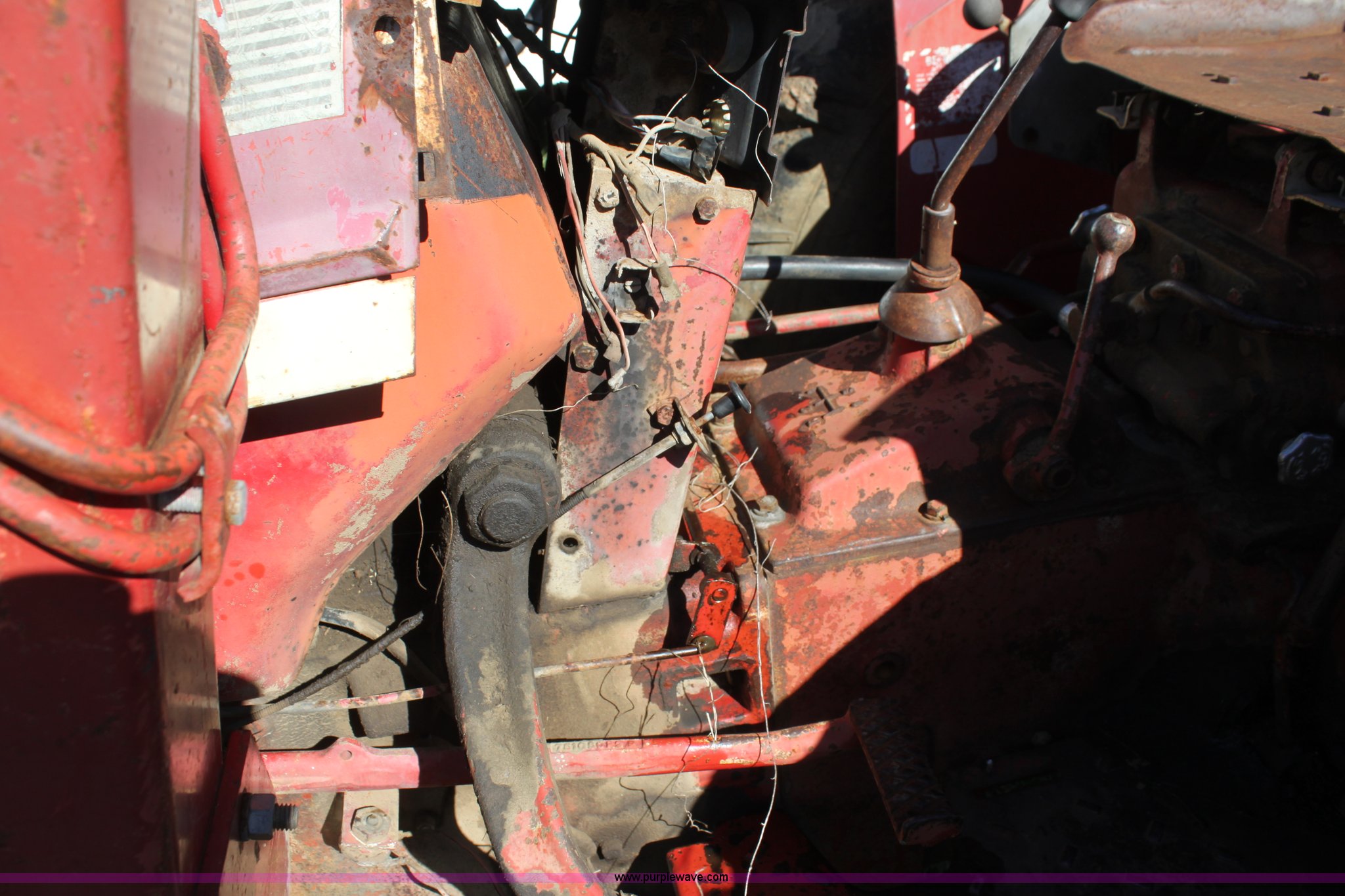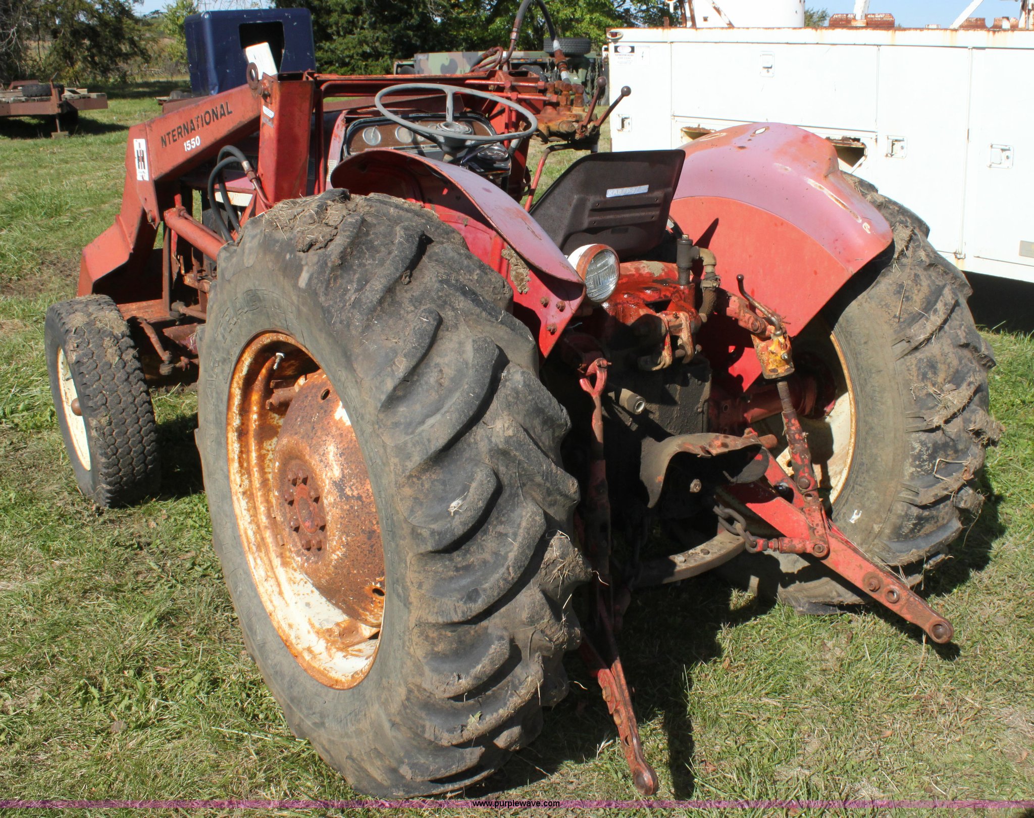 Purple Wave is selling a used Tractor in Kansas. This item is a International 354 tractor with the following: 2,619 hours on meter, International four cylinder gas engine, Manual transmission, 8F-2R gears, International 1550 loader, 40"W bucket, Two stick loader controls, 540 PTO, Three point, Draw bar, Rear hydraulic remote, 245/75R16 front tires, 13.6-28 rear tires, Interior/exterior cosmetic damage