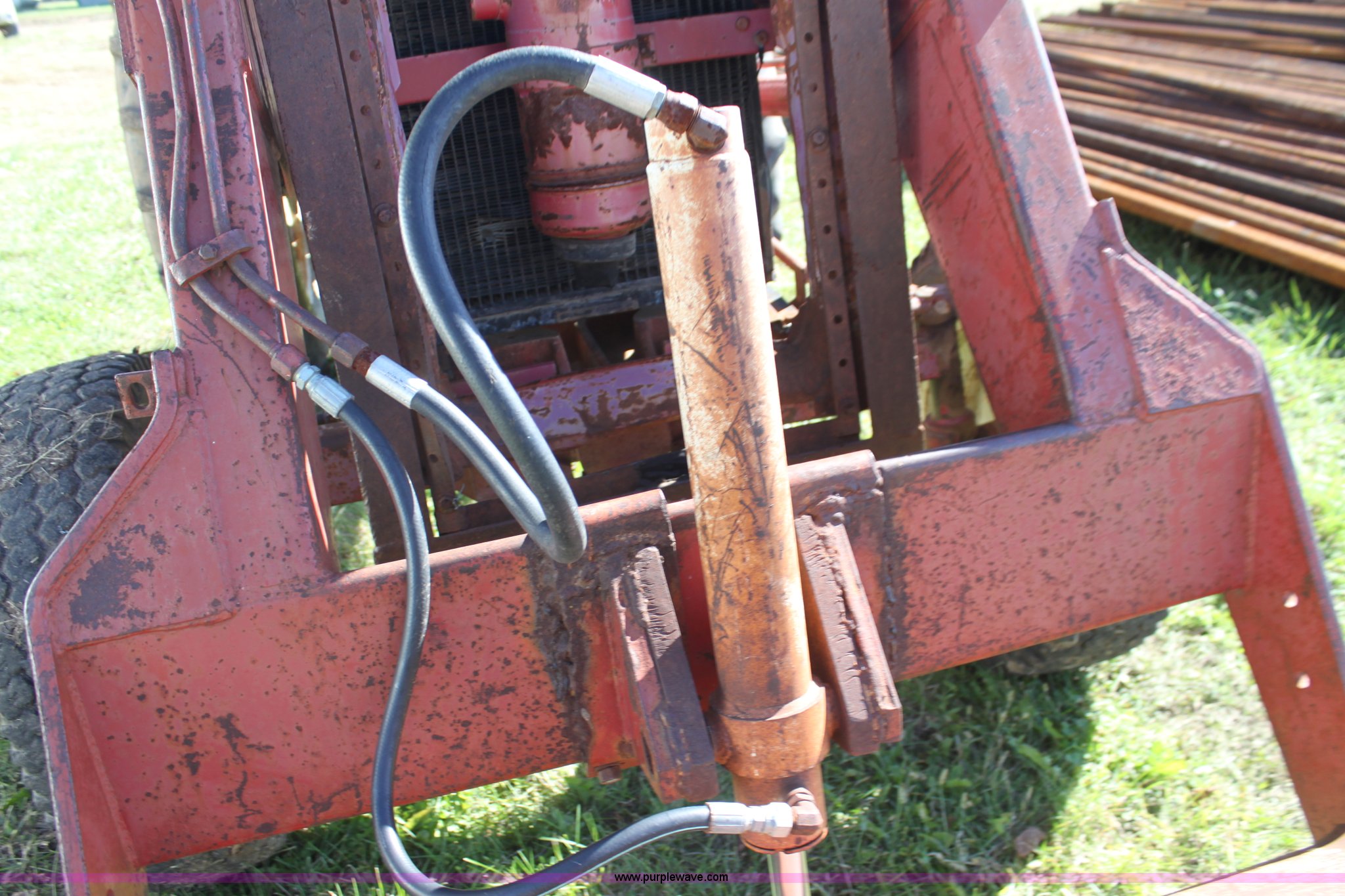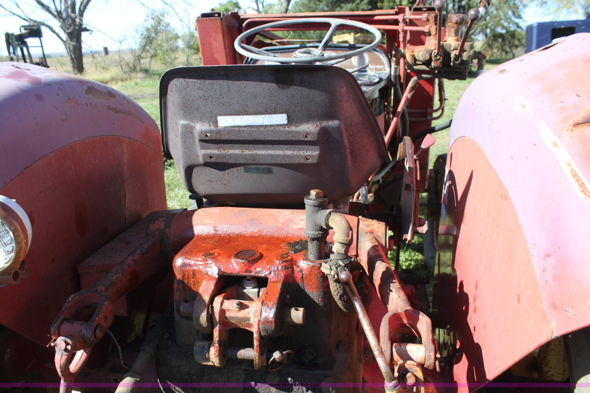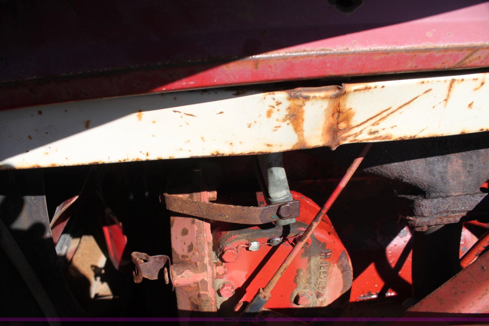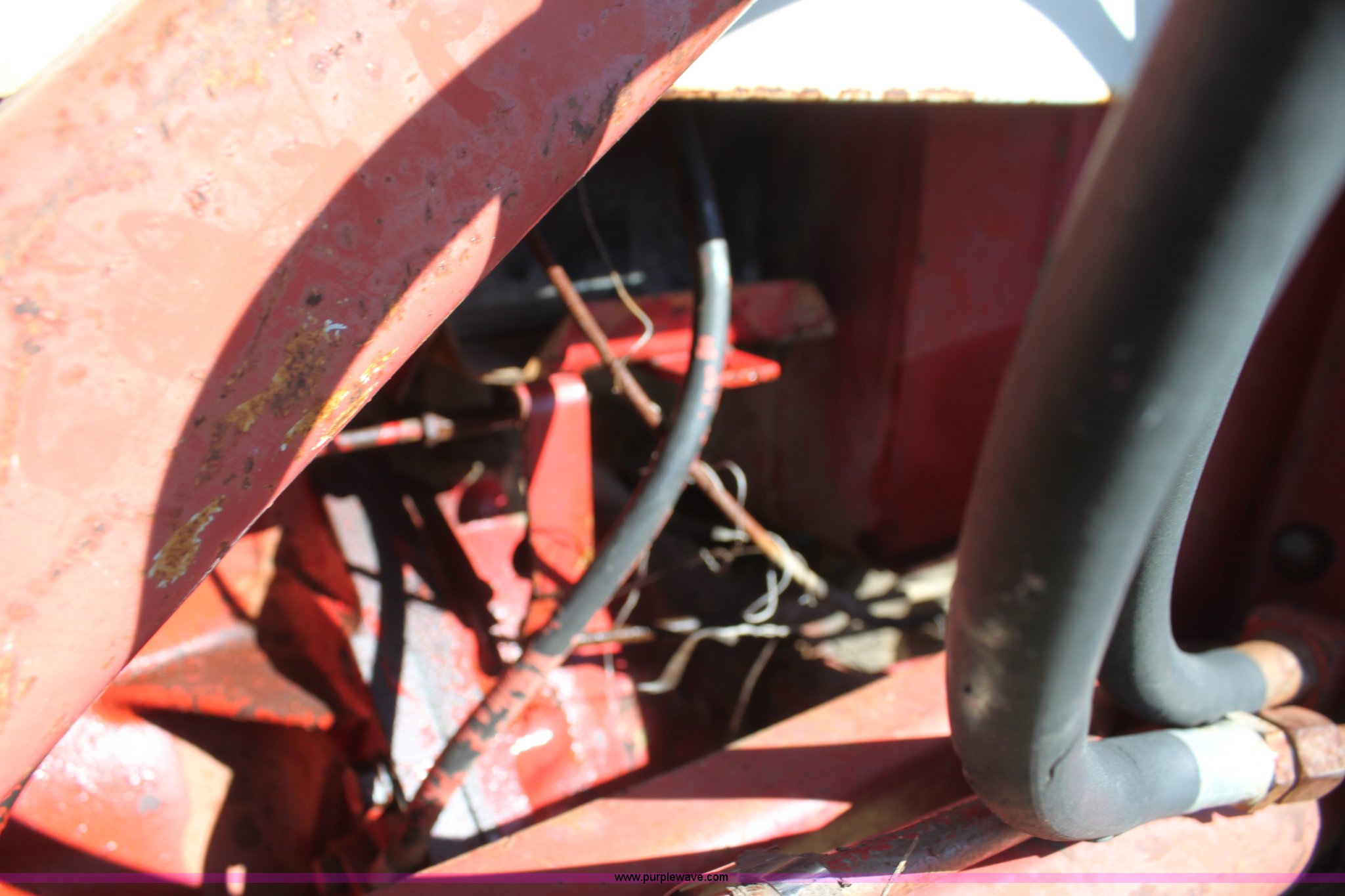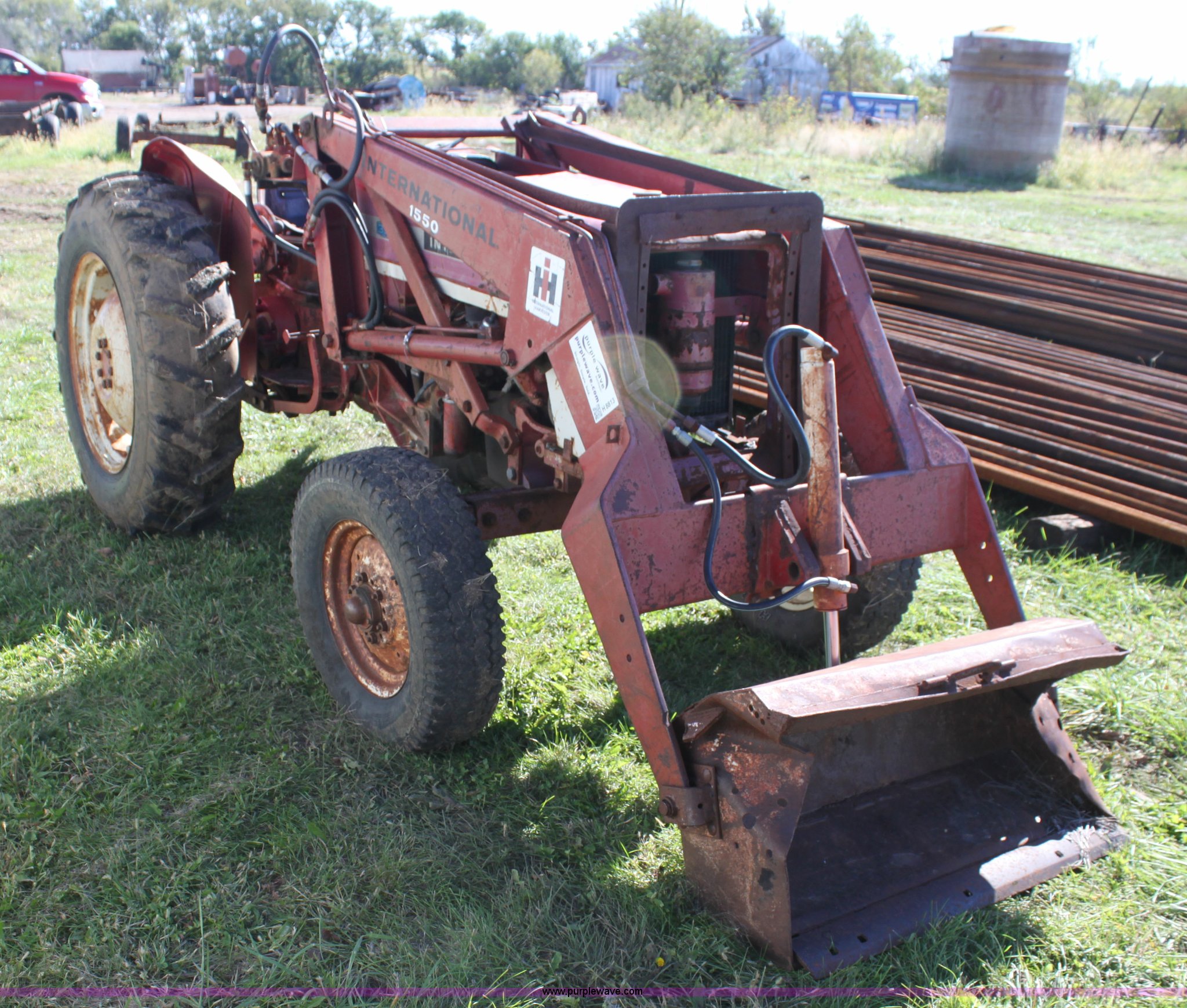 Purple Wave is selling a used Tractor in Kansas. This item is a International 354 tractor with the following: 2,619 hours on meter, International four cylinder gas engine, Manual transmission, 8F-2R gears, International 1550 loader, 40"W bucket, Two stick loader controls, 540 PTO, Three point, Draw bar, Rear hydraulic remote, 245/75R16 front tires, 13.6-28 rear tires, Interior/exterior cosmetic damage