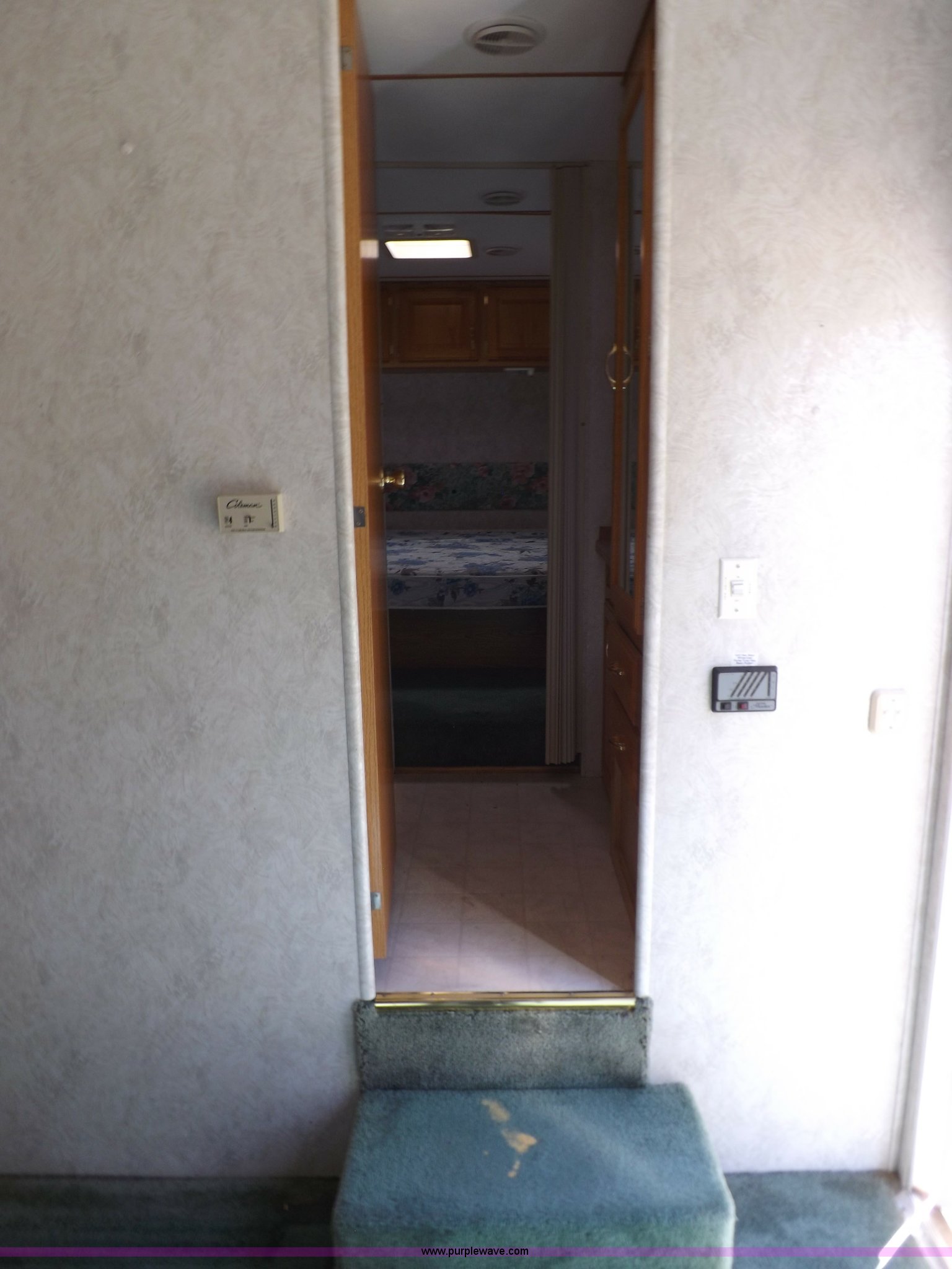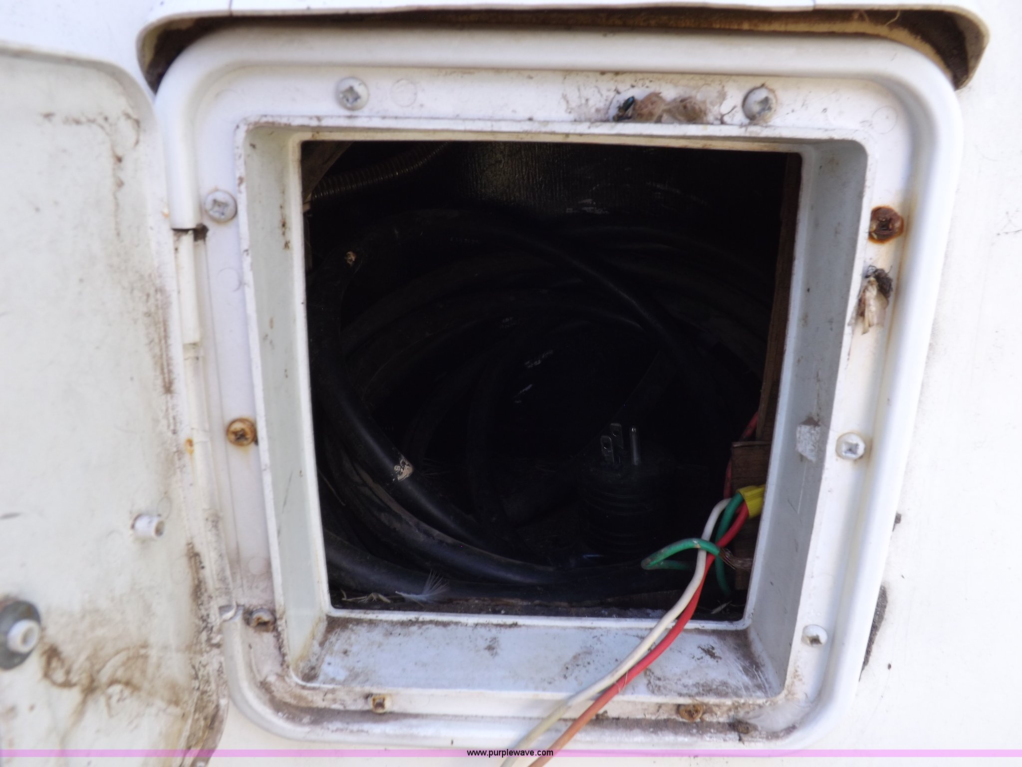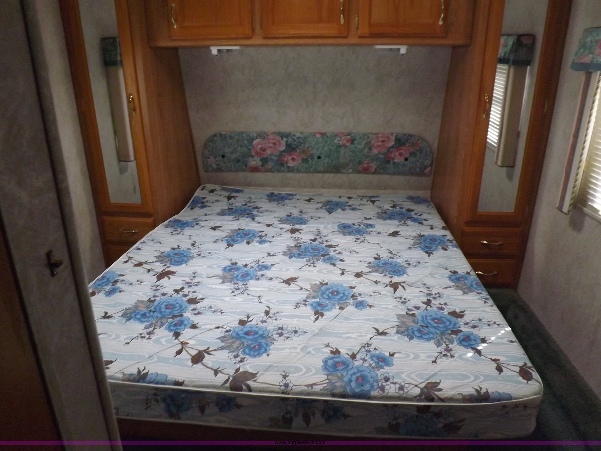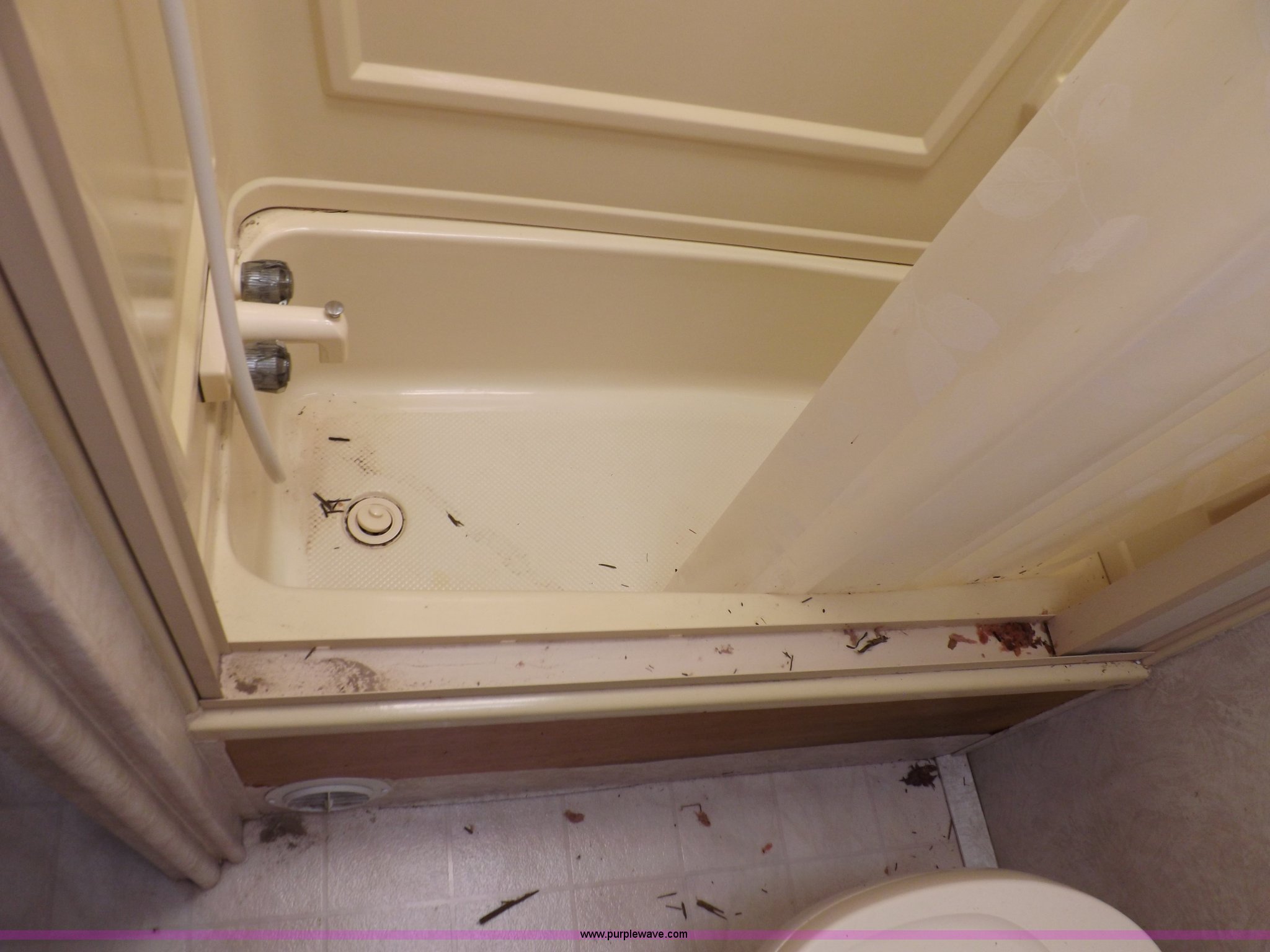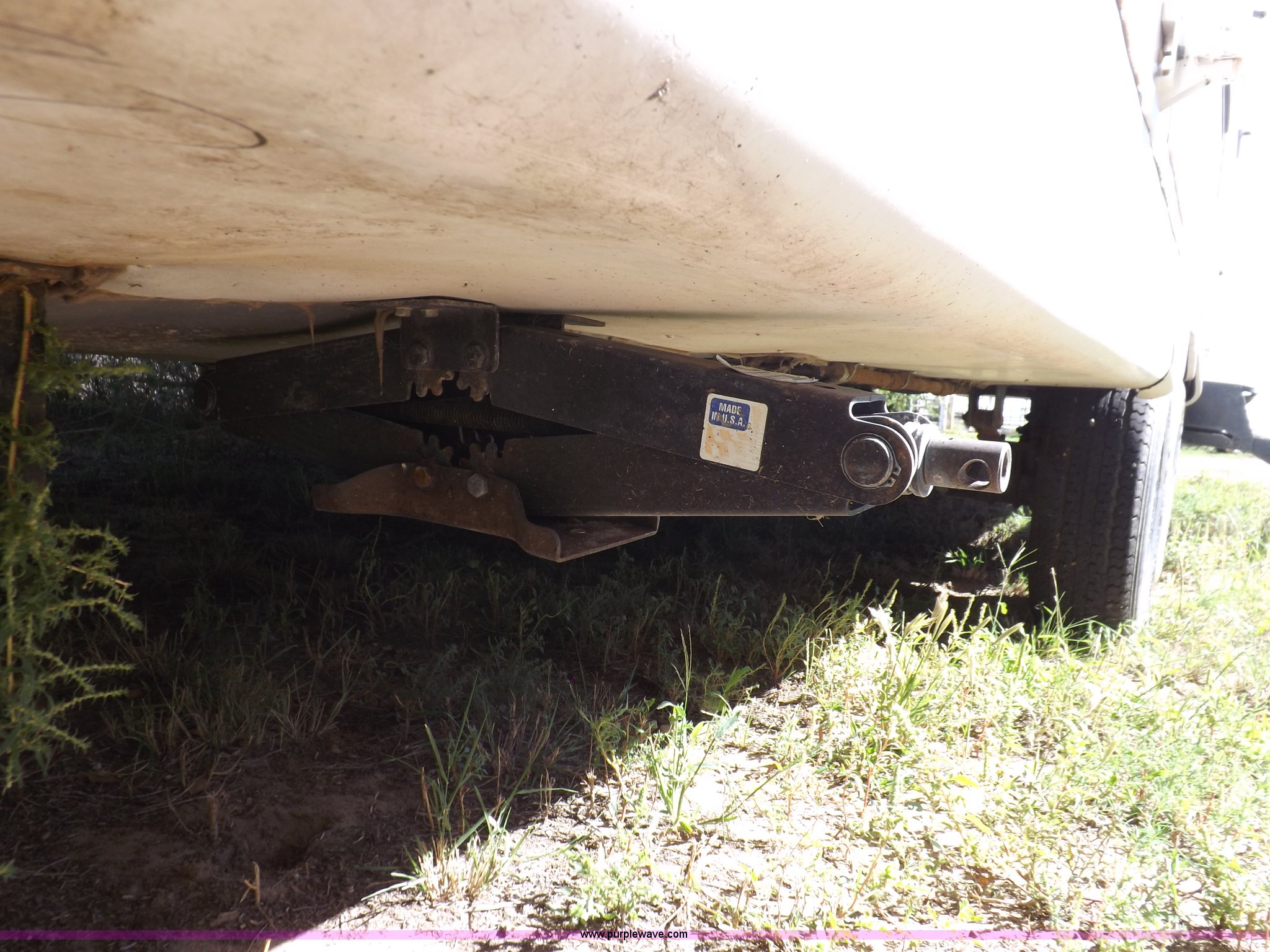 Purple Wave is selling a used RV in Kansas. This item is a 1996 Seahawk Gulfstream travel trailer with the following: 28'L x 8'W x 10.5'H, AC and heat, 12' battery operated slide-out, Refrigerator/freezer, Oven/cook top, Vented, Microwave, Two bowl kitchen sink, Double bed bedroom, Lavatory, Shower, Commode, AC/DC lighting, Audiovox AM/FM/cassette, 15' awning, (2) rooftop vents, Rooftop access ladder, Front and rear stabilizer jacks, Electric front, Wineguard crank up television antenna, (2) 30 lb LP bottles, 30 amp 110V service, Break-away brake system, Recently replaced 225/75R15 tires, 5,900 lbs empty weight, Roof leaks in kitchen and bathroom ceilings, Cabinet and floor damage, Carpet stained