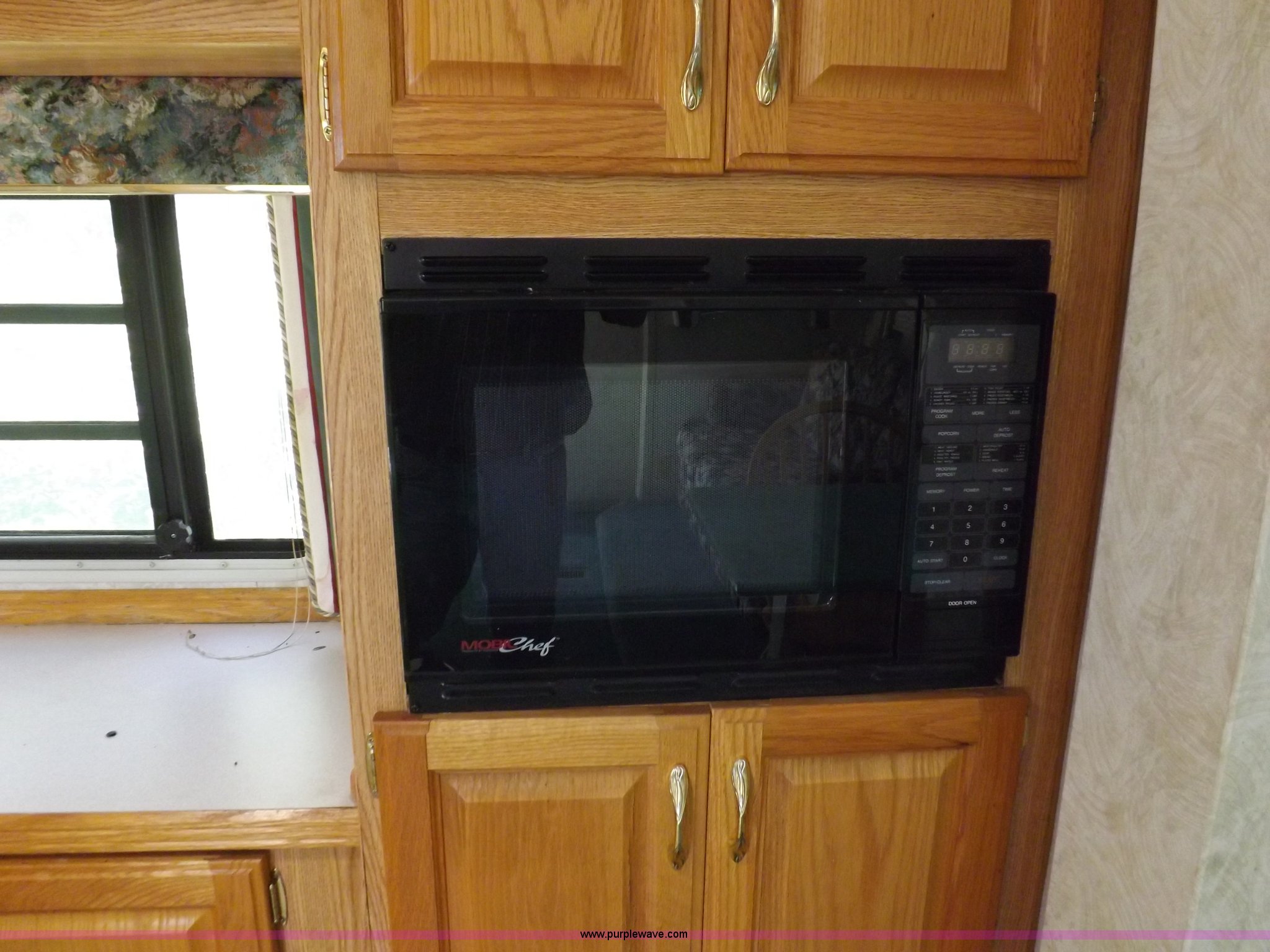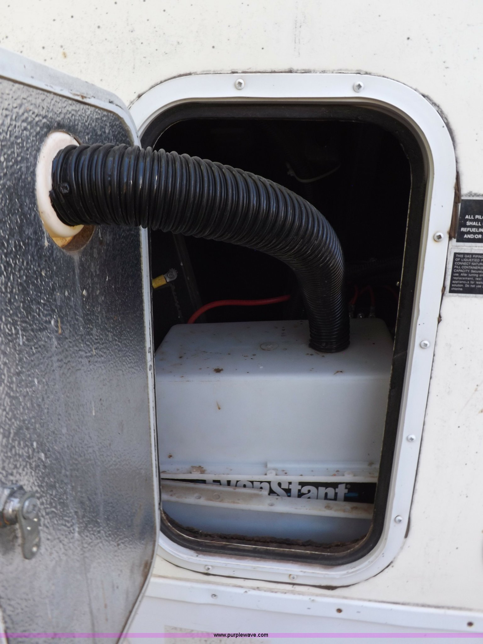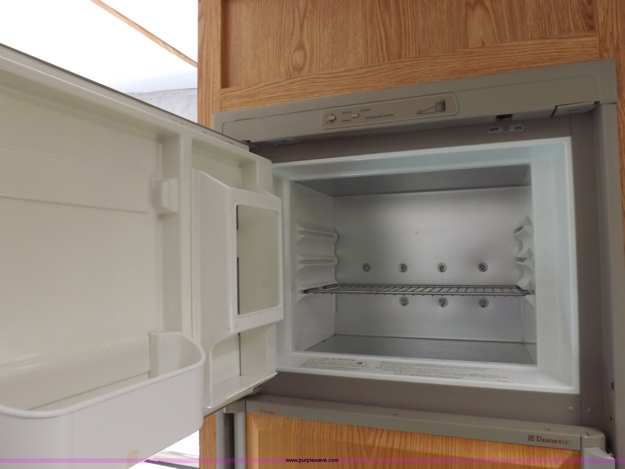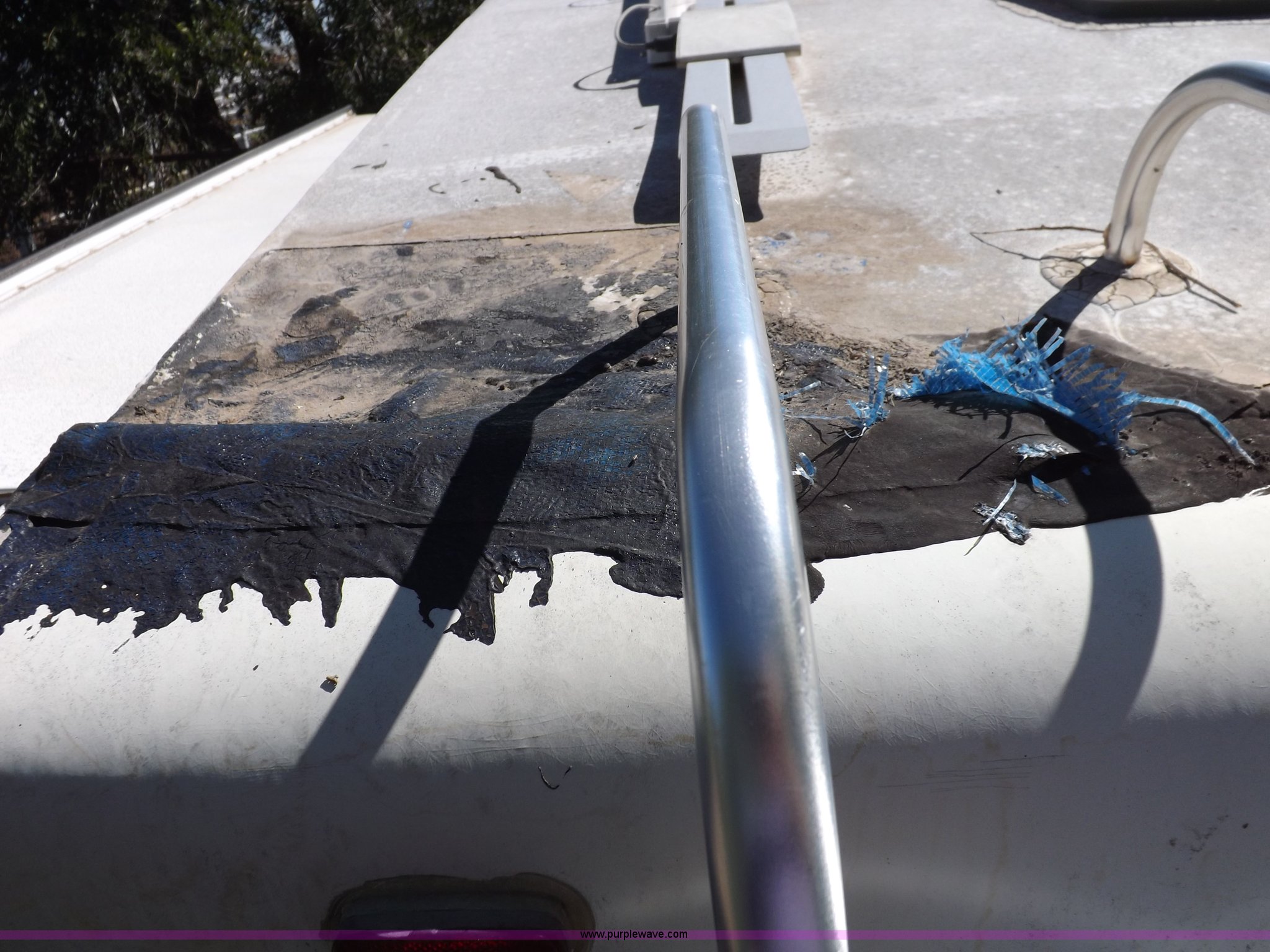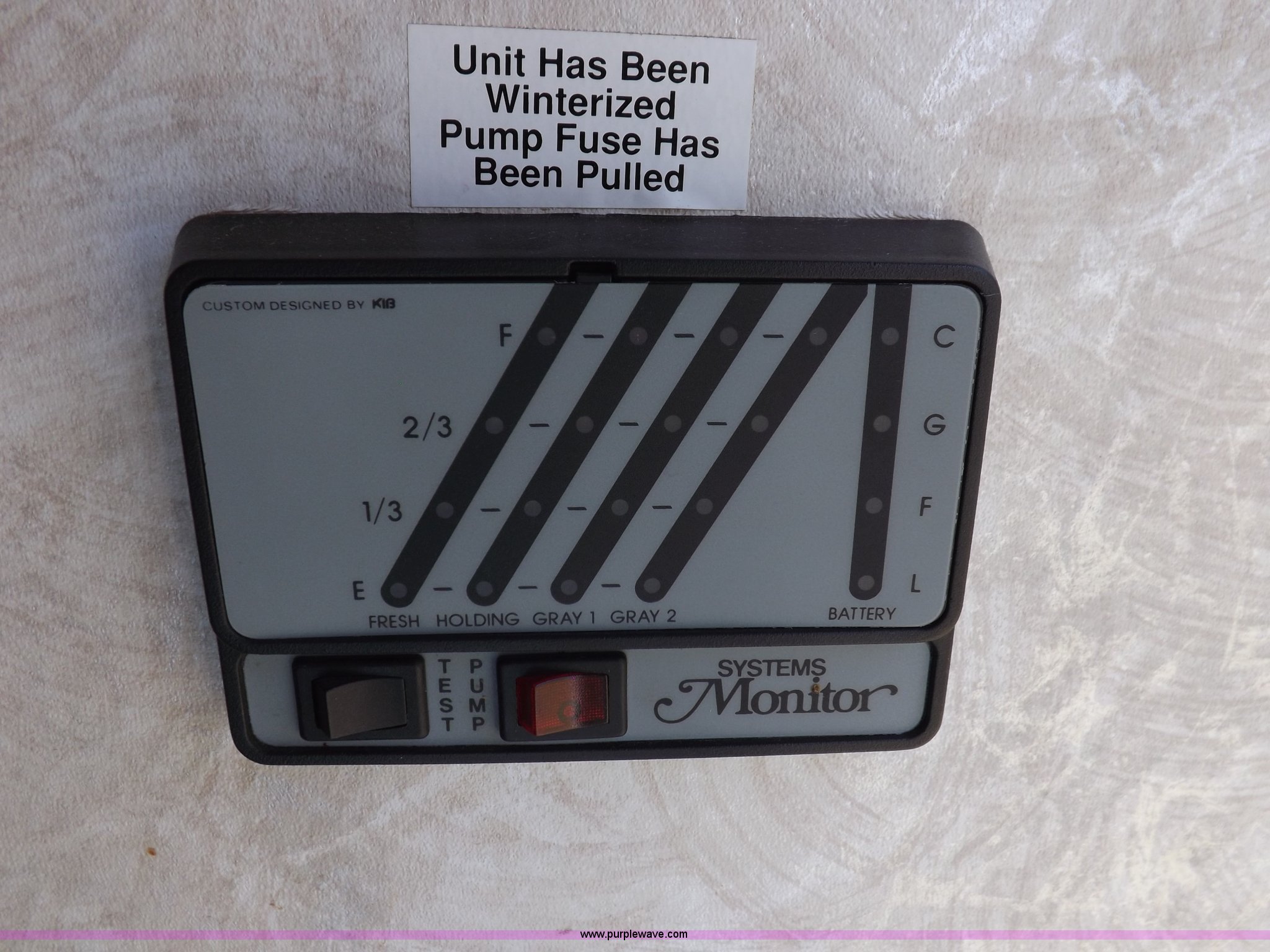 Purple Wave is selling a used RV in Kansas. This item is a 1996 Seahawk Gulfstream travel trailer with the following: 28'L x 8'W x 10.5'H, AC and heat, 12' battery operated slide-out, Refrigerator/freezer, Oven/cook top, Vented, Microwave, Two bowl kitchen sink, Double bed bedroom, Lavatory, Shower, Commode, AC/DC lighting, Audiovox AM/FM/cassette, 15' awning, (2) rooftop vents, Rooftop access ladder, Front and rear stabilizer jacks, Electric front, Wineguard crank up television antenna, (2) 30 lb LP bottles, 30 amp 110V service, Break-away brake system, Recently replaced 225/75R15 tires, 5,900 lbs empty weight, Roof leaks in kitchen and bathroom ceilings, Cabinet and floor damage, Carpet stained
